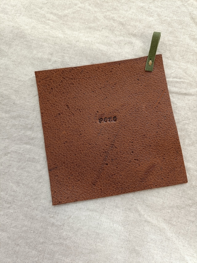 ご覧いただきありがとうございます ------------------------------------------- こちらは、別サイトでも販売中です 在庫はすぐに反映させておりますが、稀にほぼ同時にご購入をされた場合、sold outのご連絡をさせていただく場合があります (先に購入された方優先にさせていただいております) どうぞご了承くださいますようお願いいたします ------------------------------------------- 個性豊かなレザーコースター。 形、大きさが違います 形が全部違って一つとして同じものはありません 一点物です 濡れても自然乾燥でOK。 シミ跡もデザイン!…にするつもりで、どうかガンガン使ってくださいね 色は、ナチュラル色から飴色へ変化してきます お客様が来られたときはもちろん 毎日の珈琲timeにもいかがですか? ■素材 国産ピッグスキン(100%植物タンニン鞣し)。 自然界から抽出したミモザ・アカシアなどから抽出される天然成分の植物タンニンを使用しています また、染色はメタル・フリー(クロムなど金属系の成分を含まない)染料のみを使用しています 柔らかくやさしい手触りで、とても軽いです また、通気性が良くとても丈夫なのが特徴です 環境負荷を抑えるために、人と自然にやさしい「ラセッテー」なめし製法でつくられた『やさしい革』です こちらは、豚革が持つ肌合いの(シボ・シワ)を、ミーリング(機械揉み)ドラムで際立たせた上品な透明艶のシュリンクレザーとなります 水性クリアによる透明膜により色移行を最小限に留めます ■サイズ 横約16.5㌢(中央) 縦約14.5㌢(一番長い箇所) ※少々の誤差はご了承ください ■製法 総手縫い ■ご注意 こちらは、天然革ゆえの元々の傷や汚れがある場合があります ぜひ"味"として捉えていただき、ご理解の上ご購入ください ご不明な点がありましたら、お気軽にご質問ください