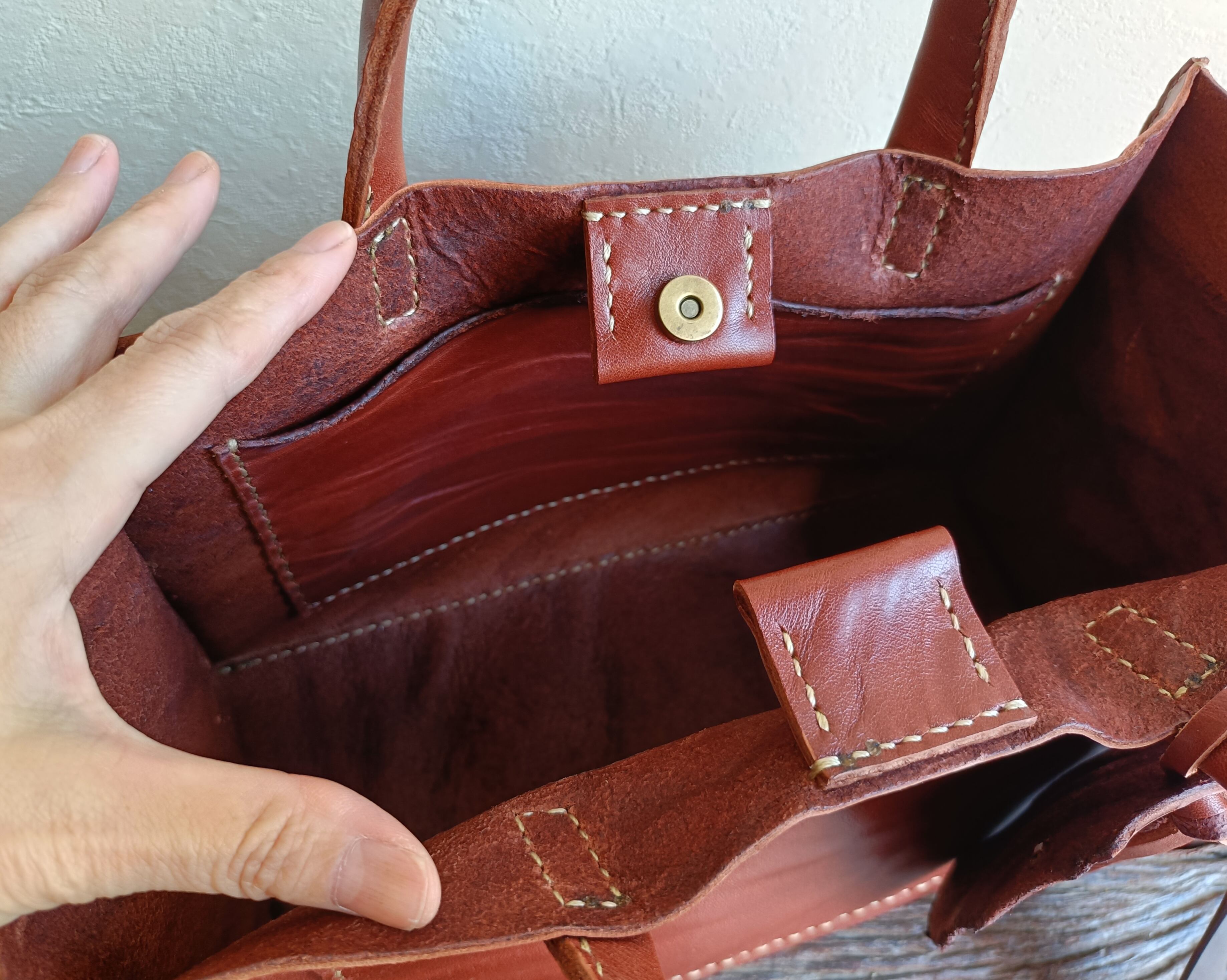 ◎開口口のマグネットボタンは、お荷物がいっぱいでも留めやすく外れにくい仕様です