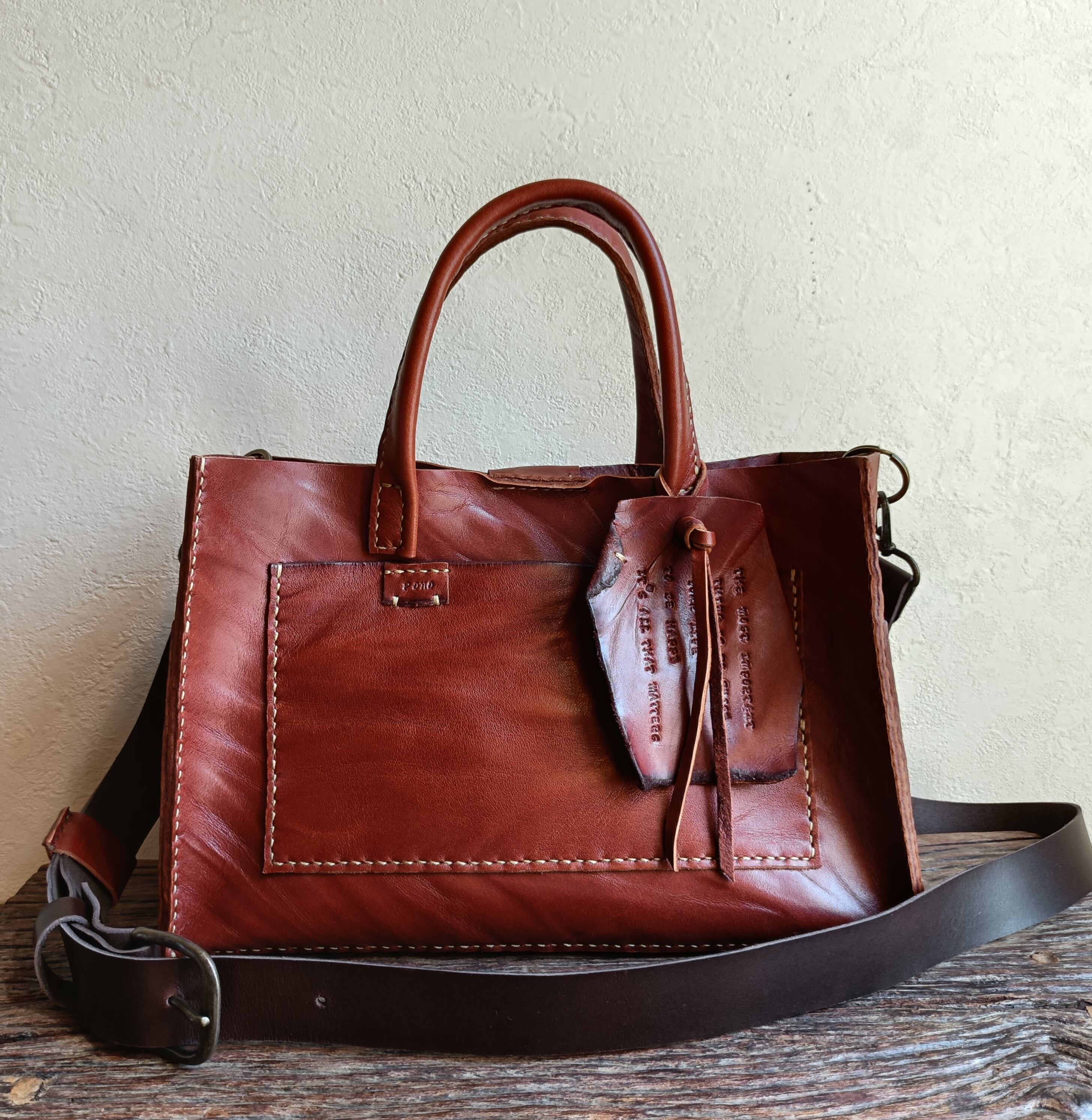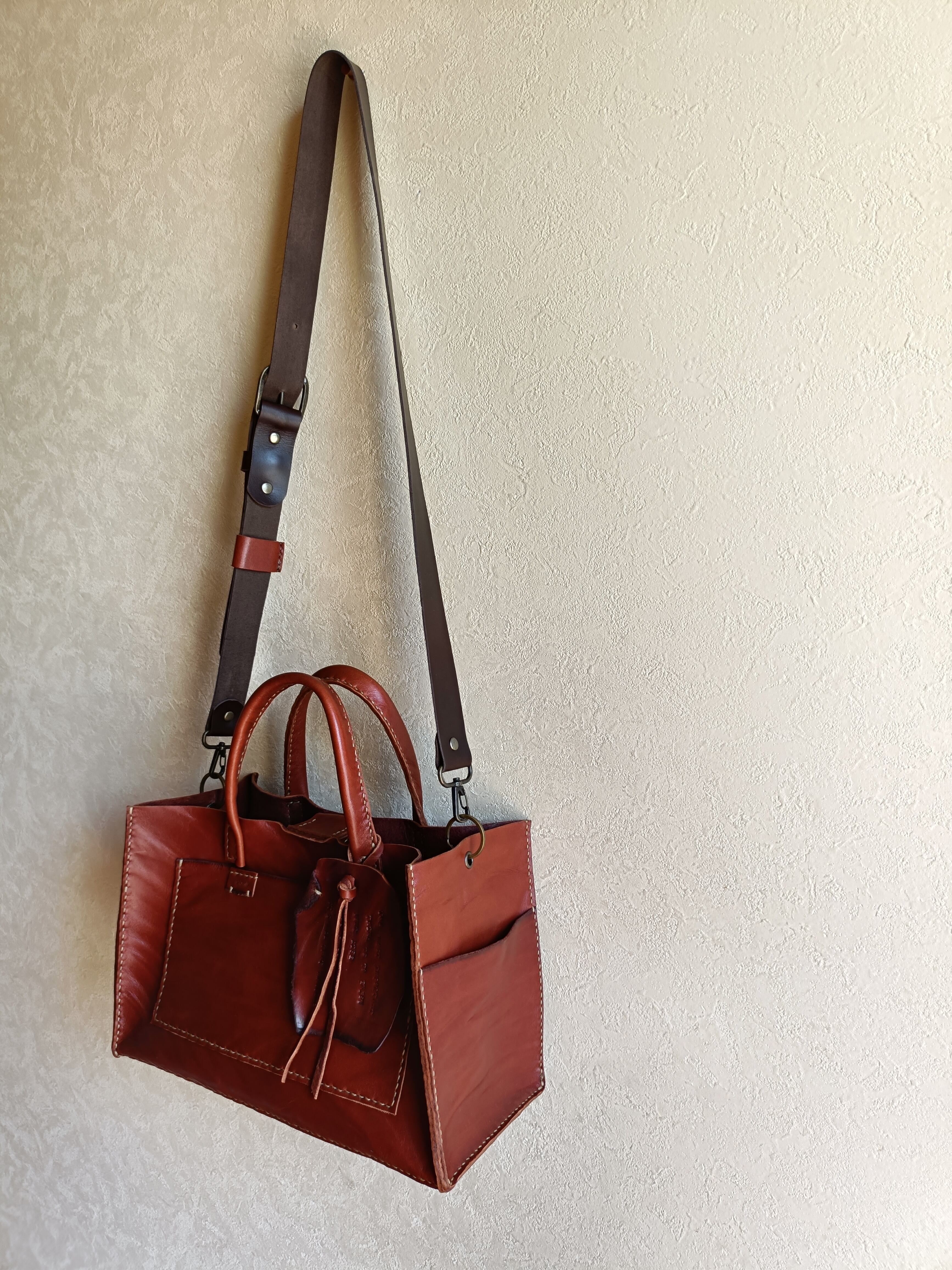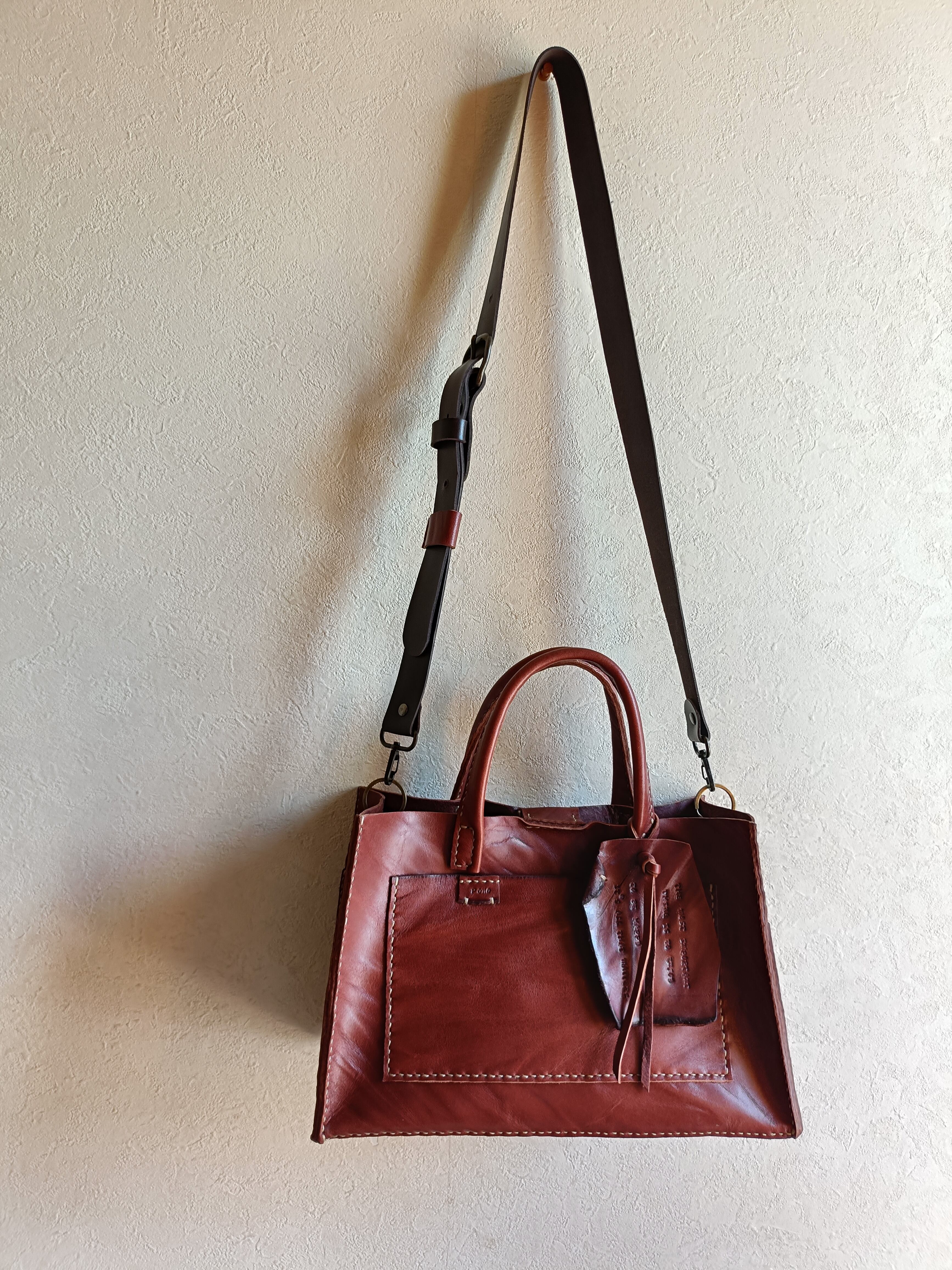 square tote shoulder 濃いブラウン オイルワックスレザー