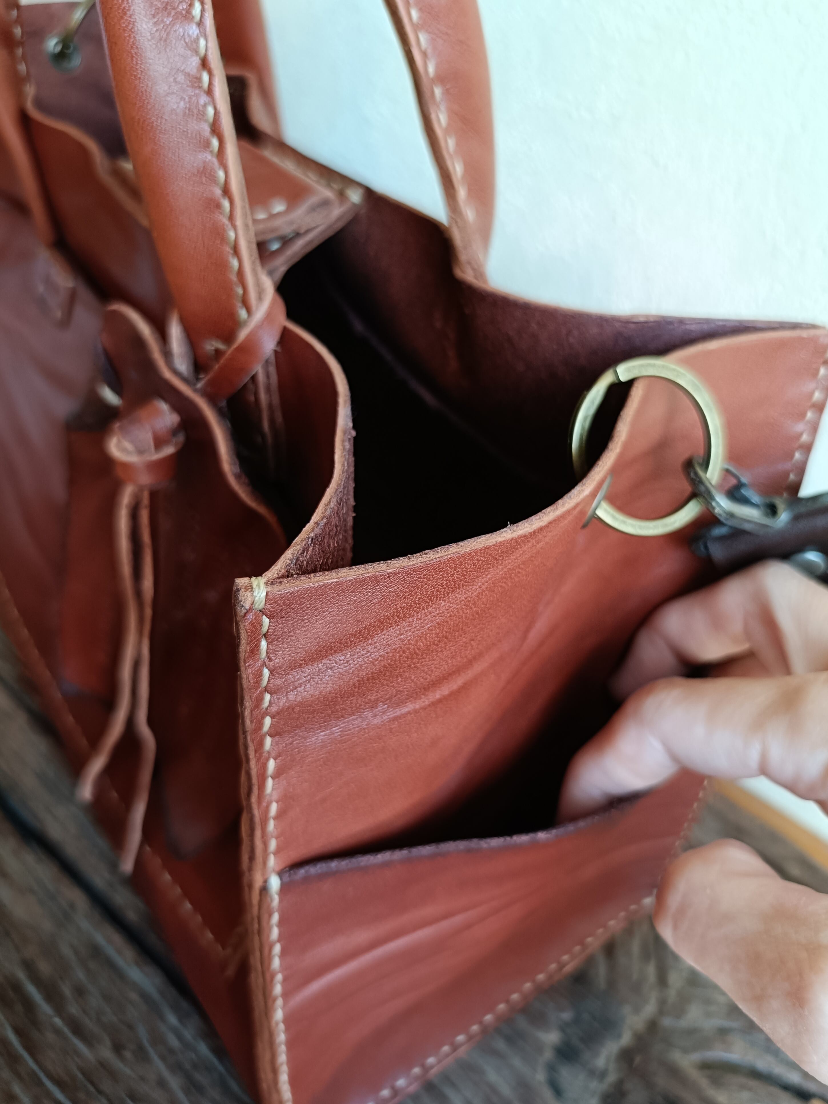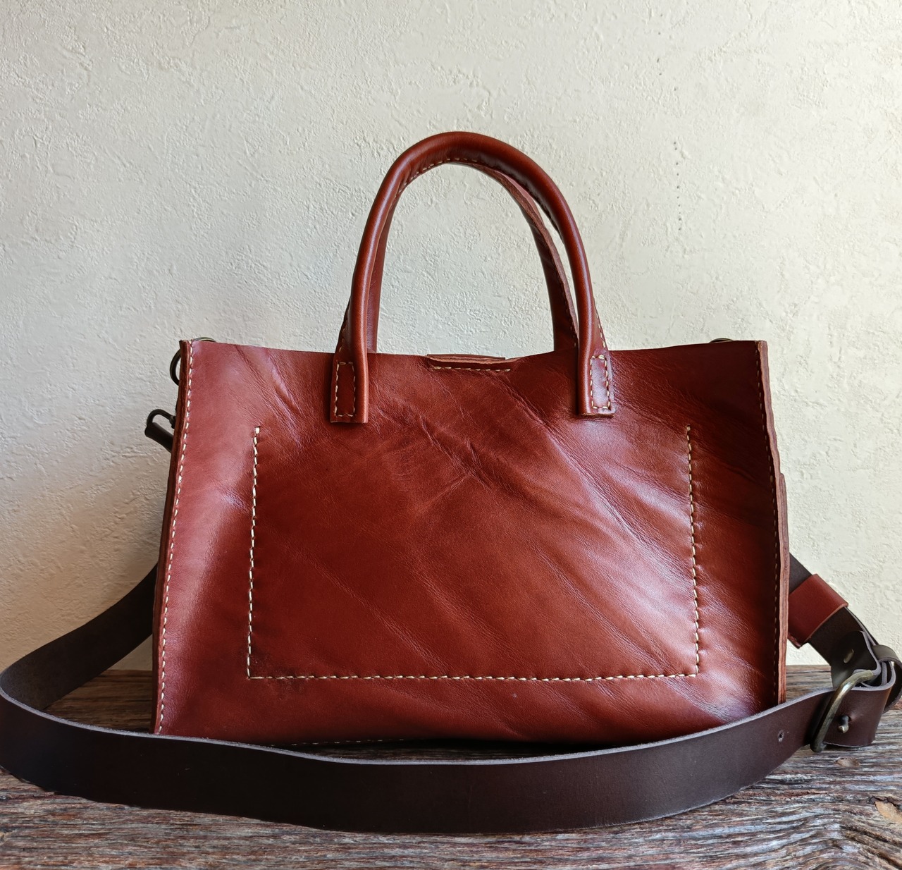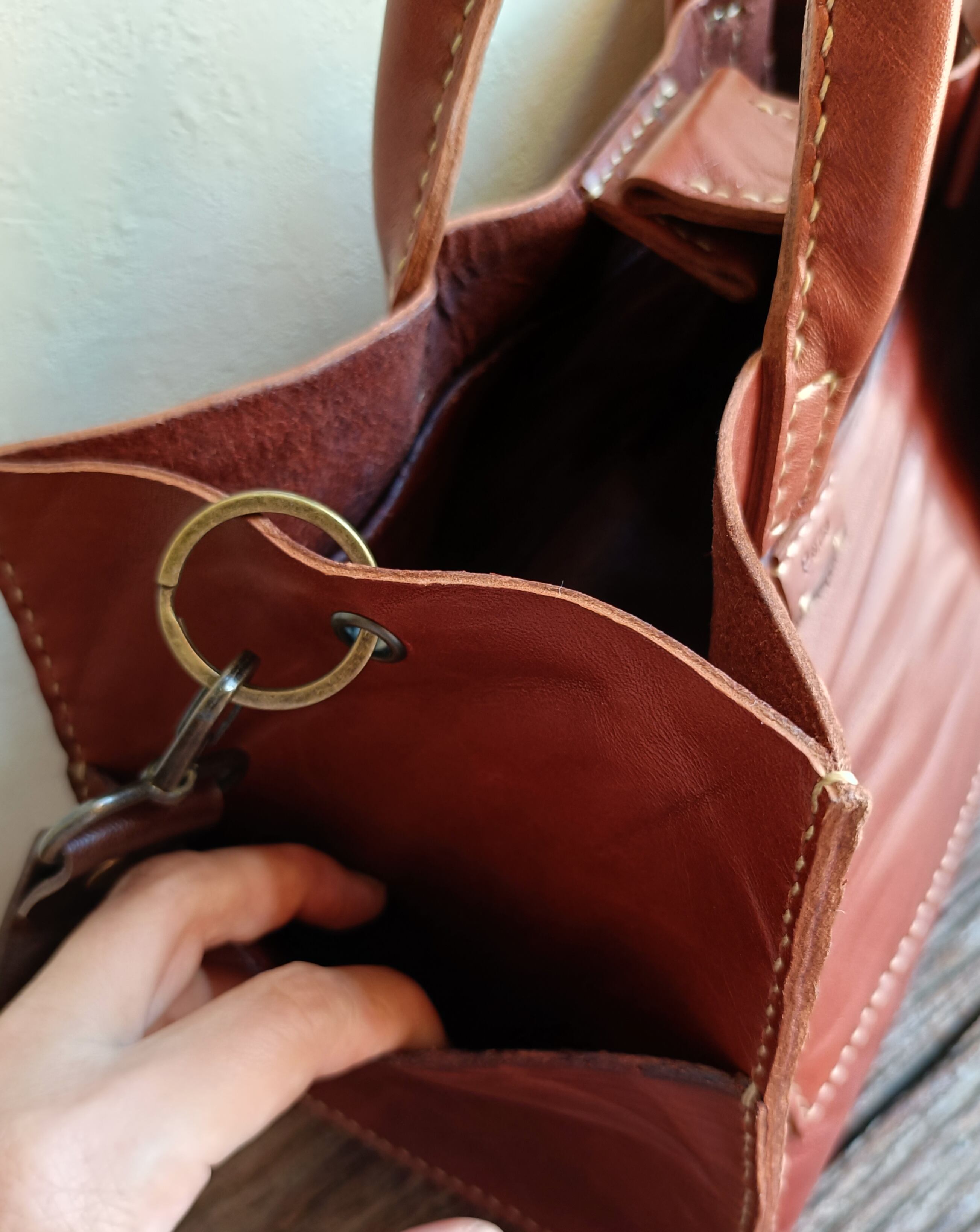 square tote shoulder 濃いブラウン オイルワックスレザー