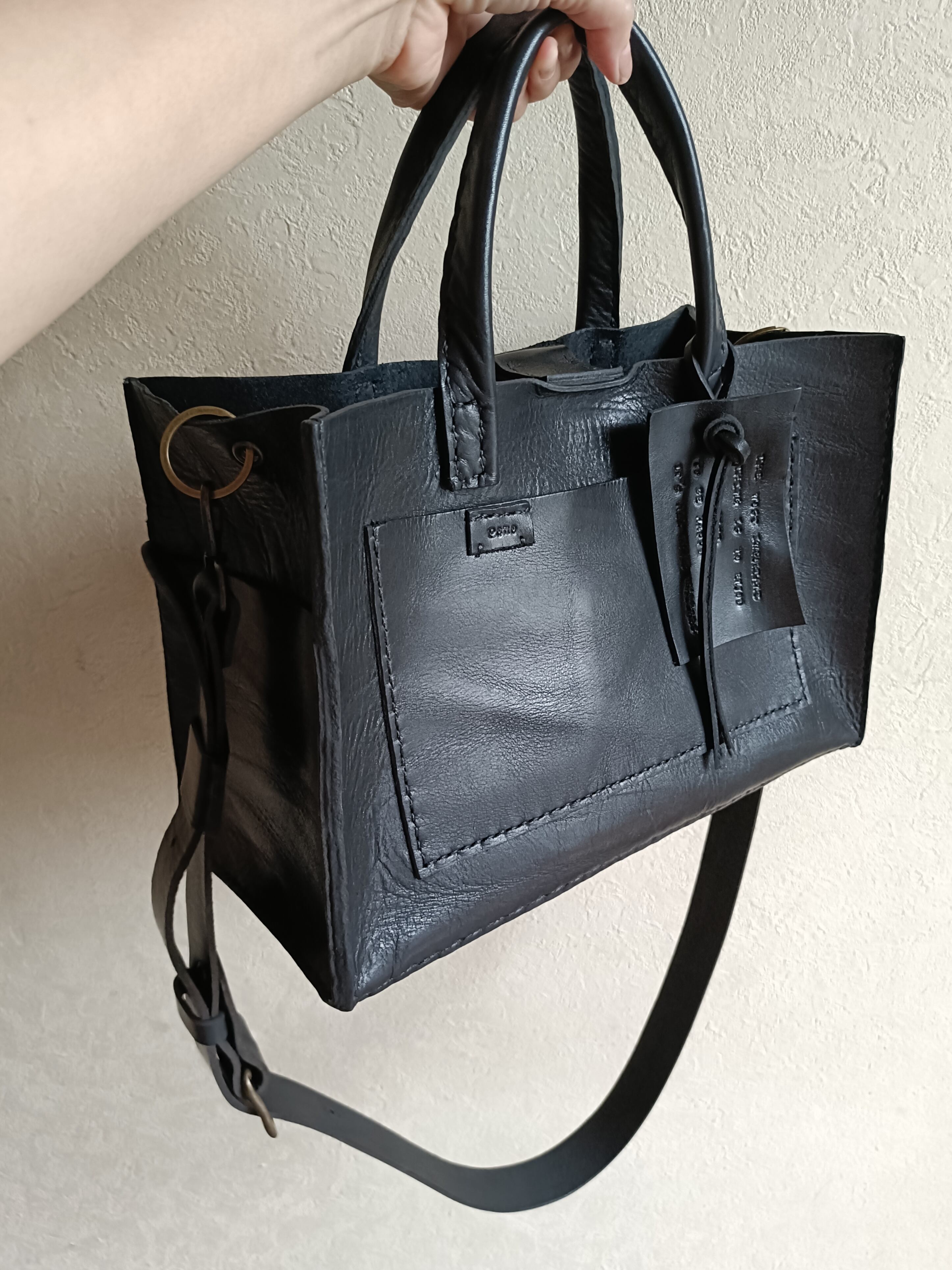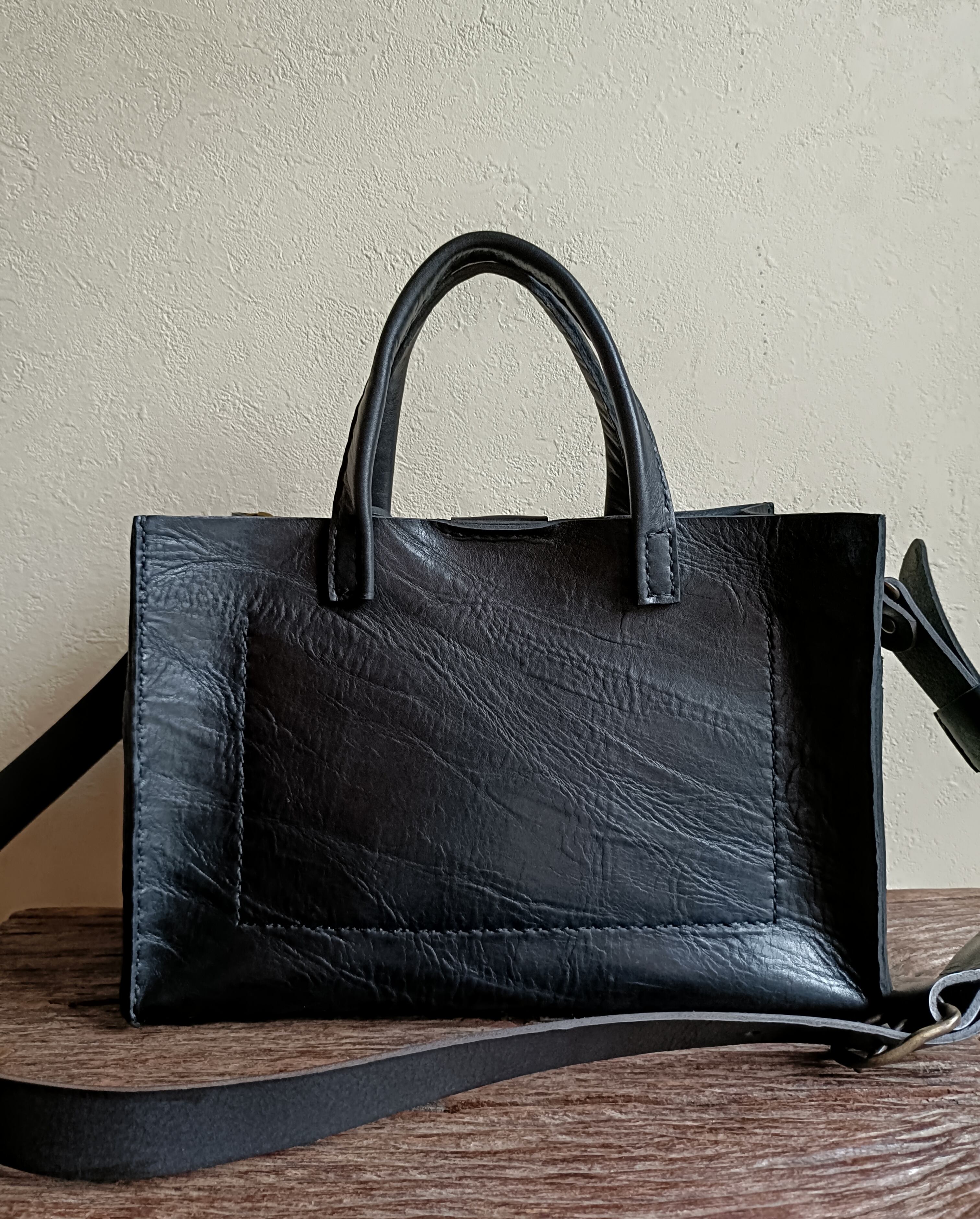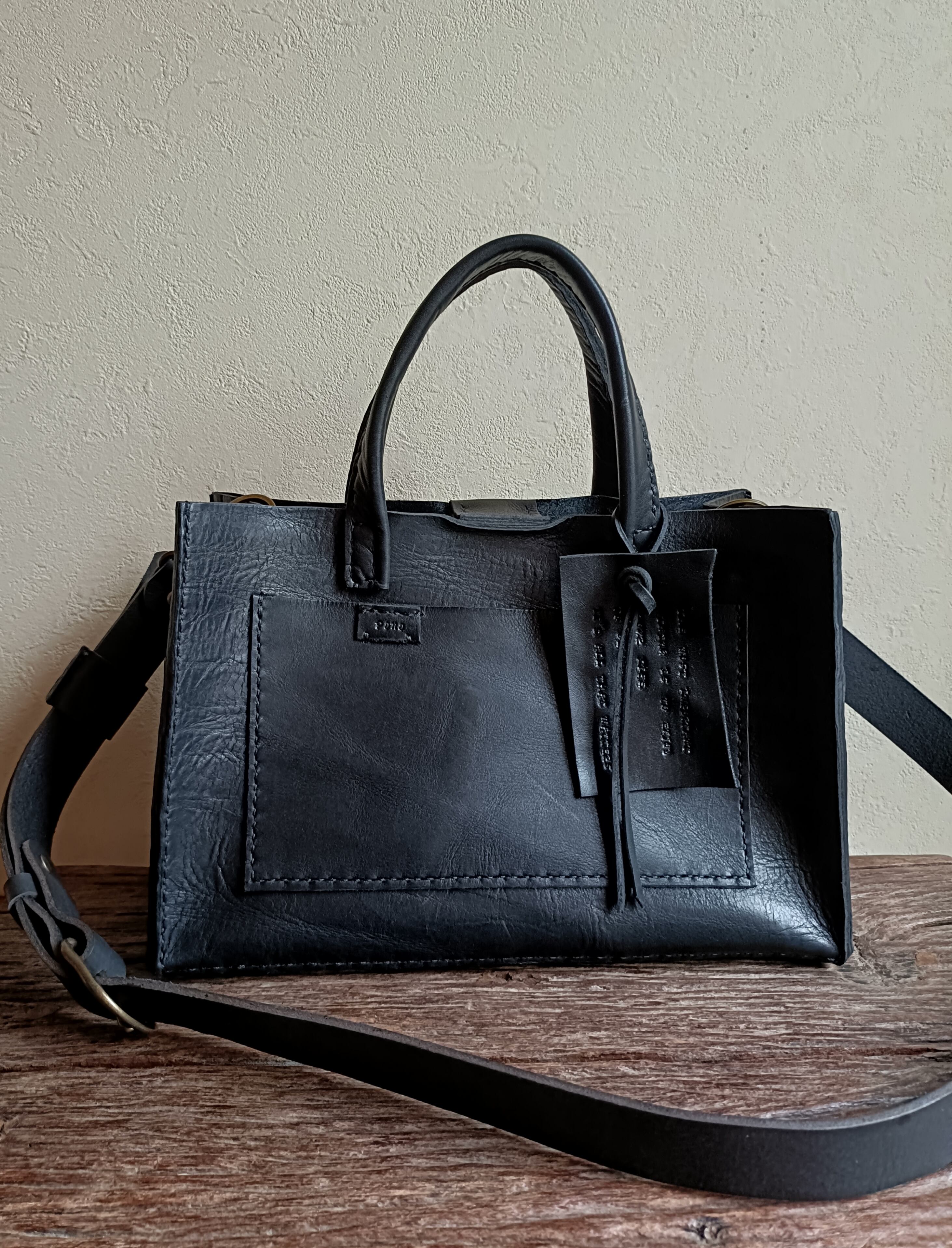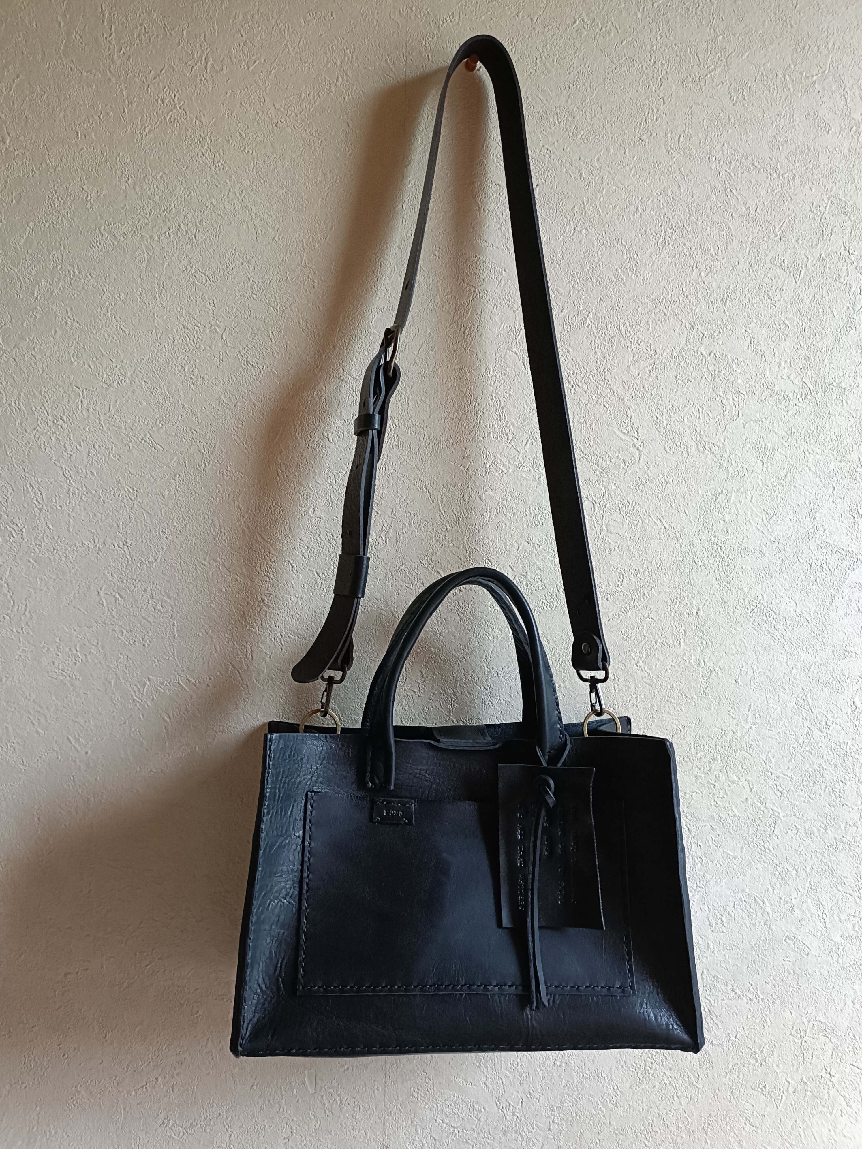 square tote shoulder 黒 オイルワックスレザー
