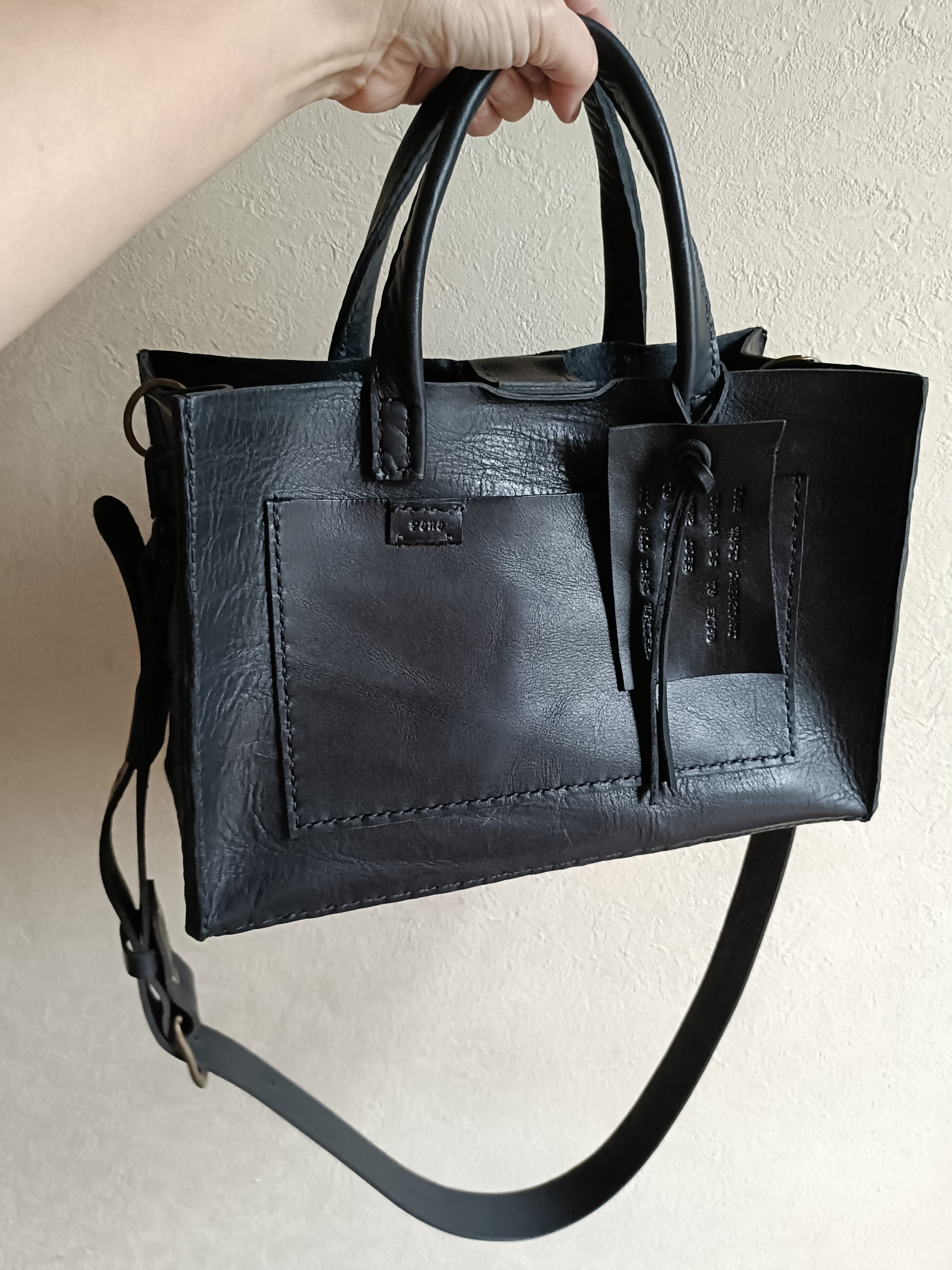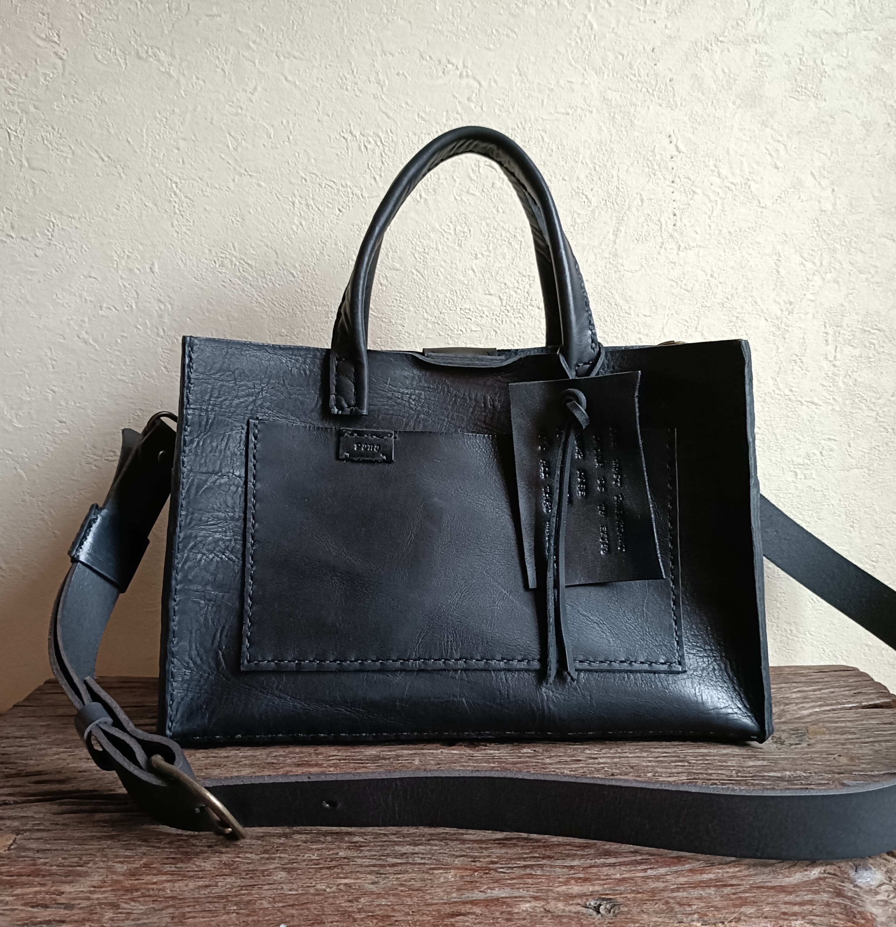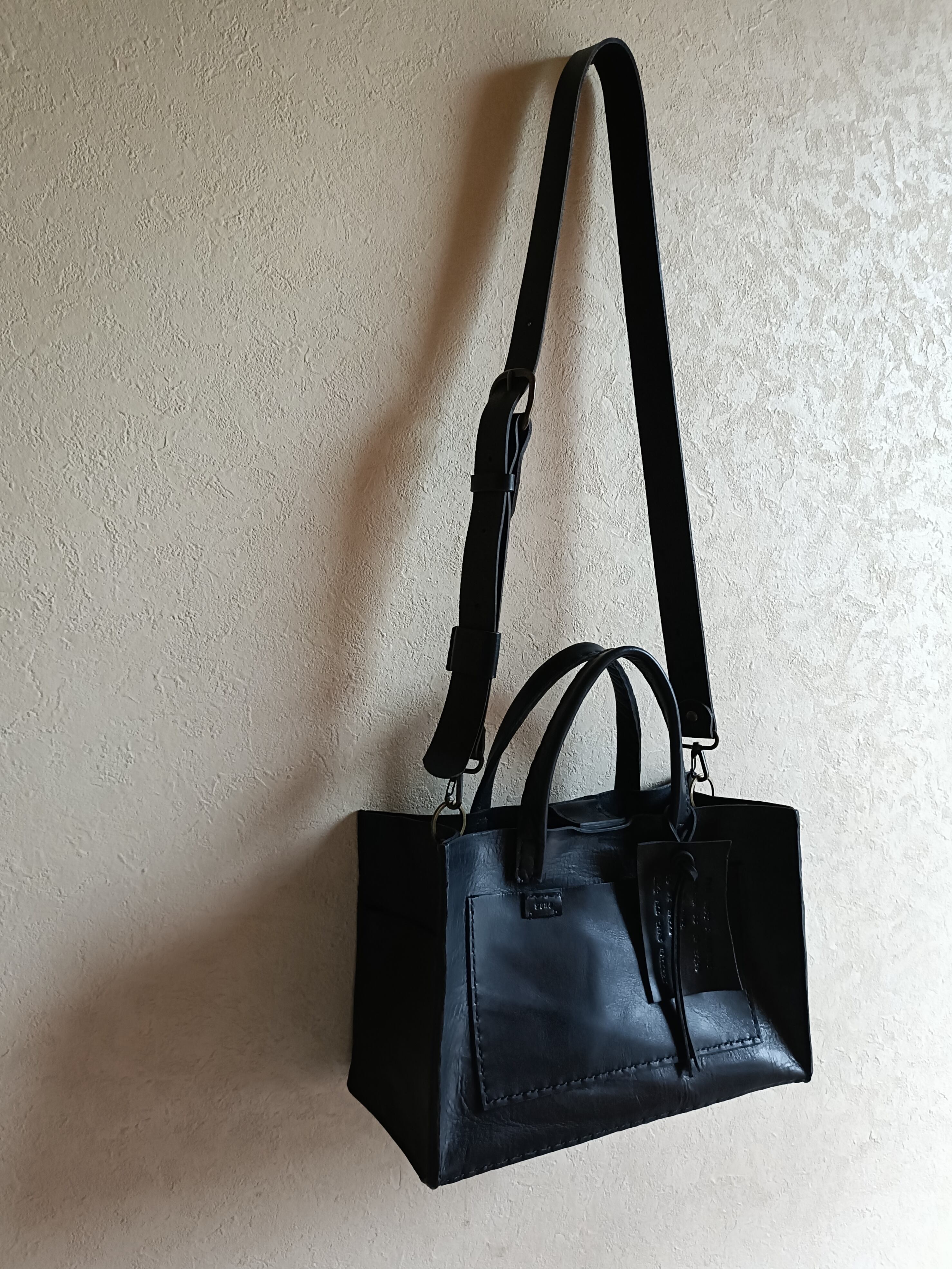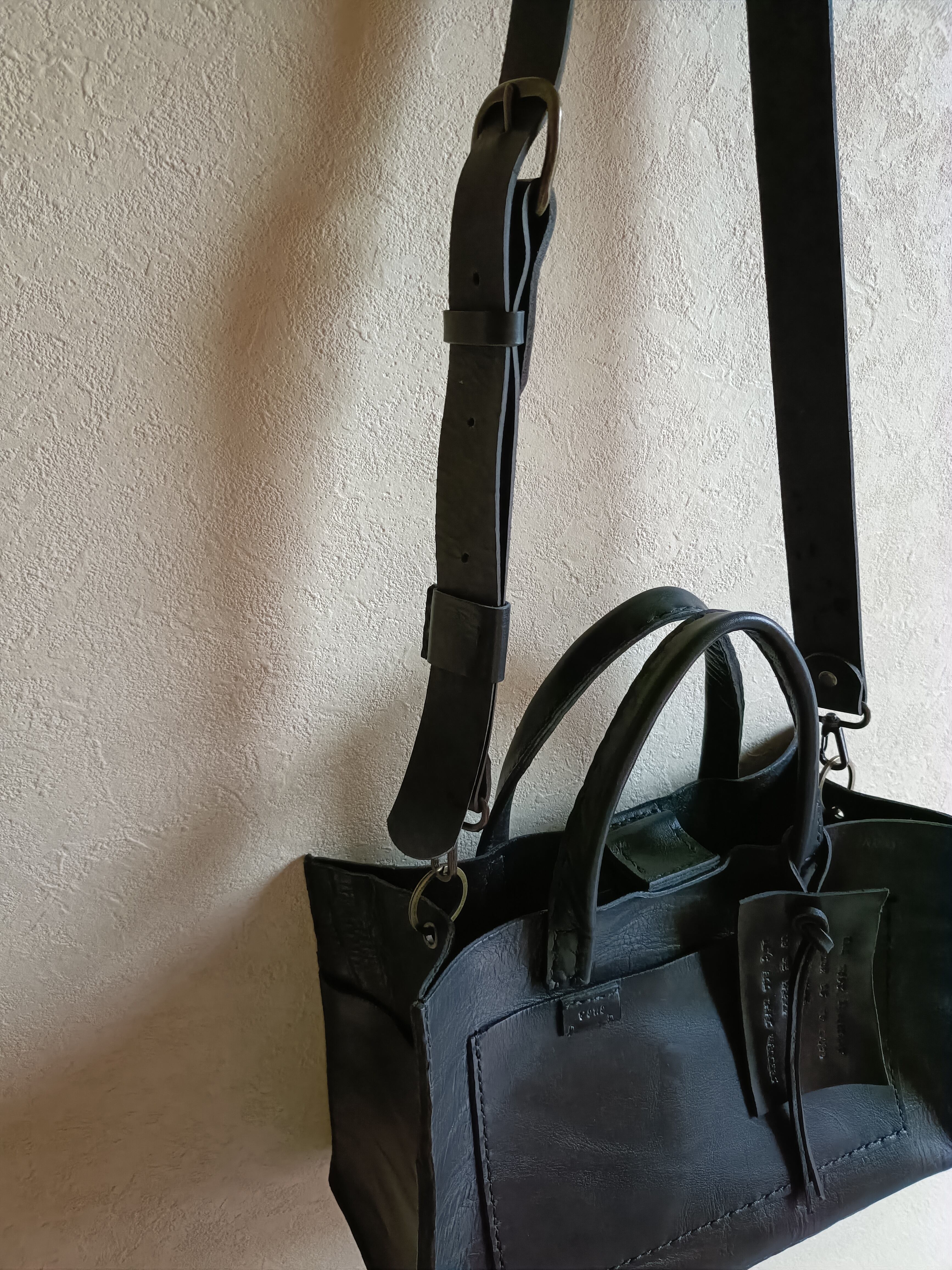 square tote shoulder 黒 オイルワックスレザー