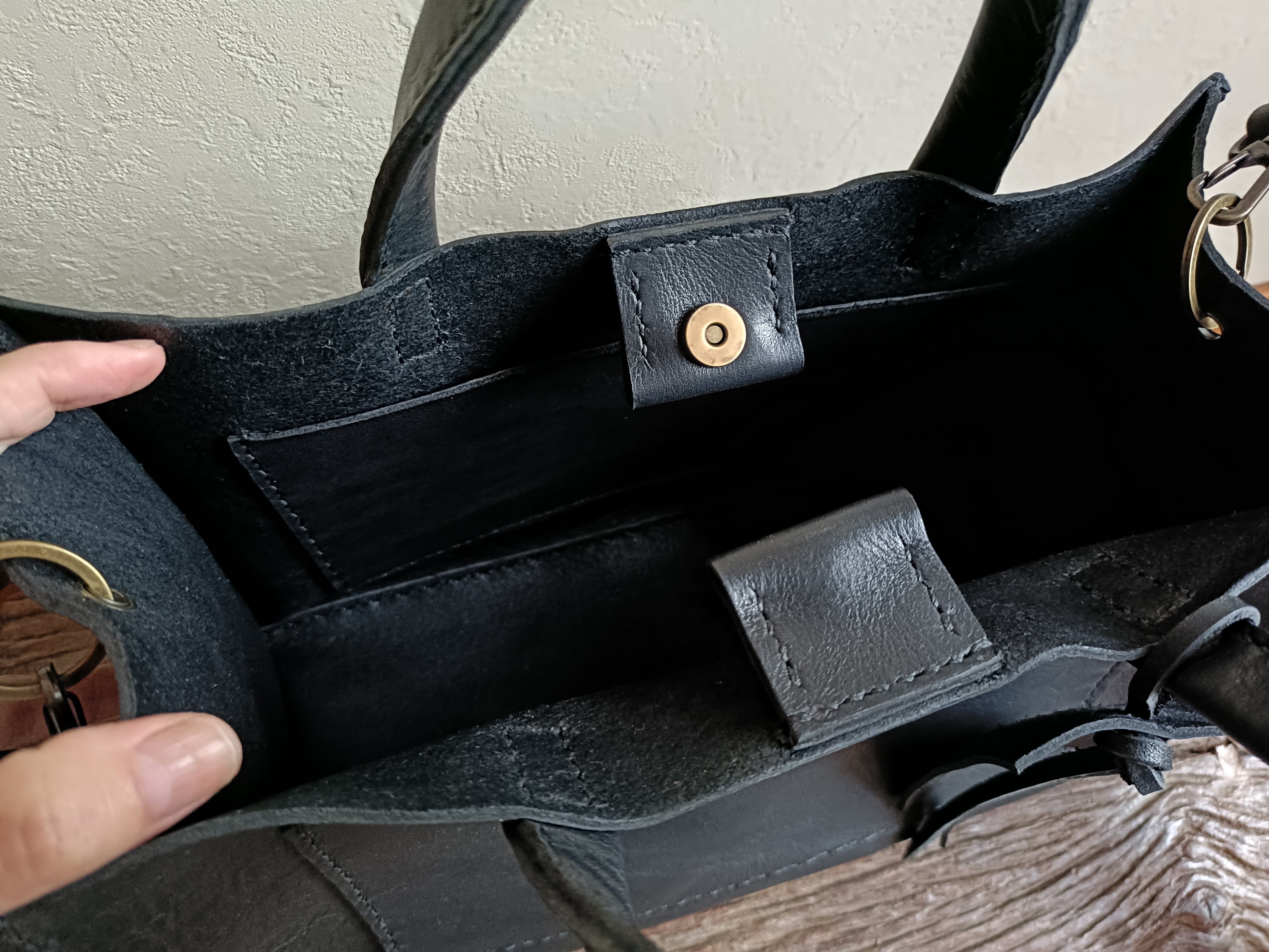 ◎開口口のマグネットボタンは、お荷物がいっぱいでも留めやすく外れにくい仕様です