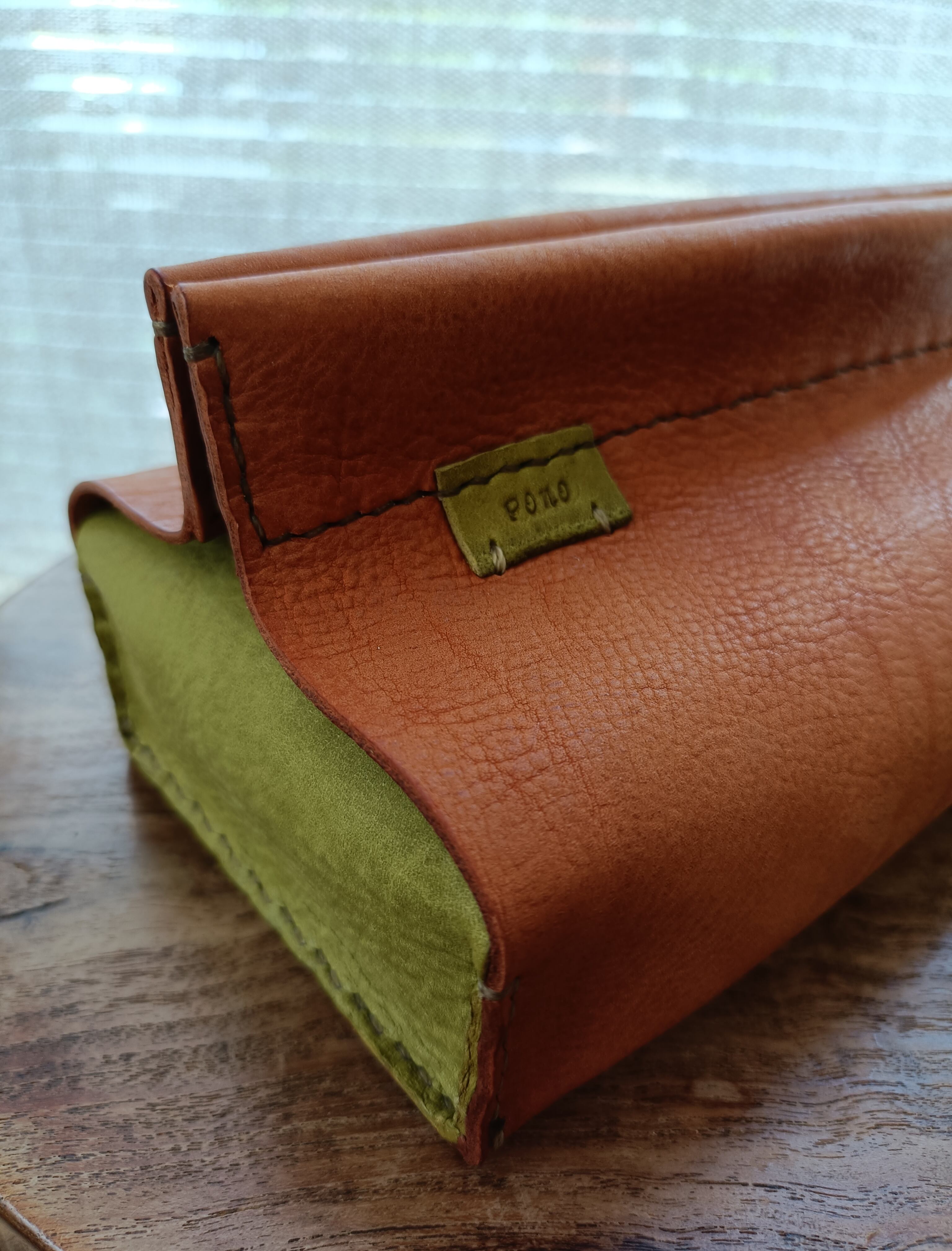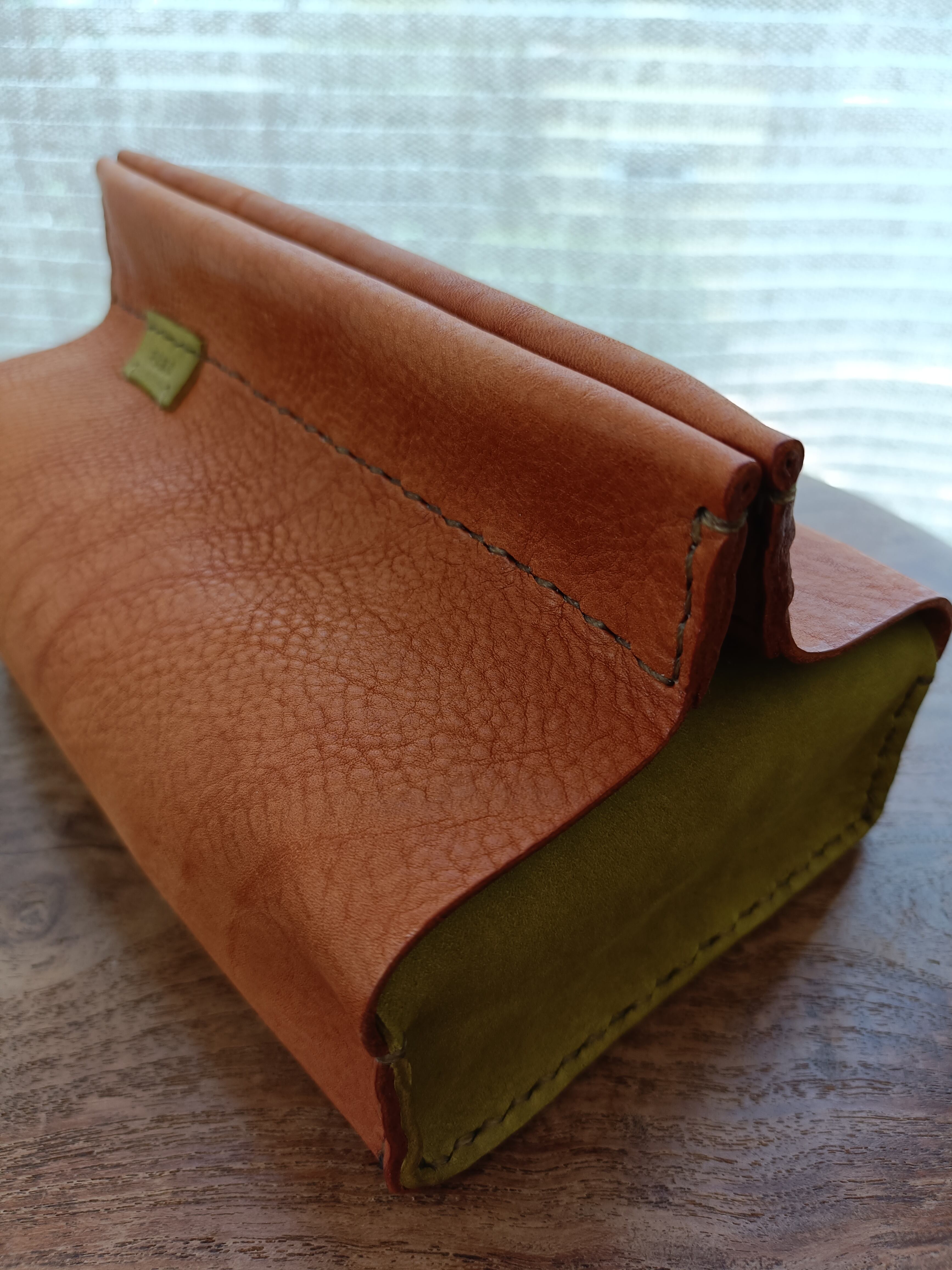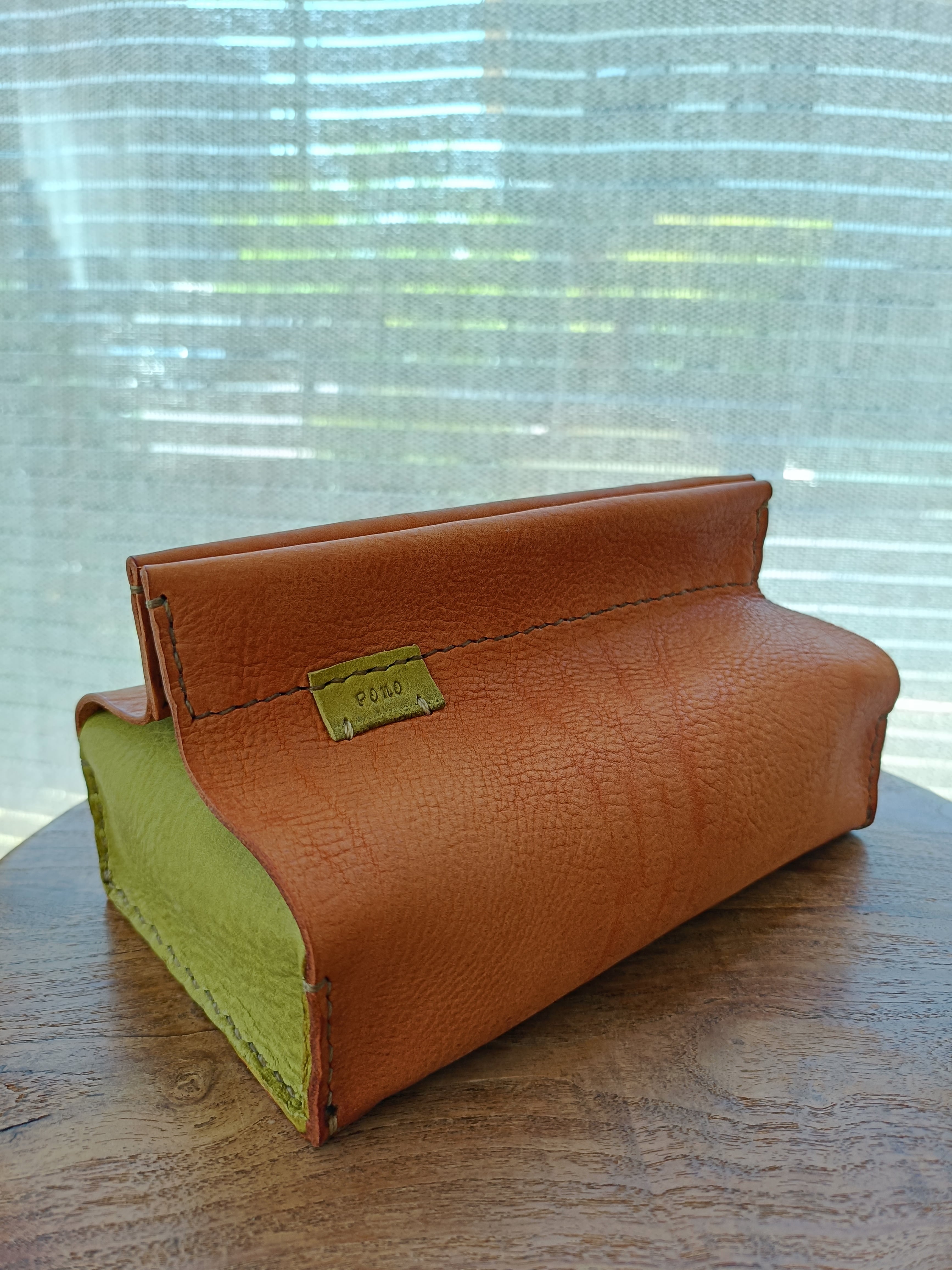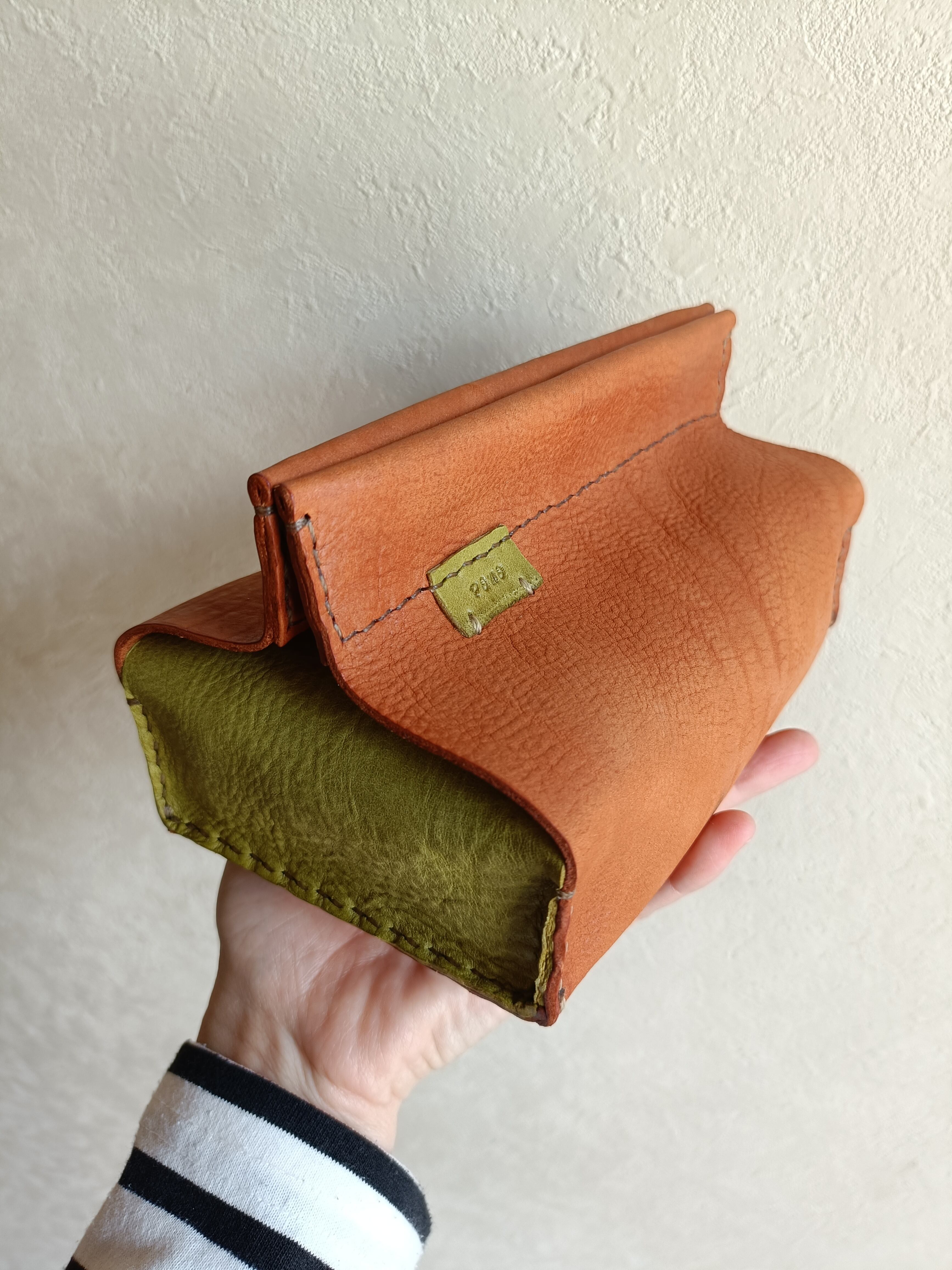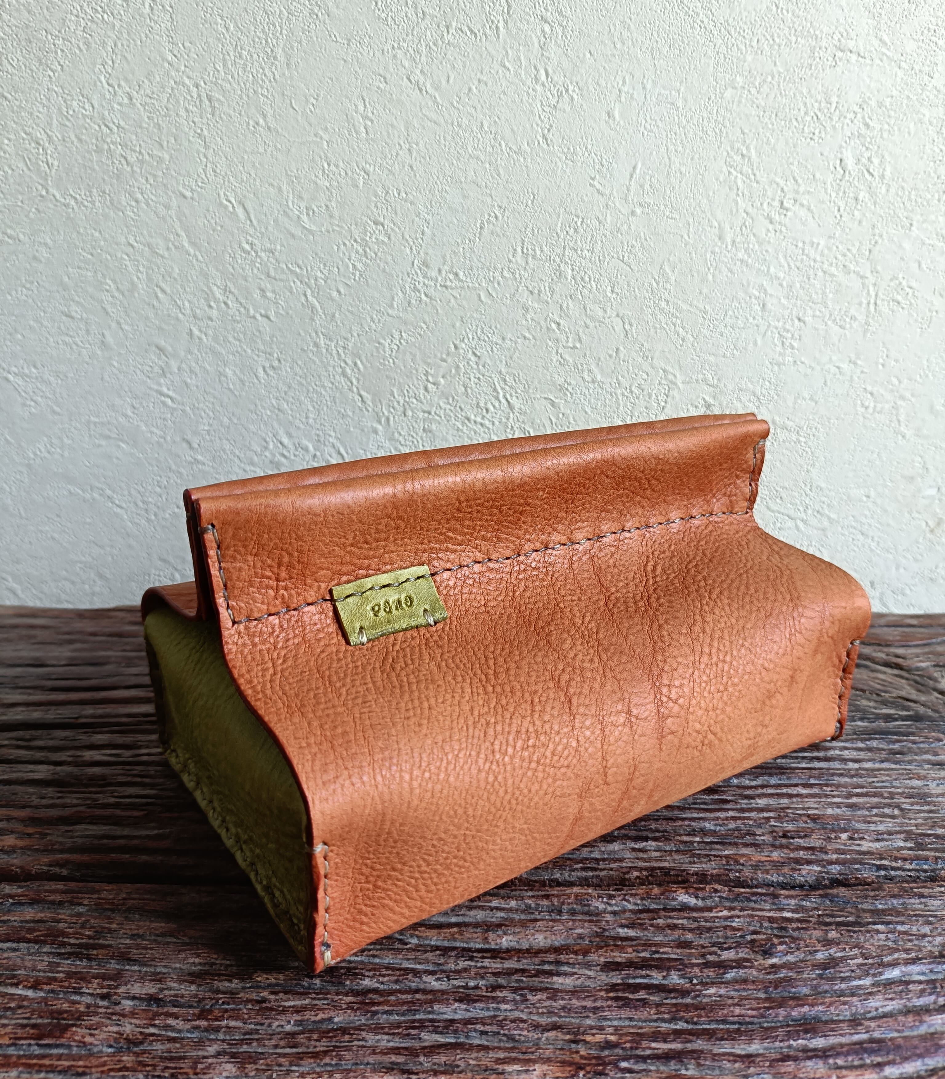 ソフトパックティッシュケース キャメル✗ピスタチオ オイルヌメ(シュリンク)