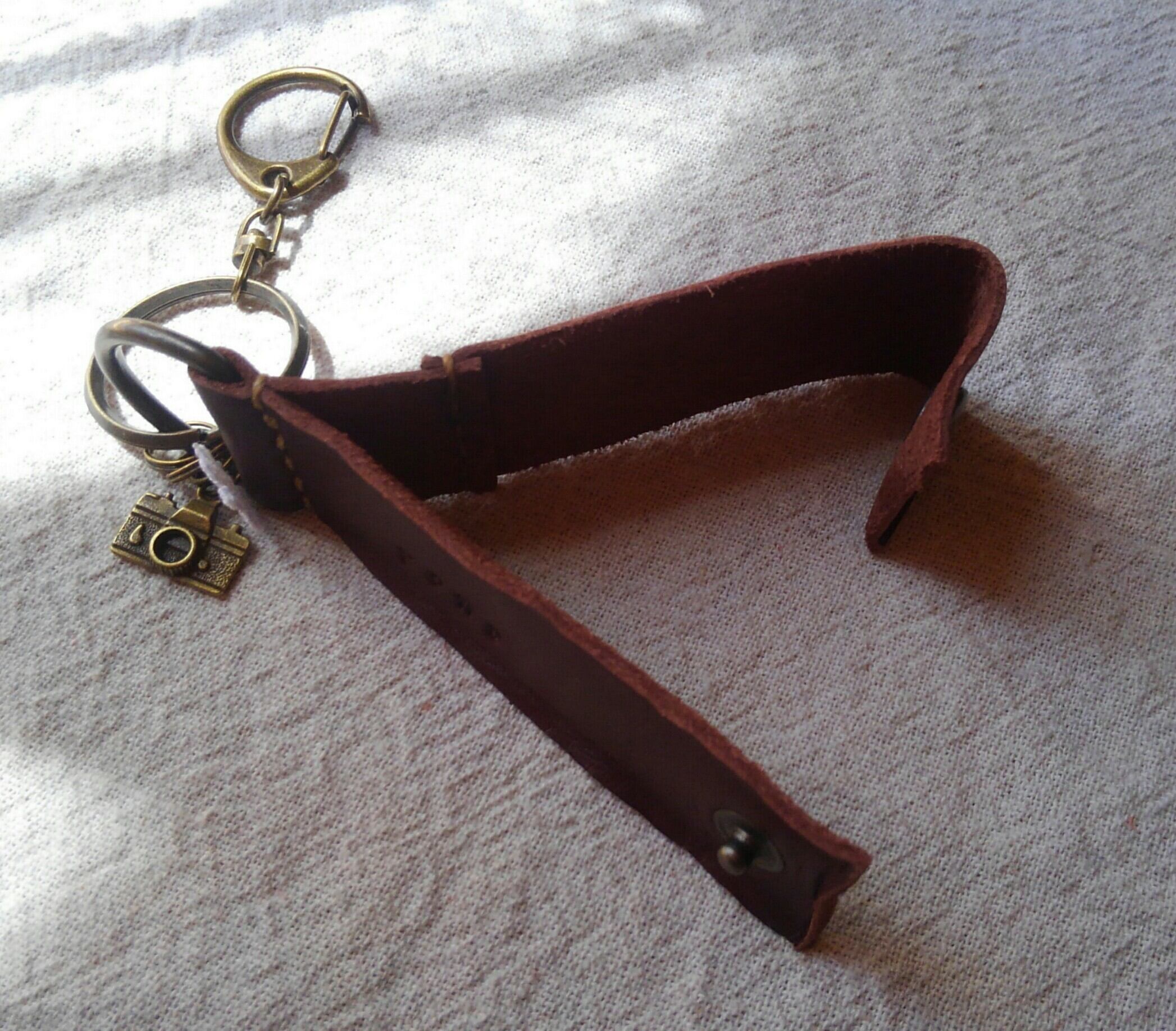 ダークブラウンのタンニン鞣し革で、キーホルダーを作りました。