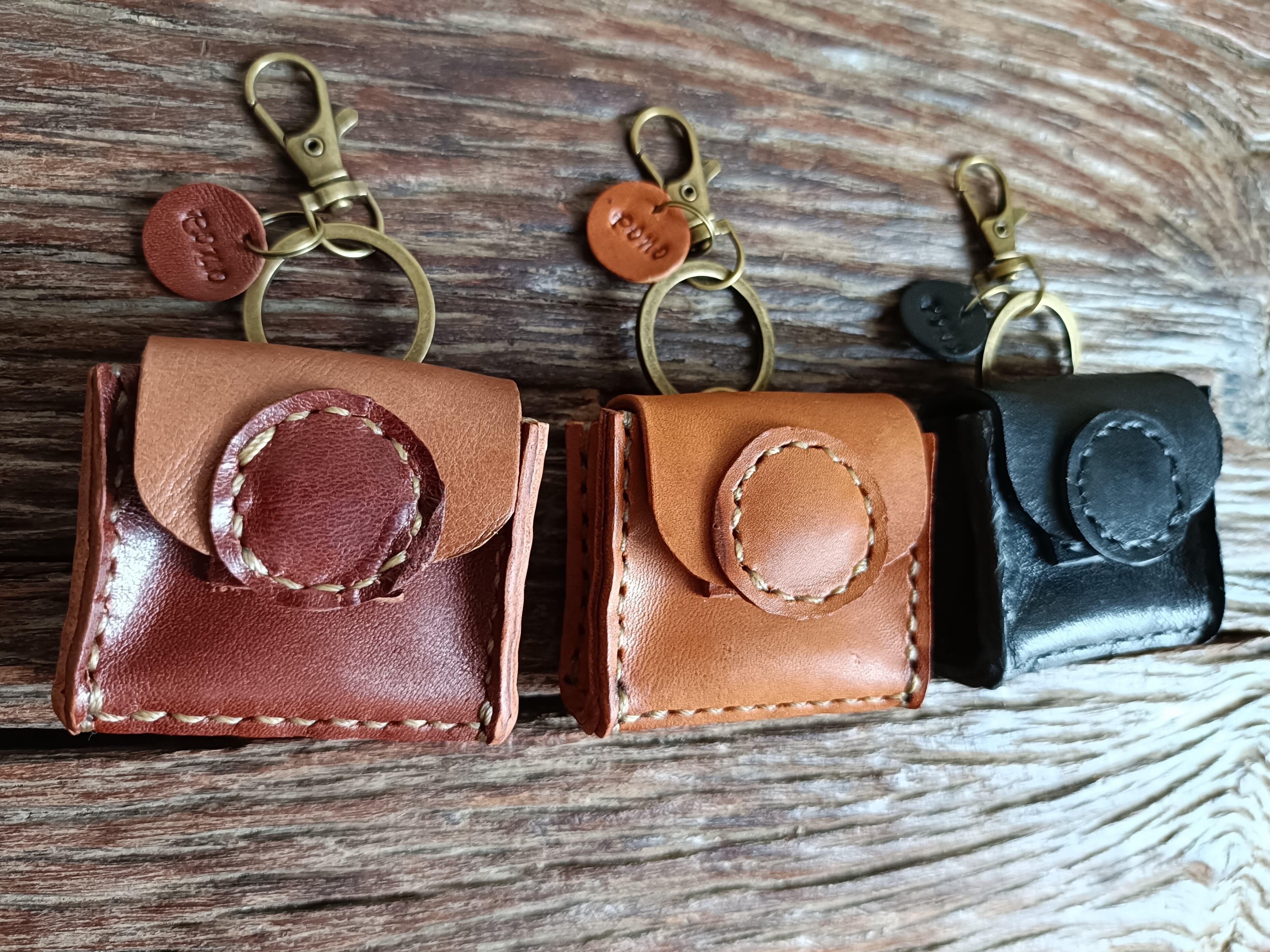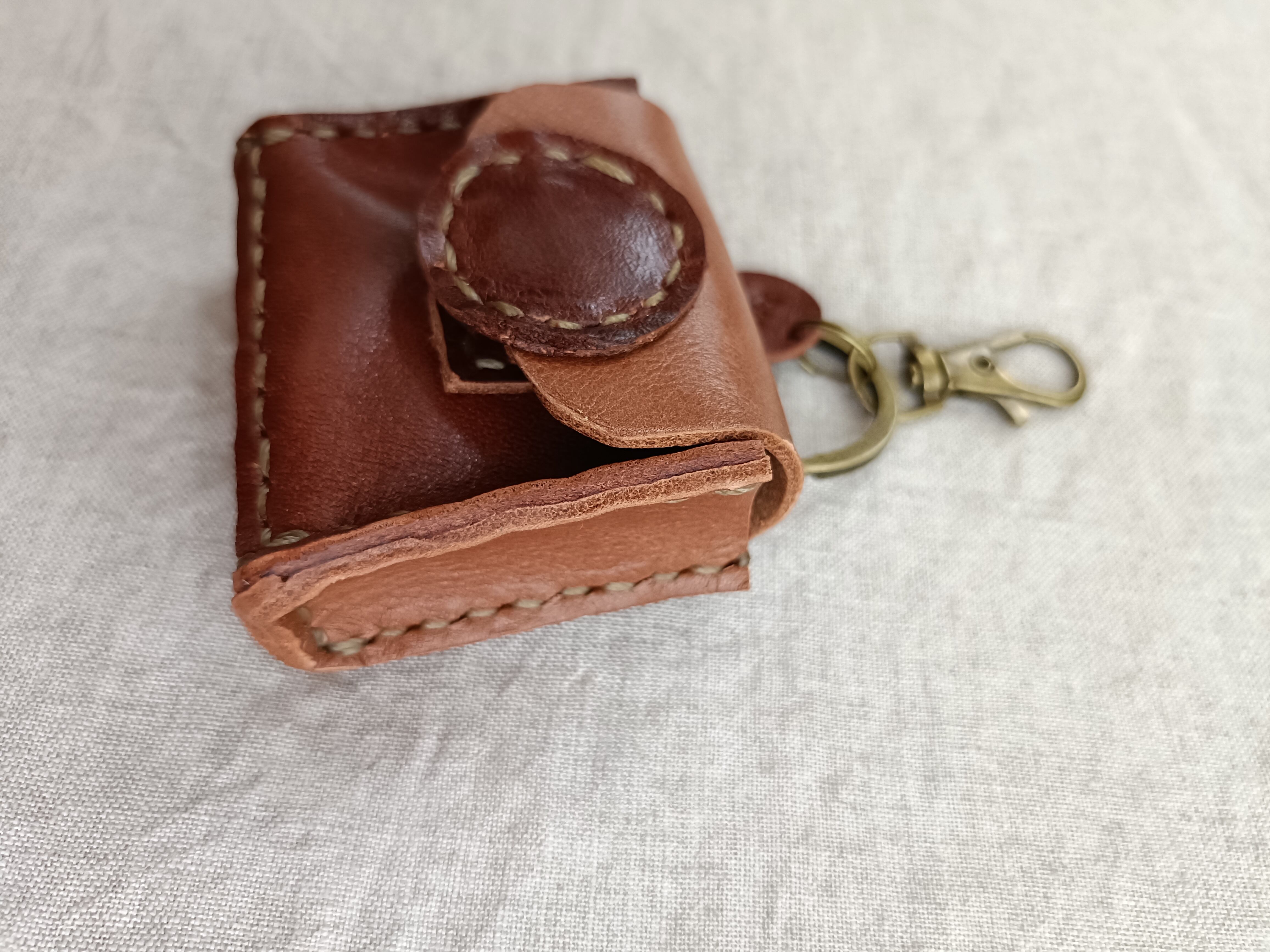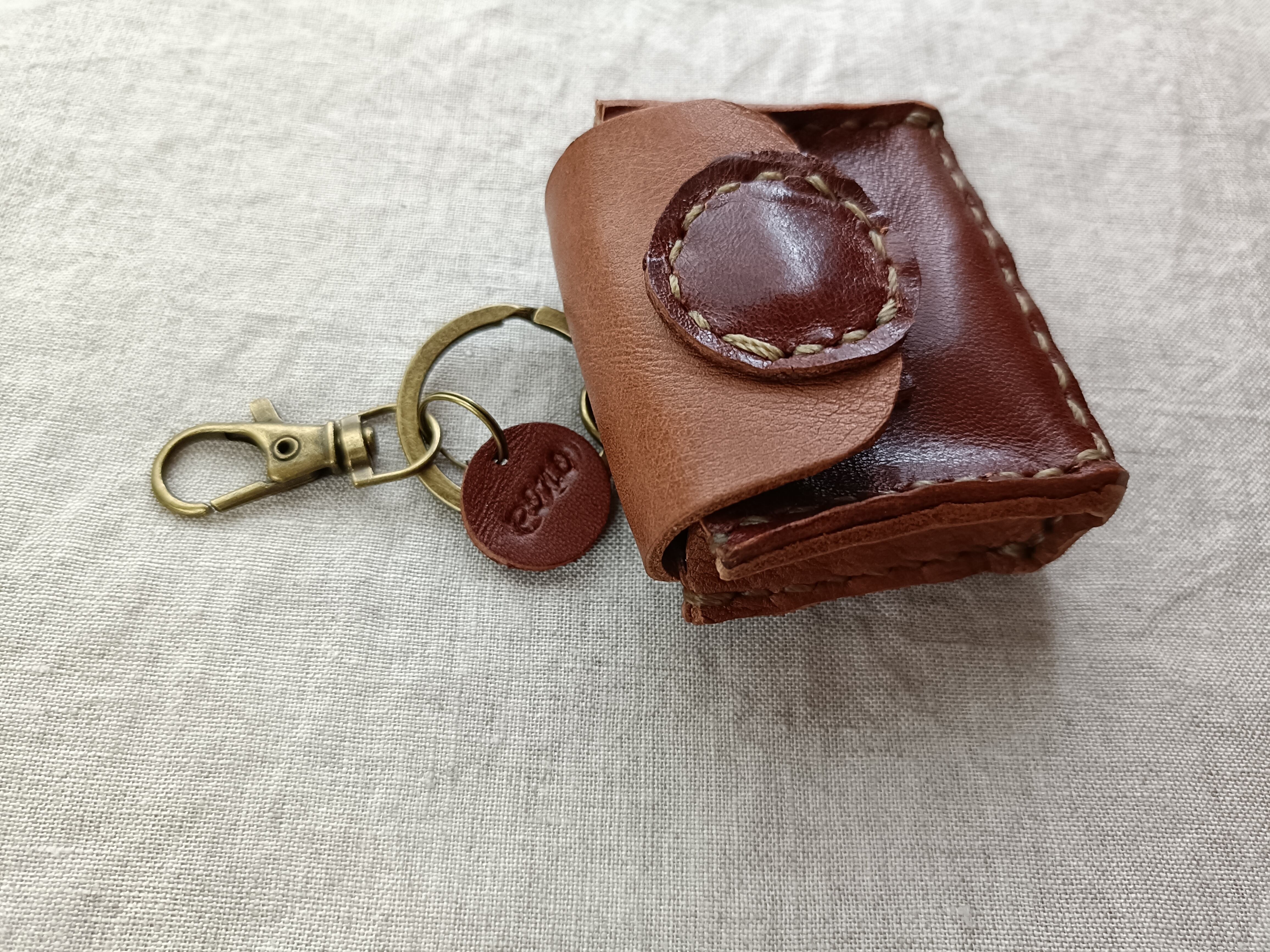 Medicine Case 携帯用 アクセサリーケース 小物ケース キーホルダー ベージュブラウン✗濃いブラウン オイルワックスレザーヌメ