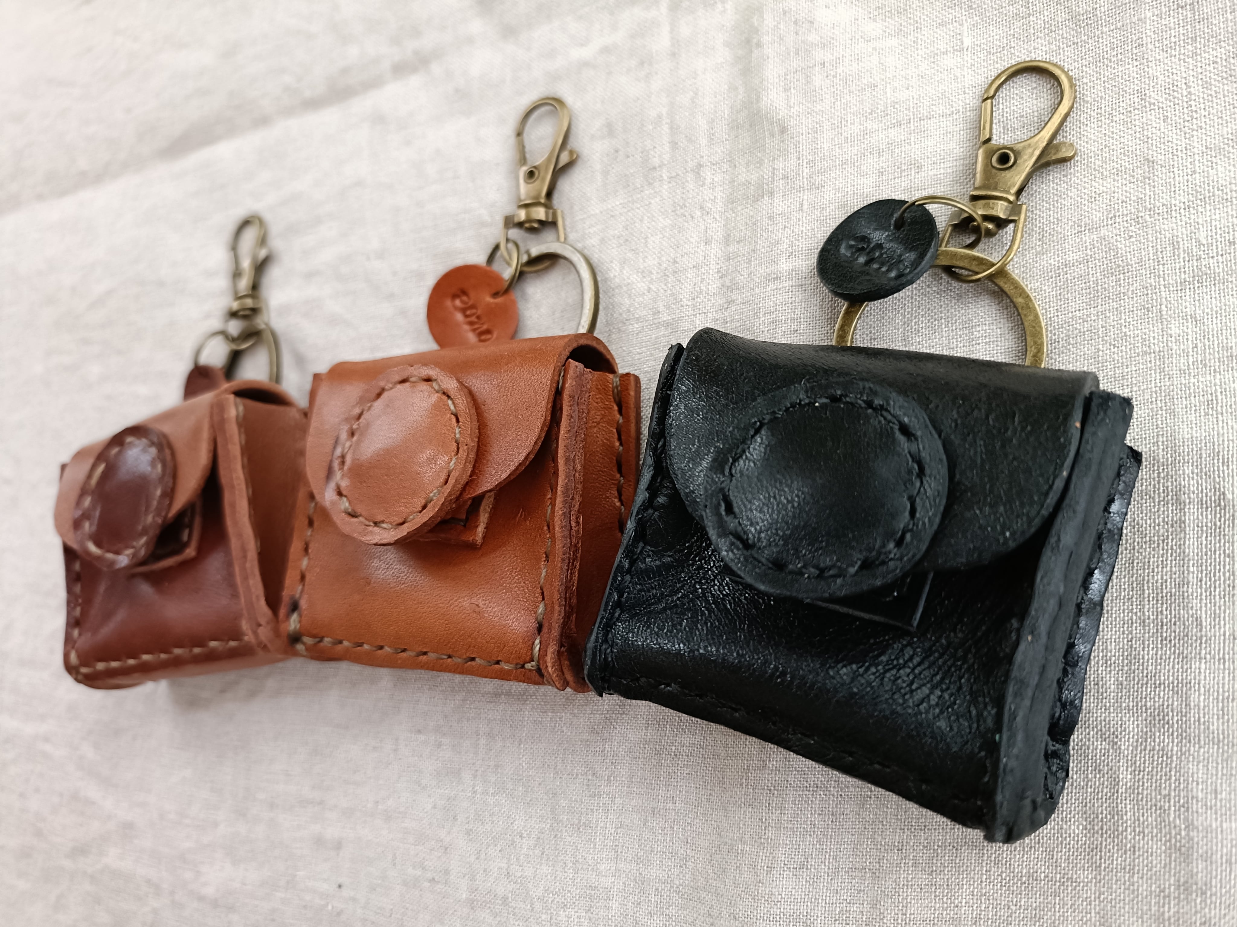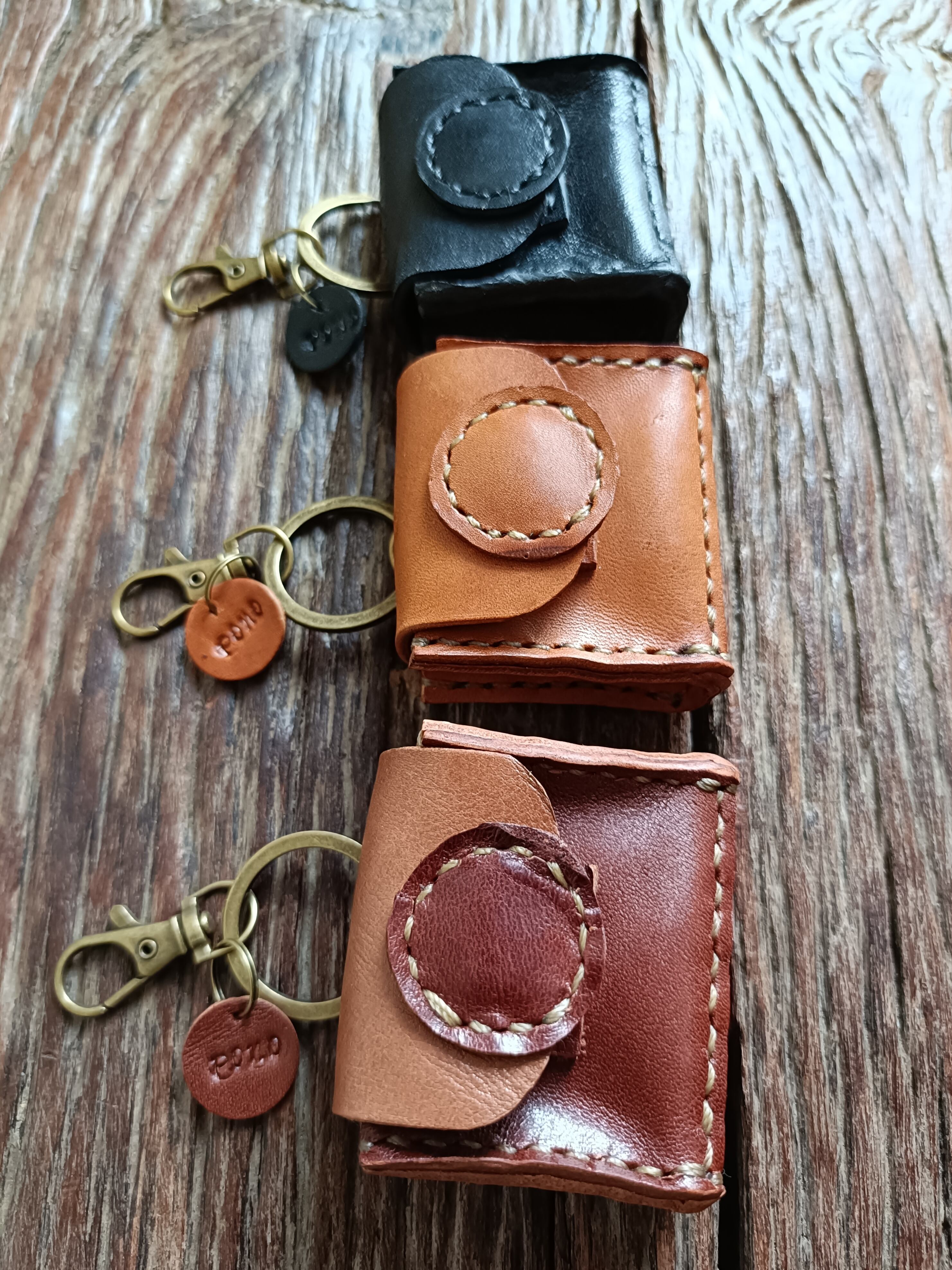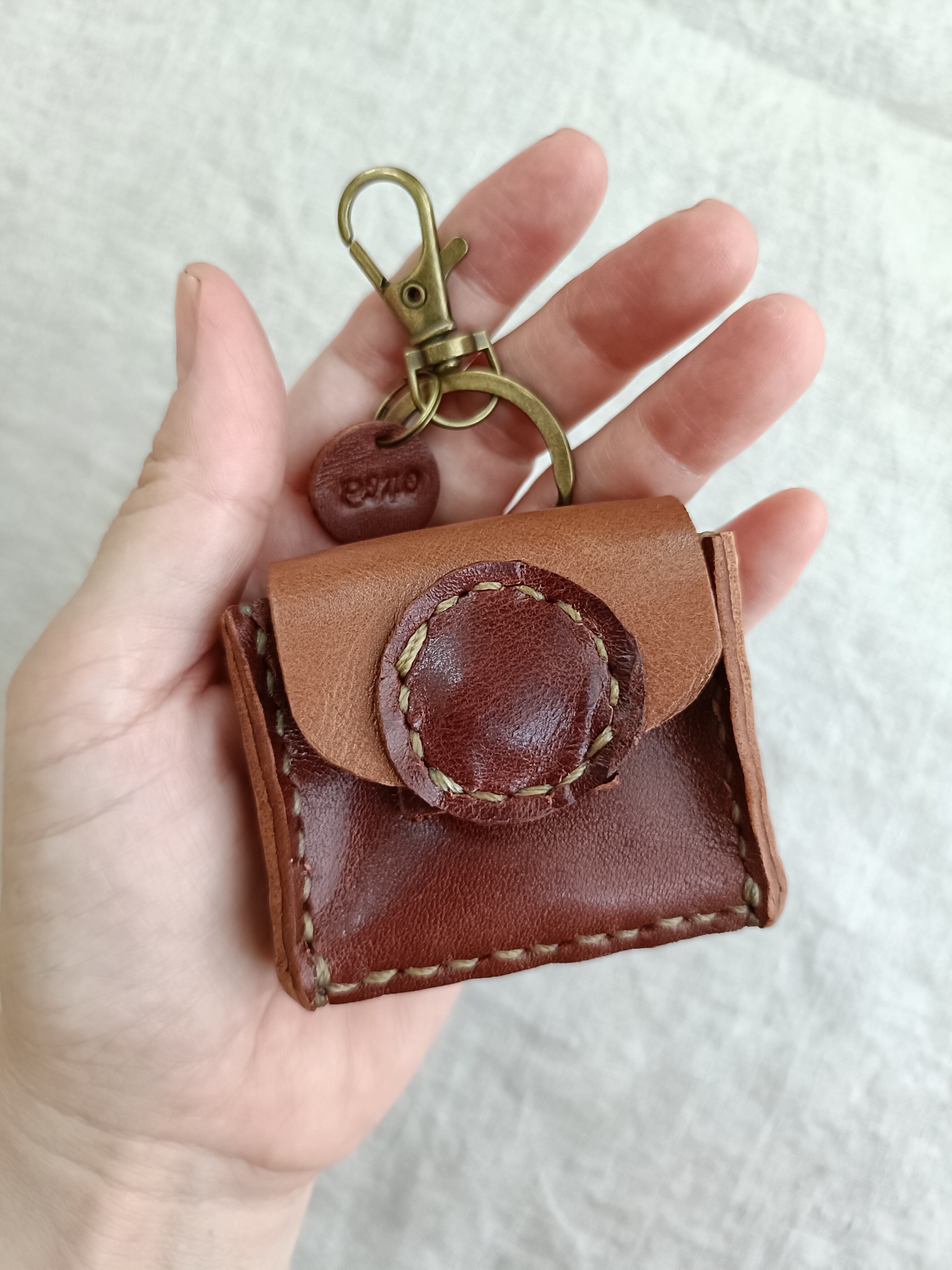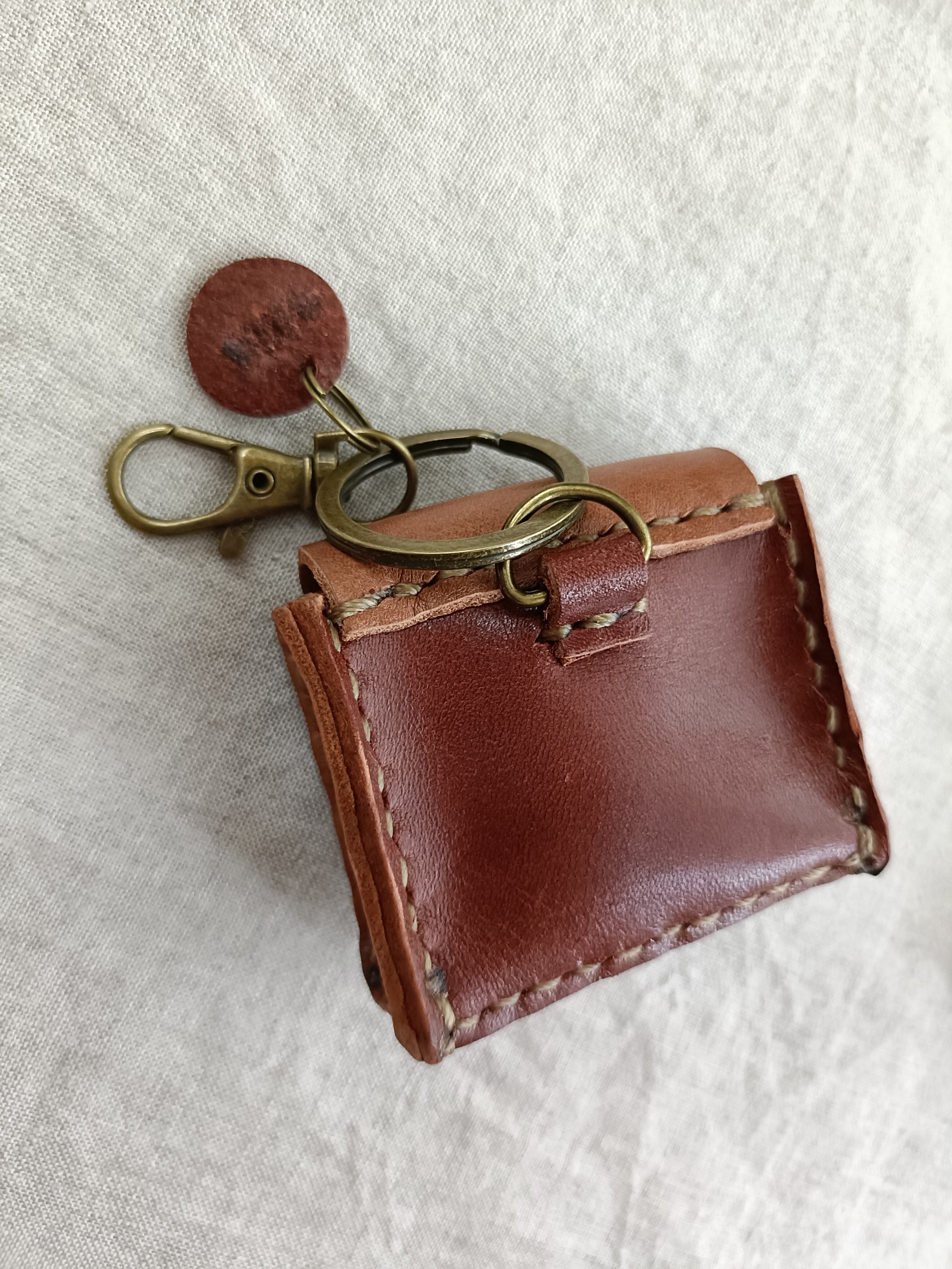 Medicine Case 携帯用 アクセサリーケース 小物ケース キーホルダー ベージュブラウン✗濃いブラウン オイルワックスレザーヌメ