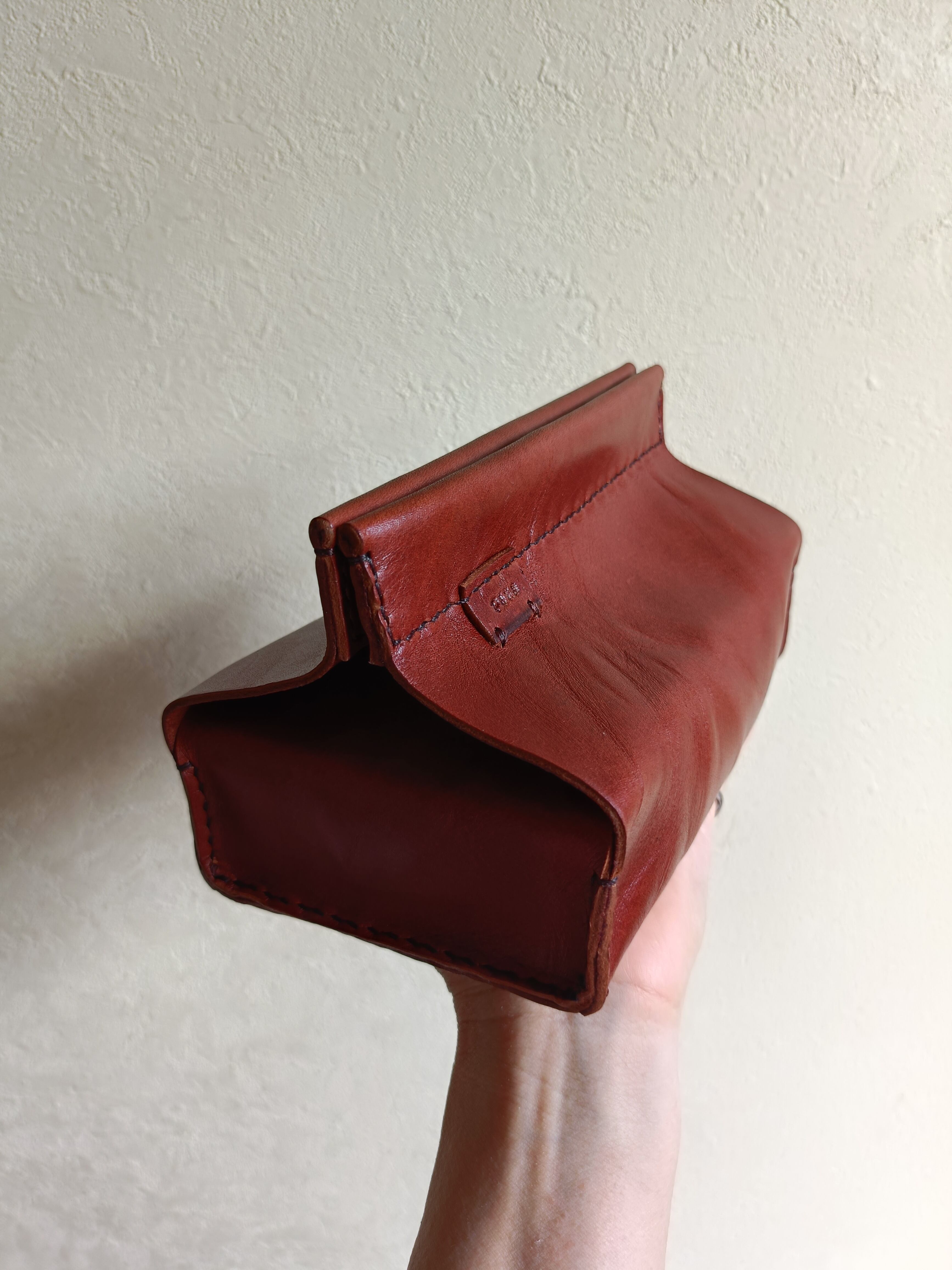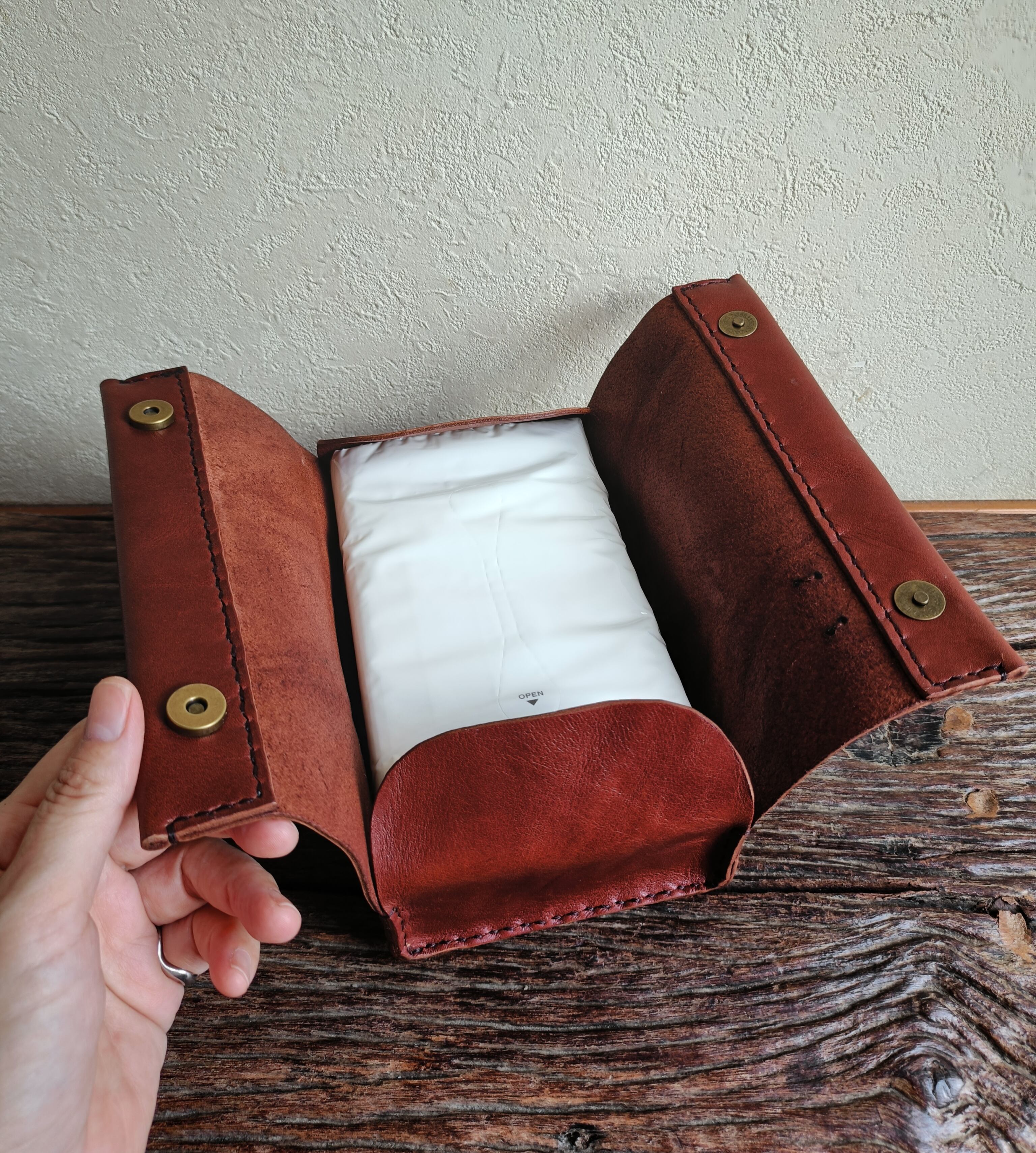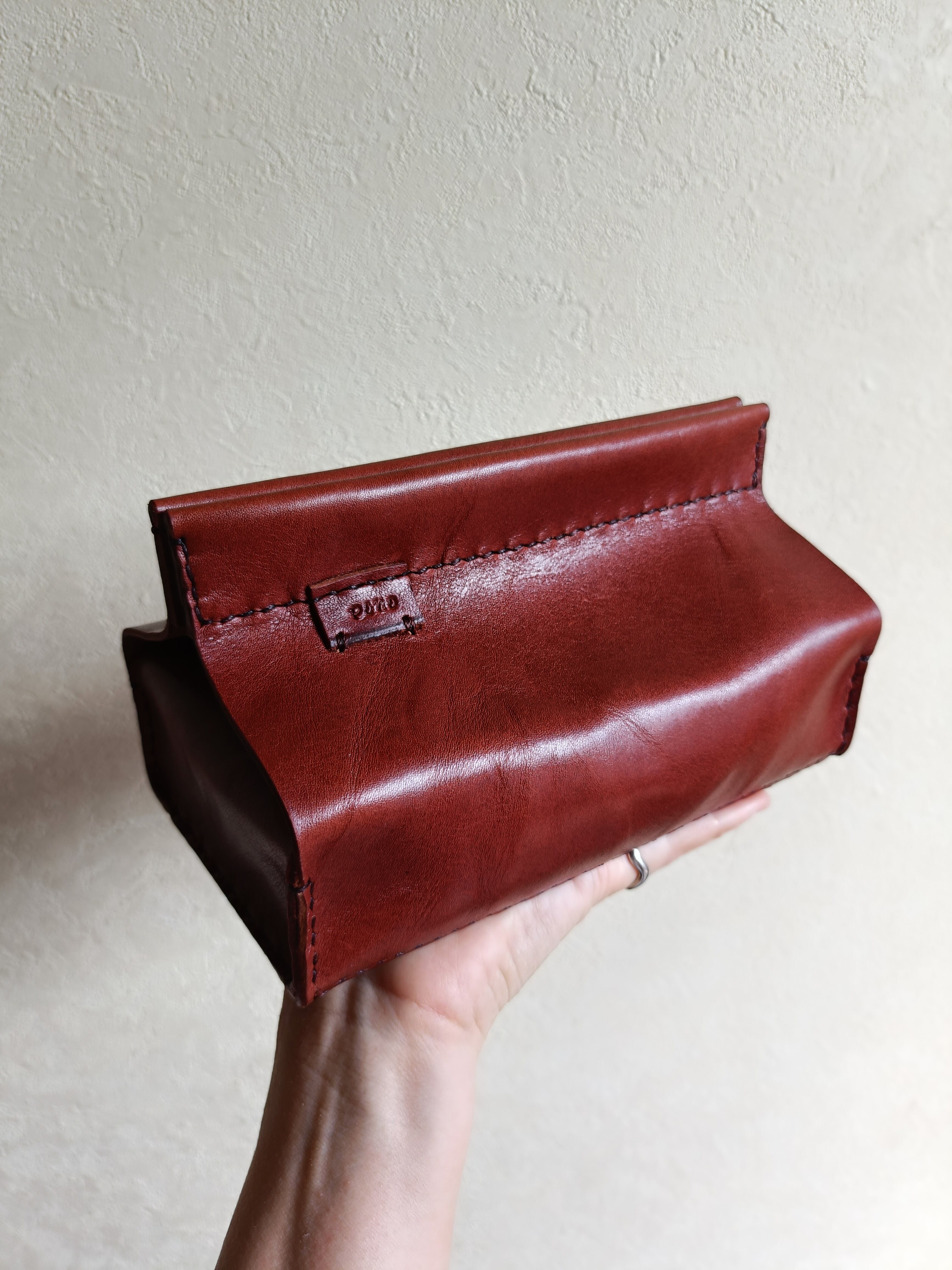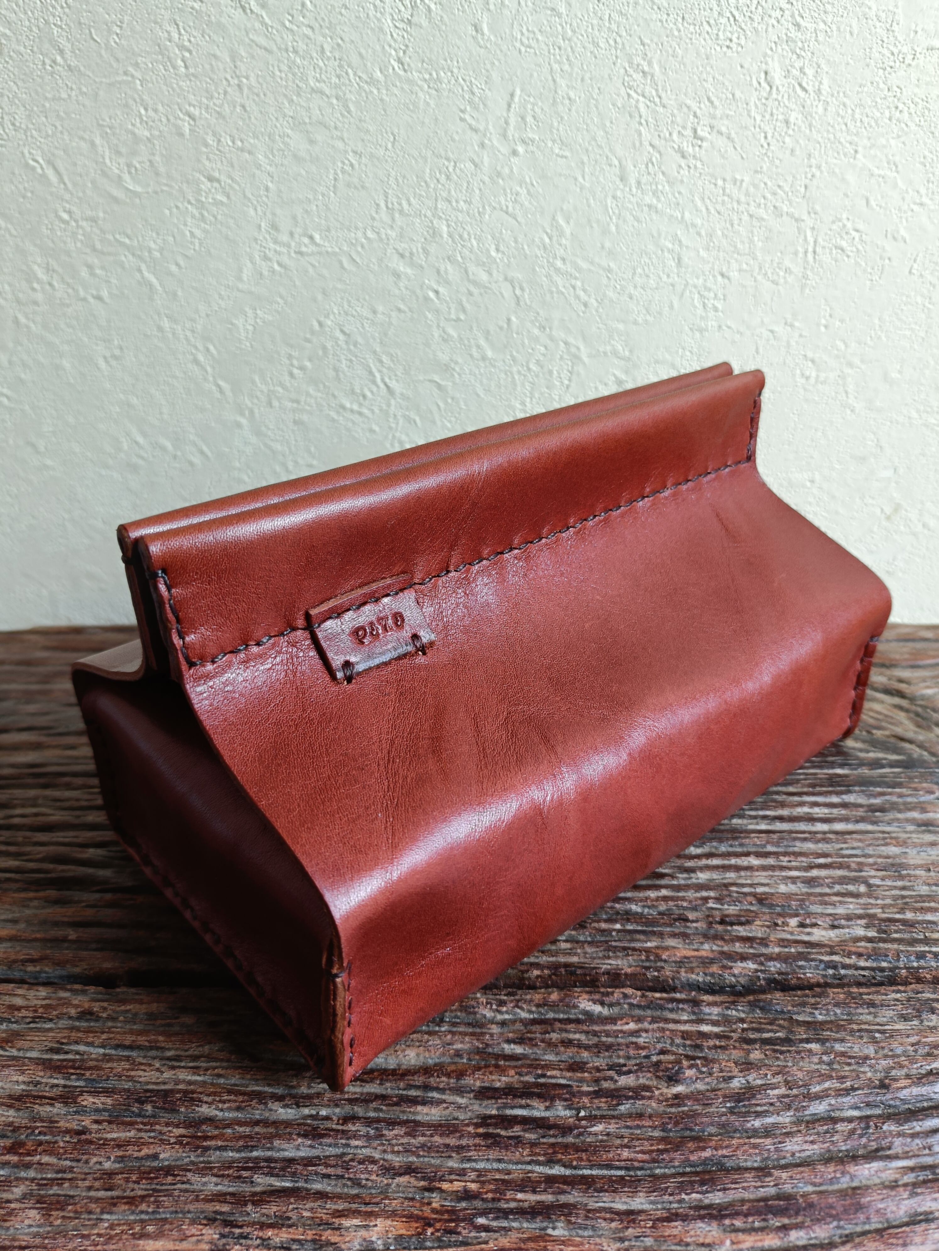 ソフトパックティッシュケース 濃いブラウン オイルワックスレザー