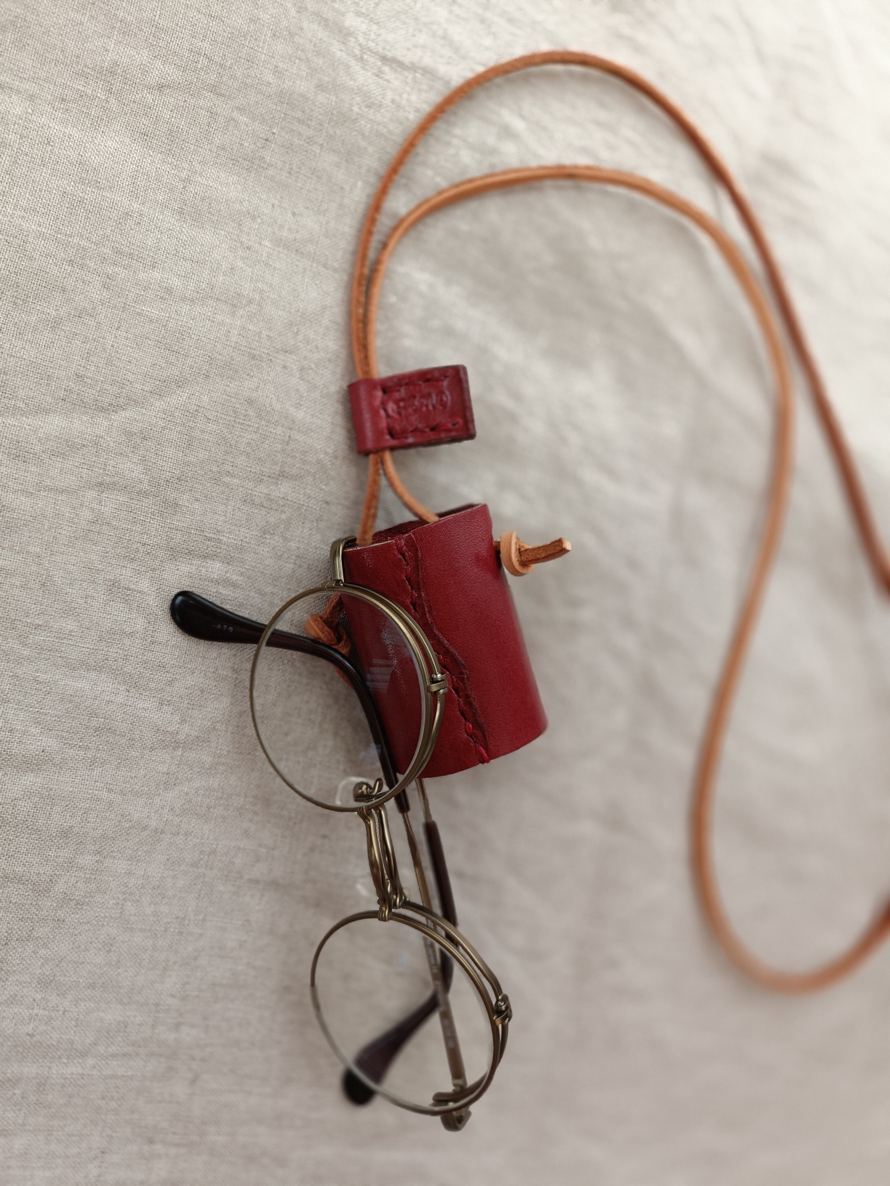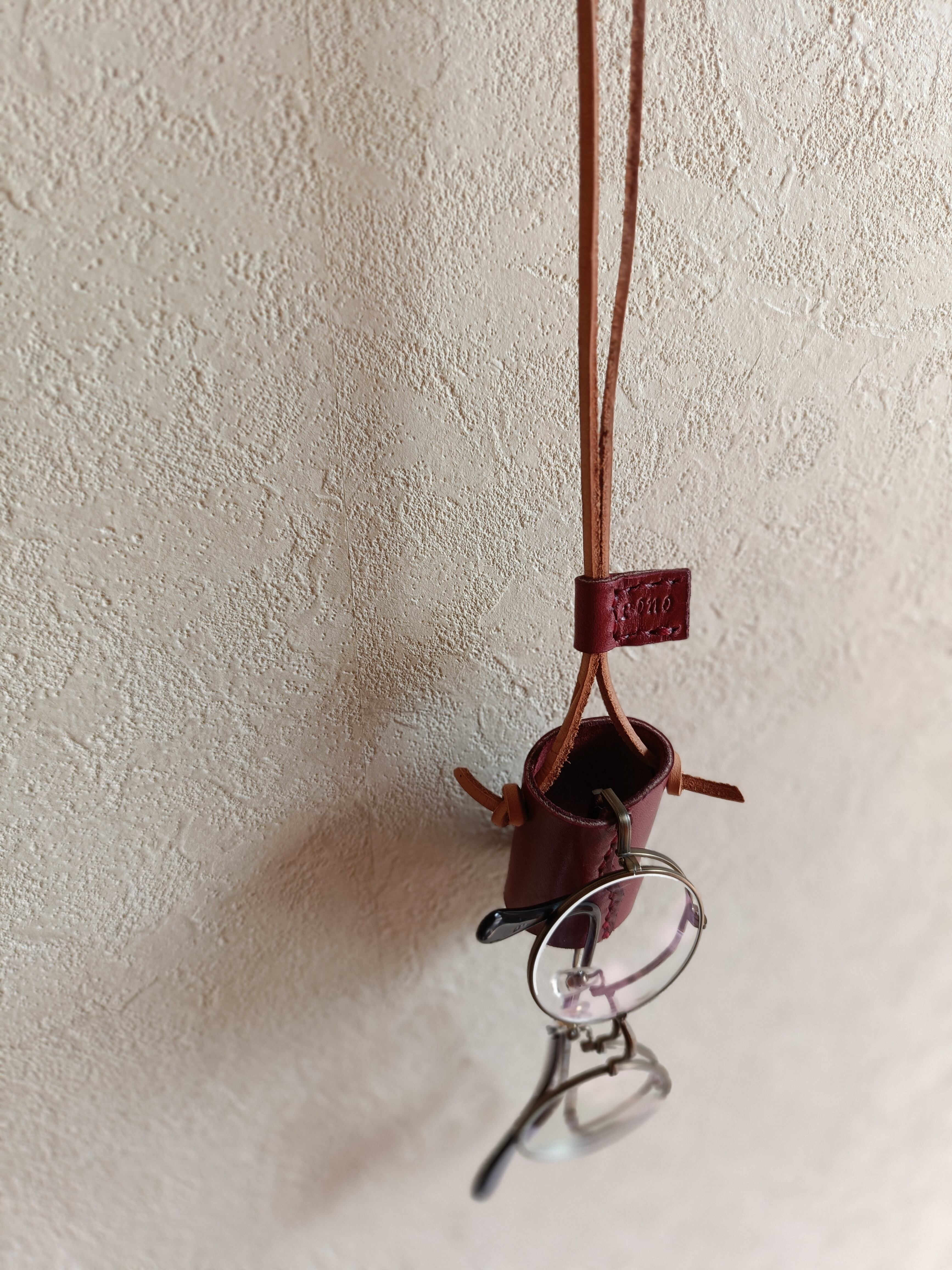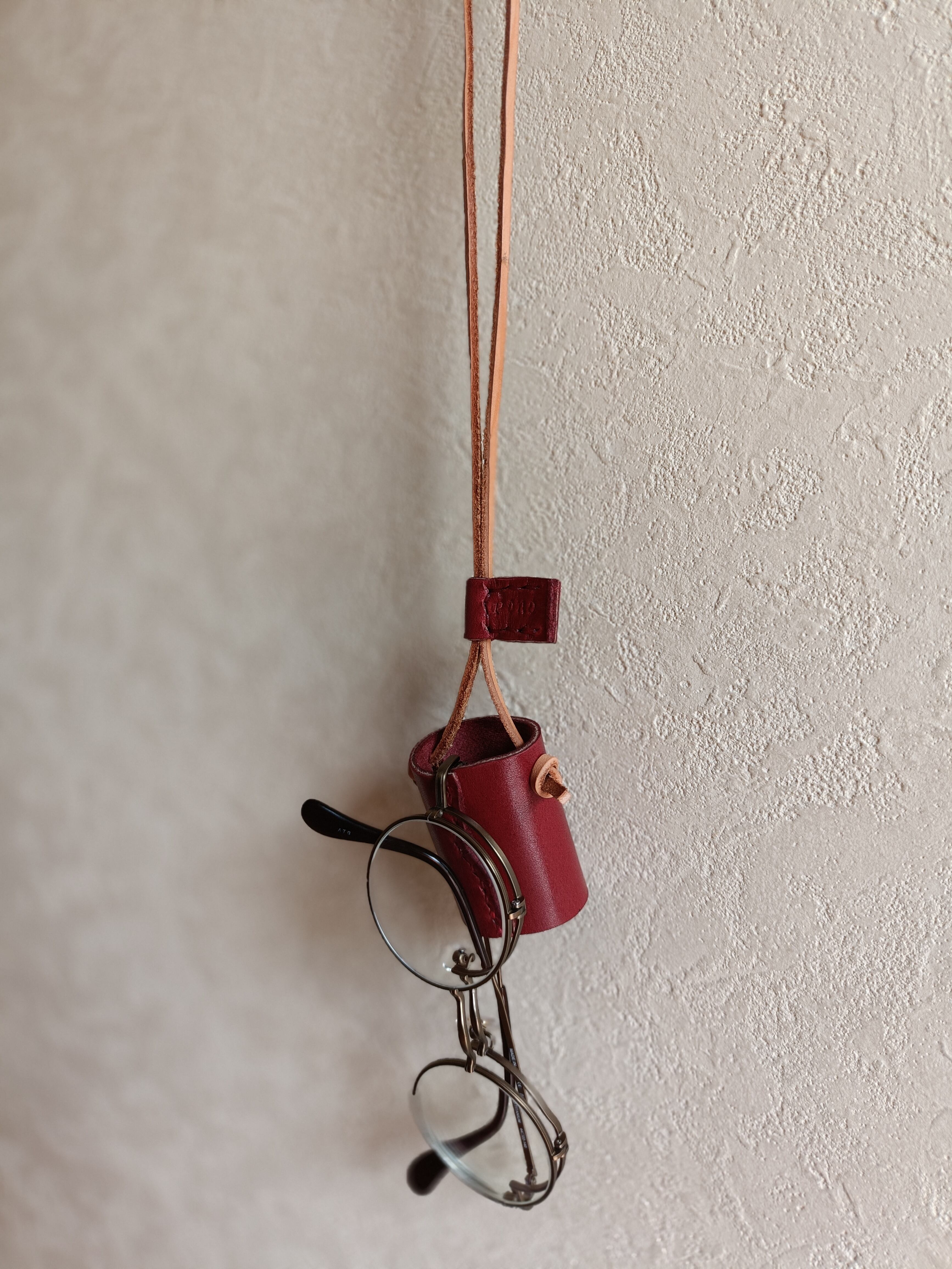 メガネホルダーネックレス 赤 黒 オイルワックスレザー