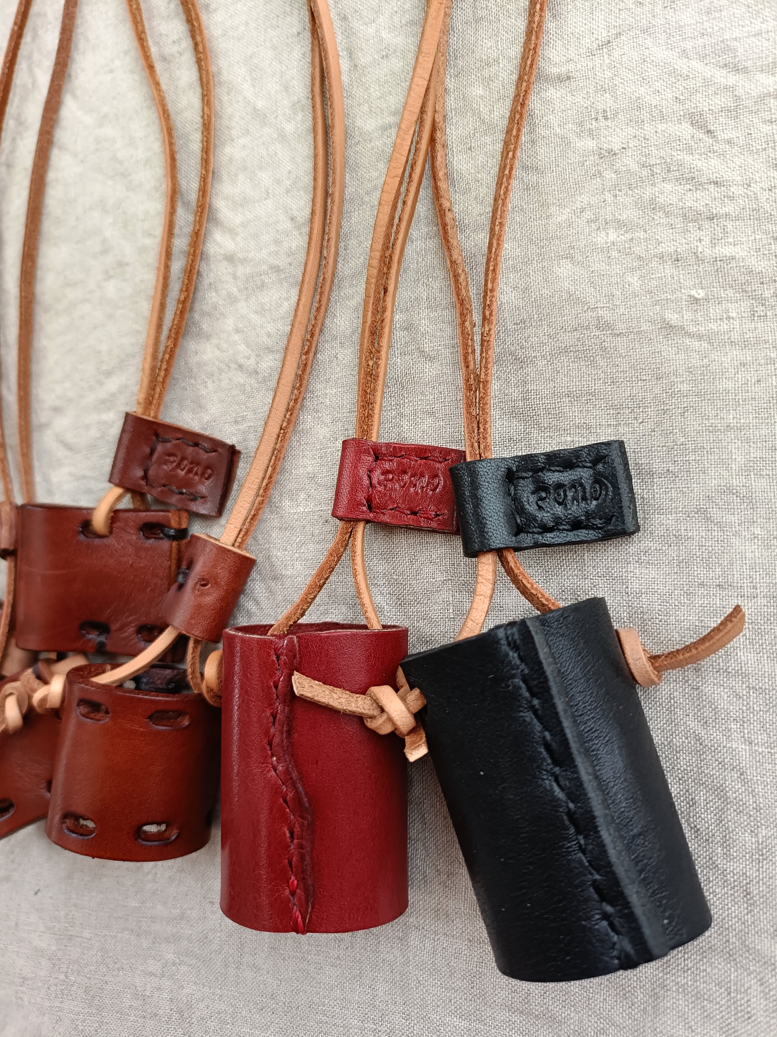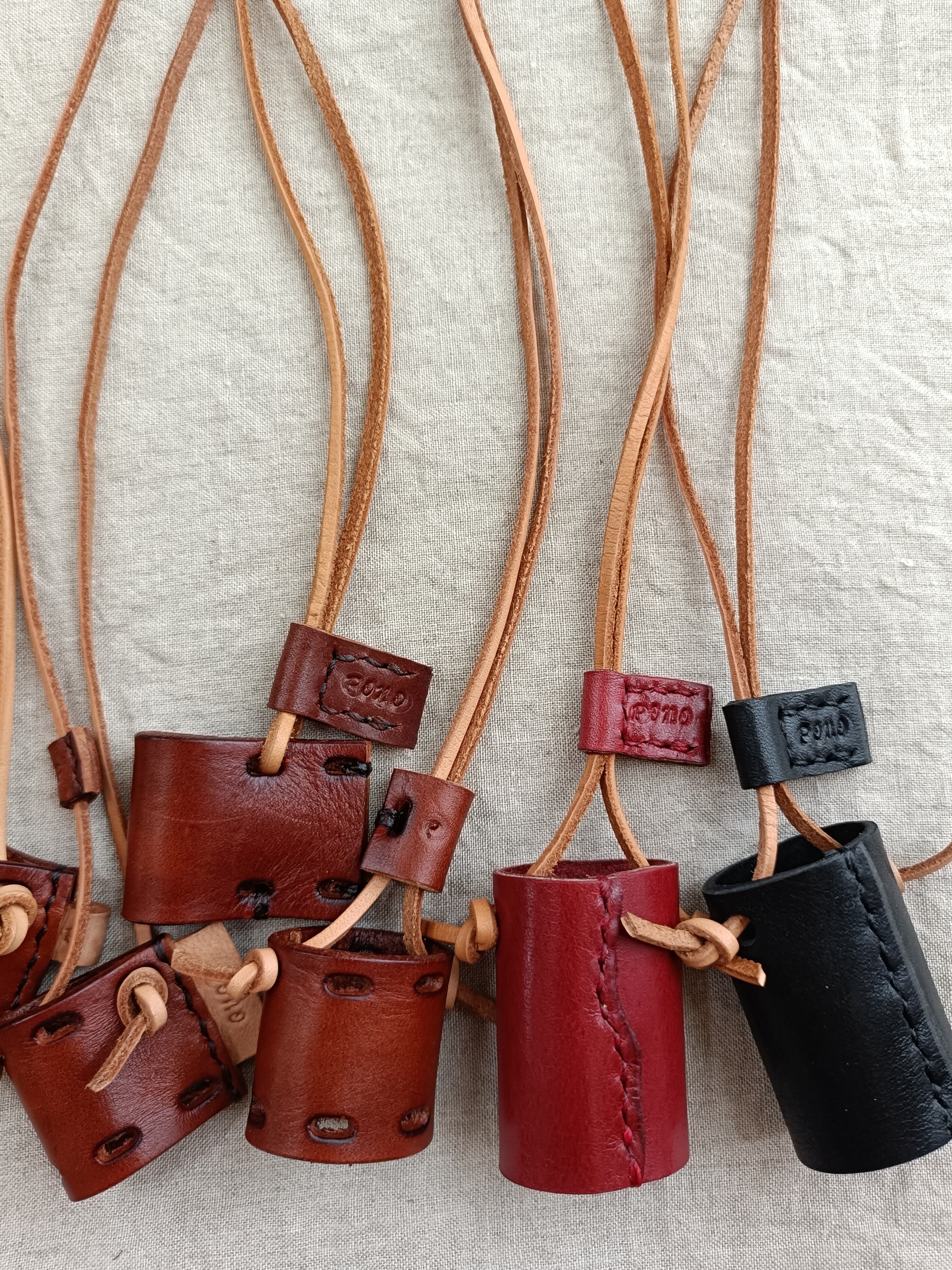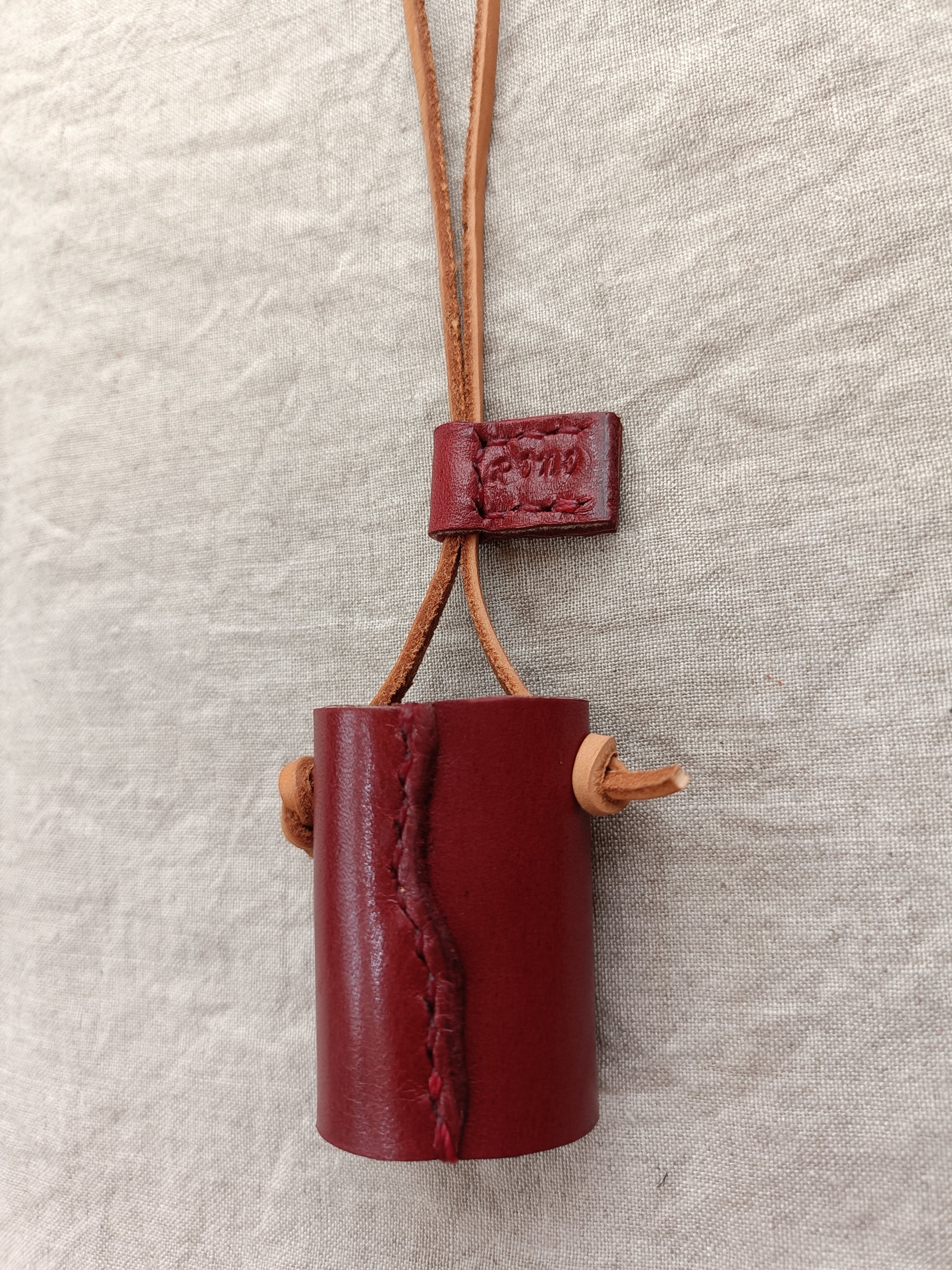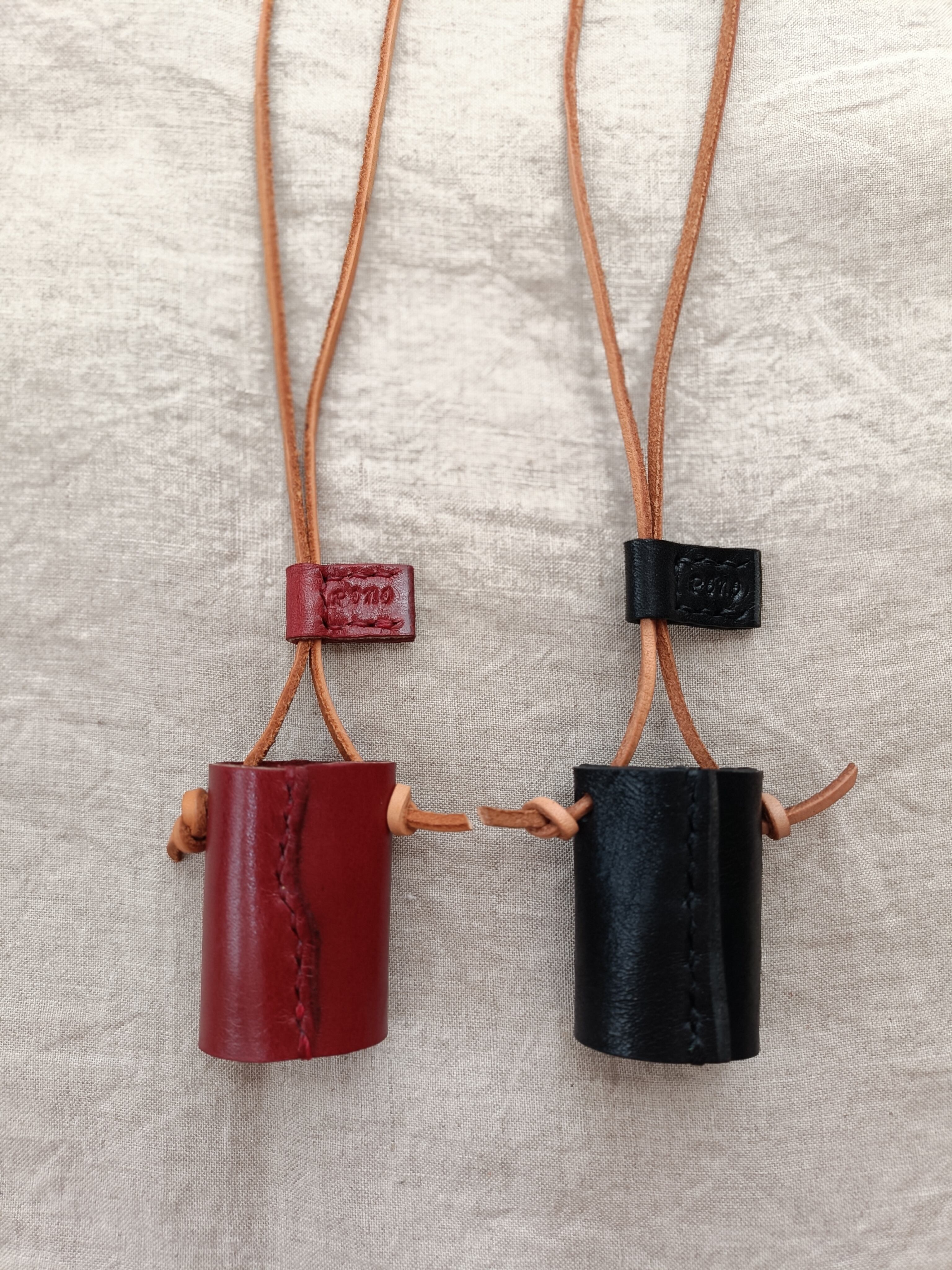 メガネホルダーネックレス 赤 黒 オイルワックスレザー