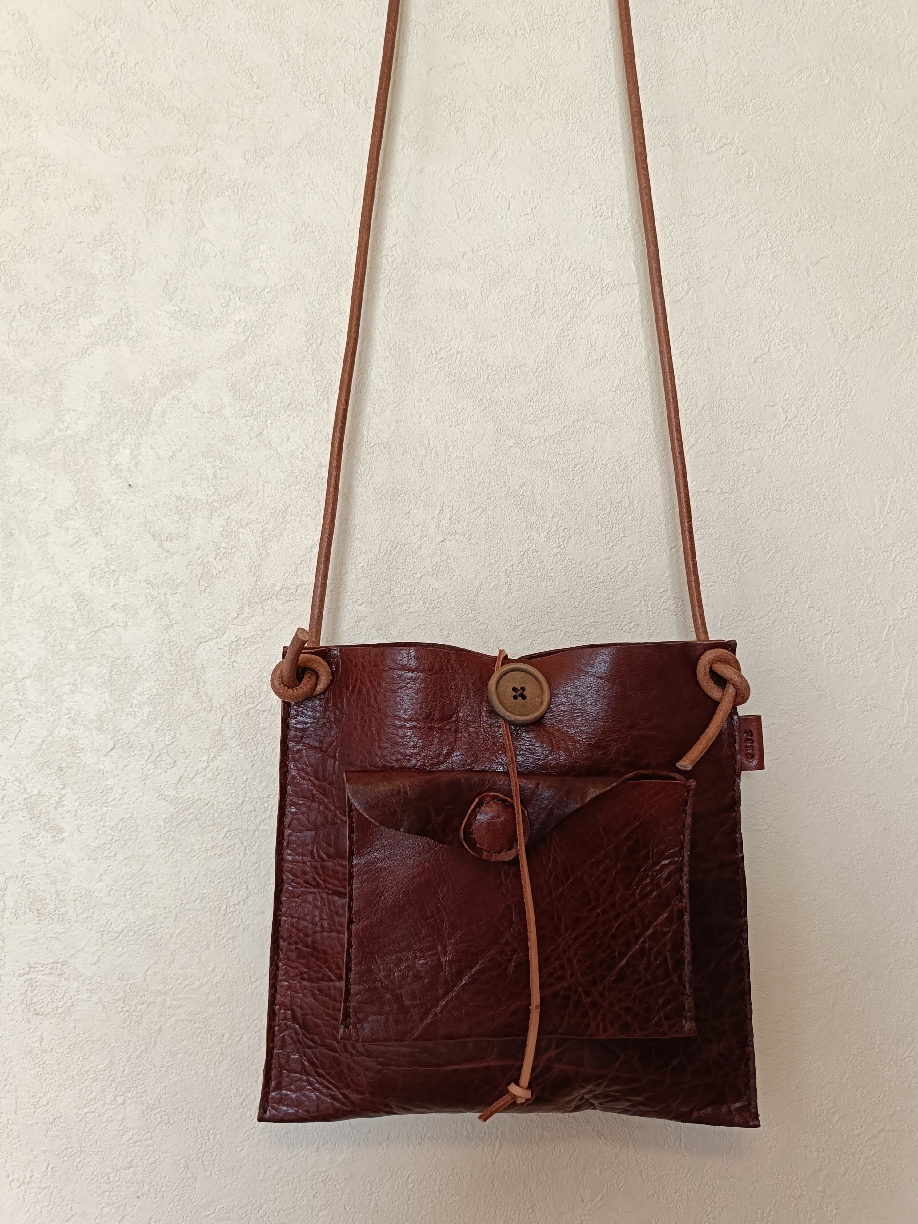 牛革。吟付きによる自然な光沢と染料仕上げによって透明感があり、シボが大きめであることでカジュアルさに加え、高級感がプラスされた素材です