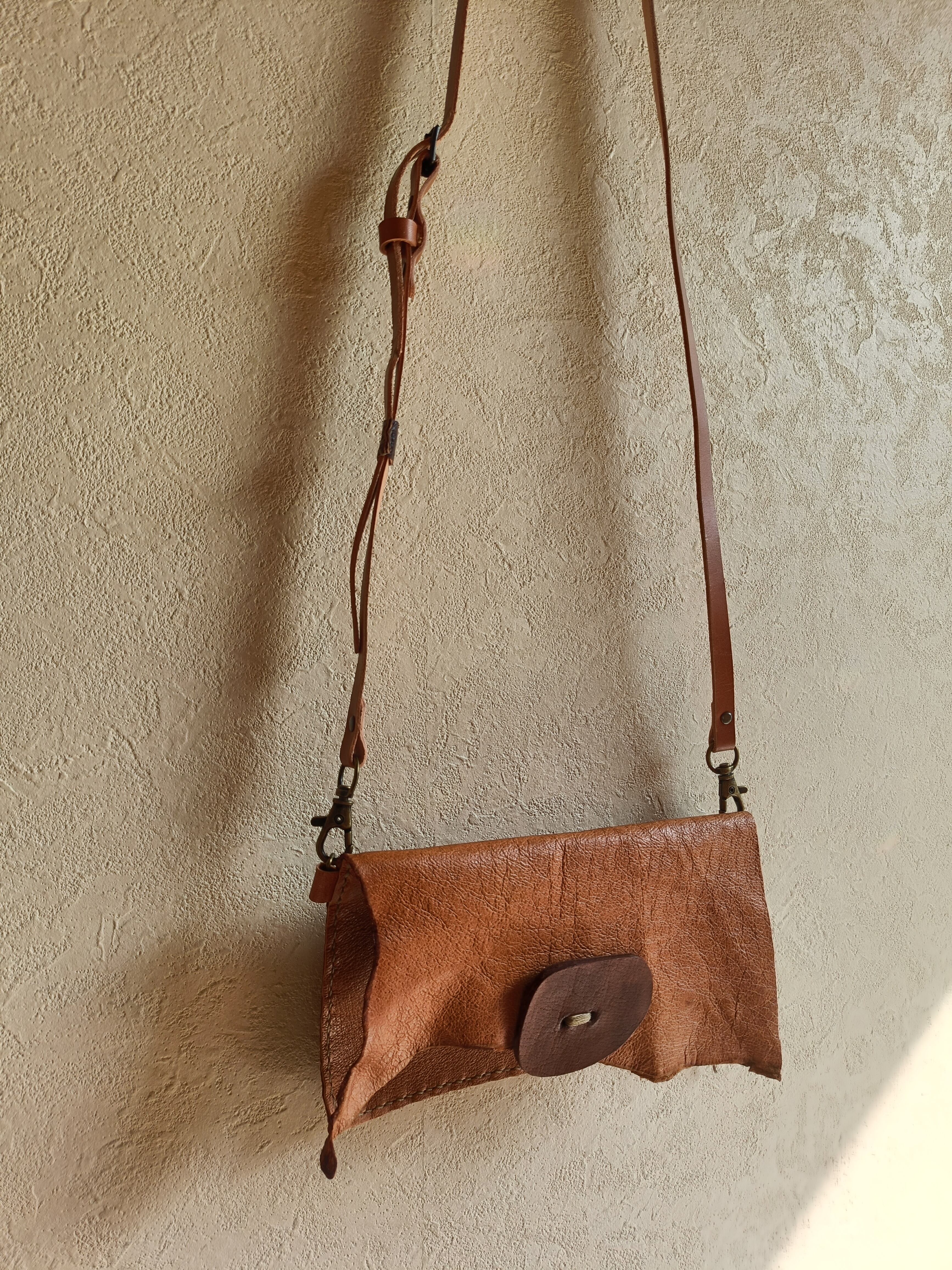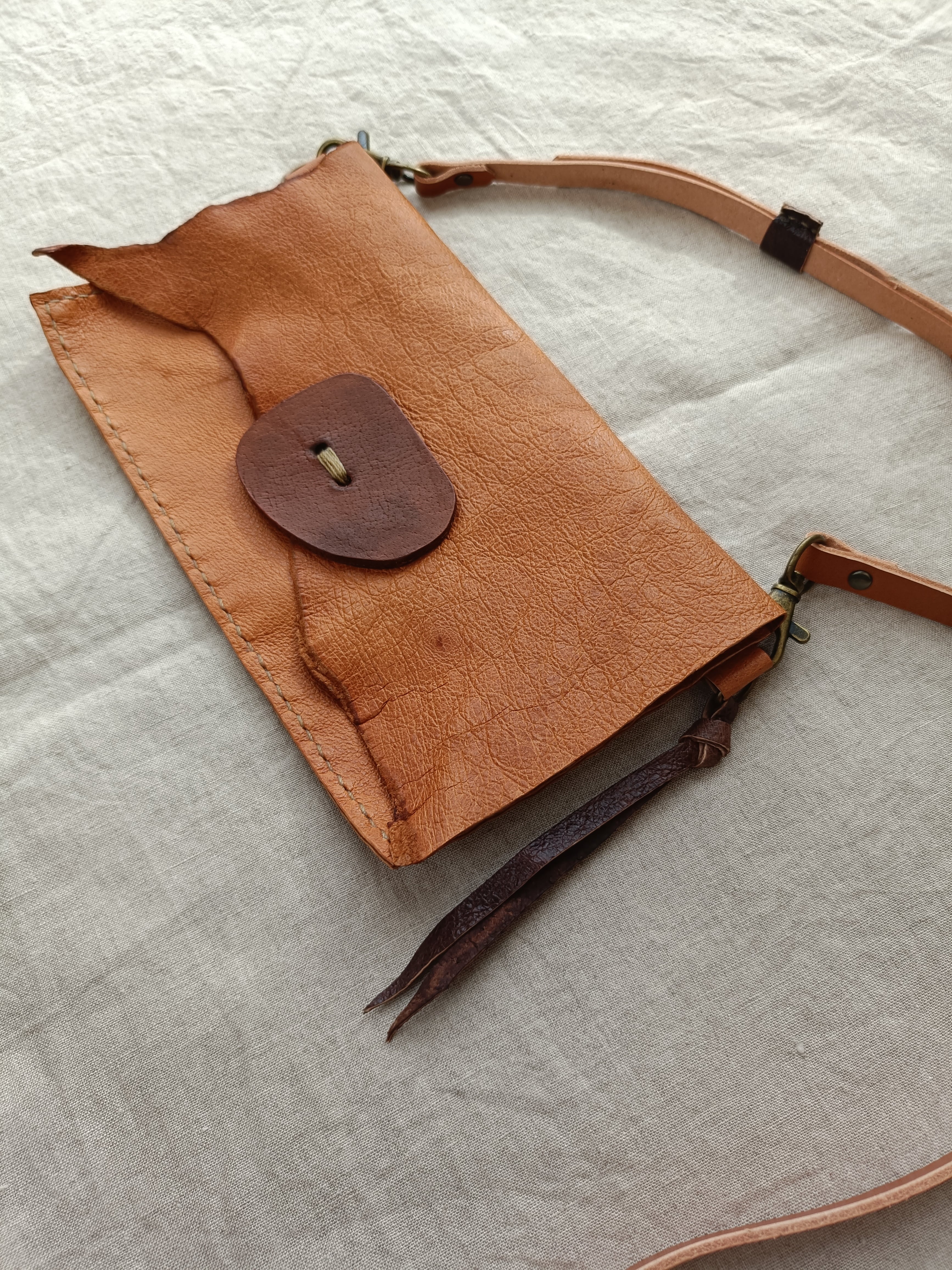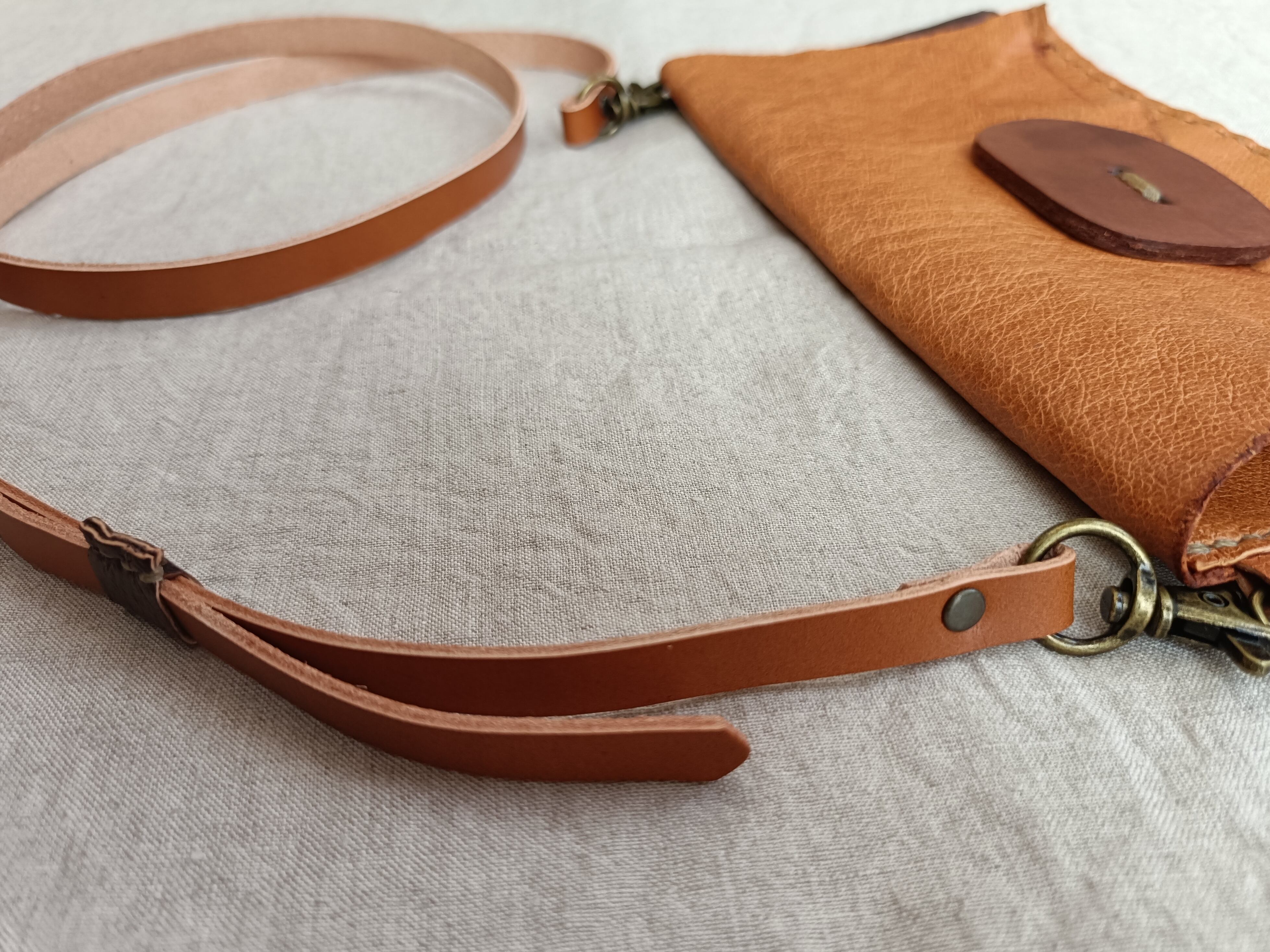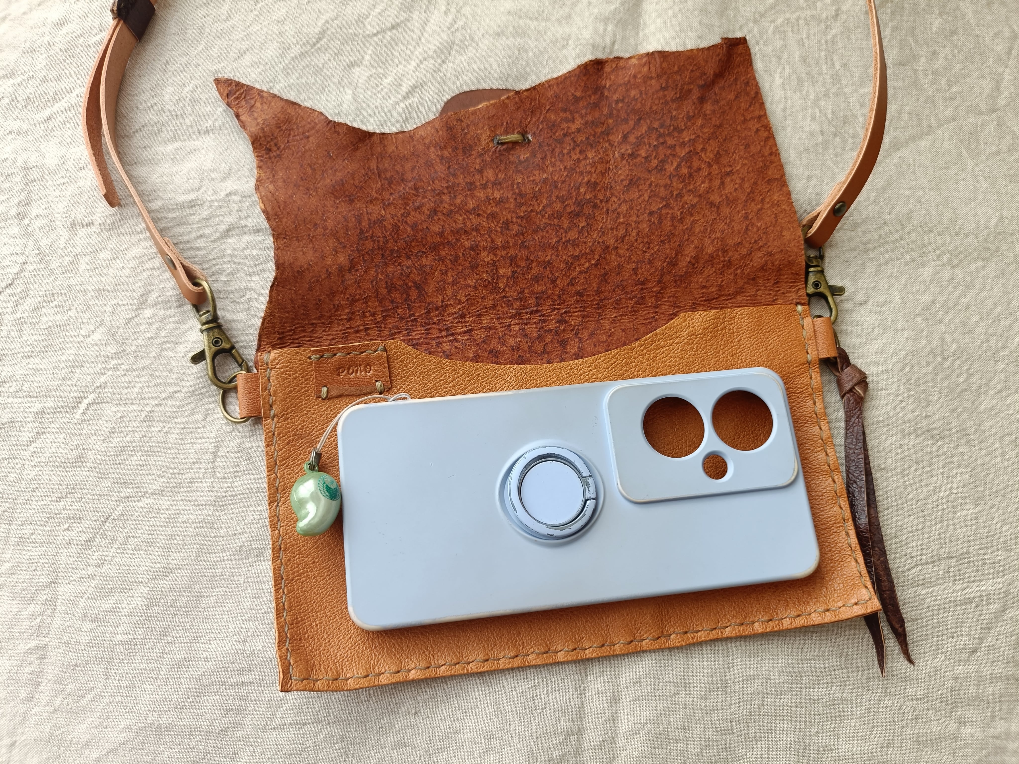 大きなボタン de スマホショルダー ポシェット 檜皮色 ピッグスキンレザー