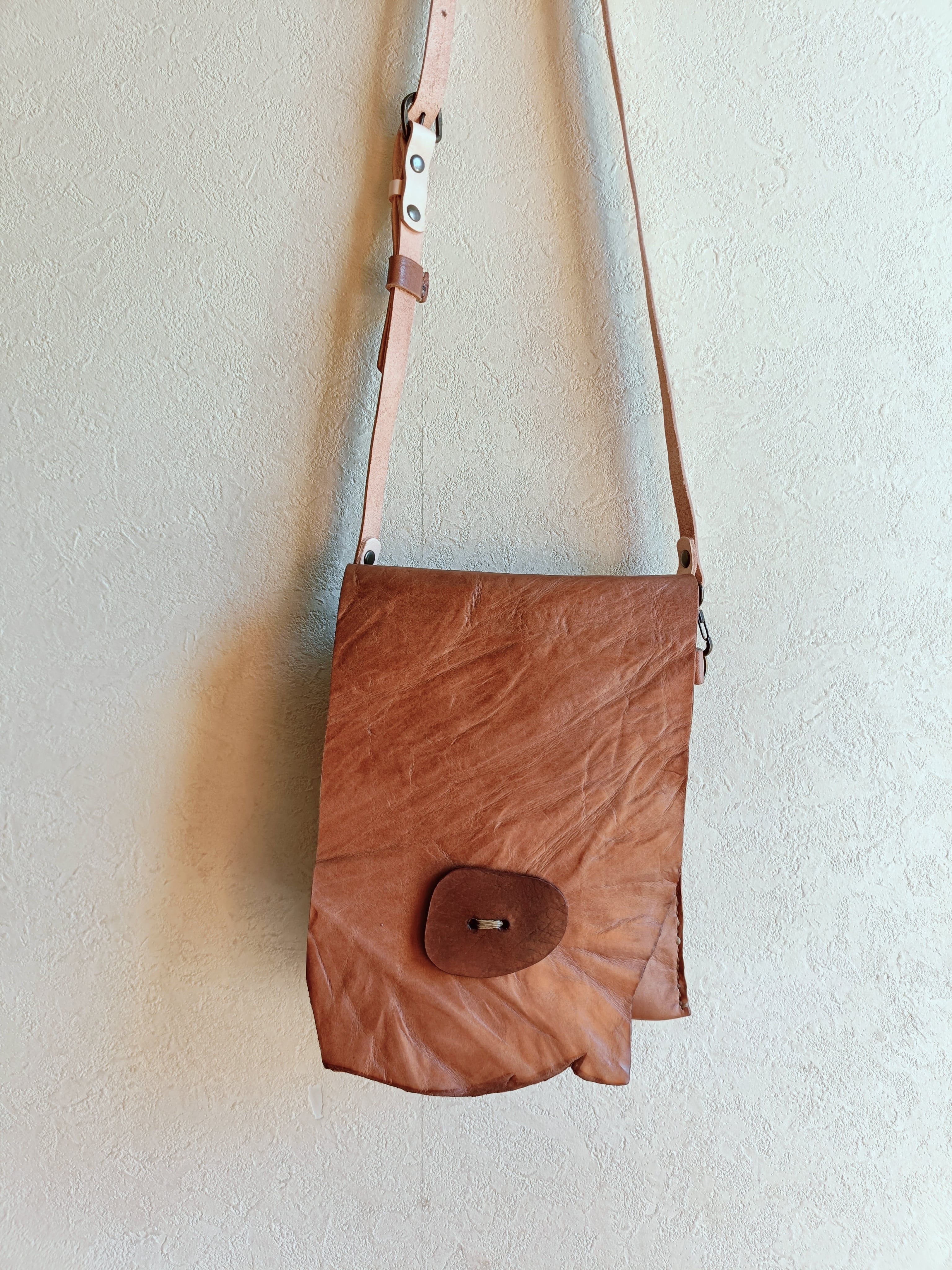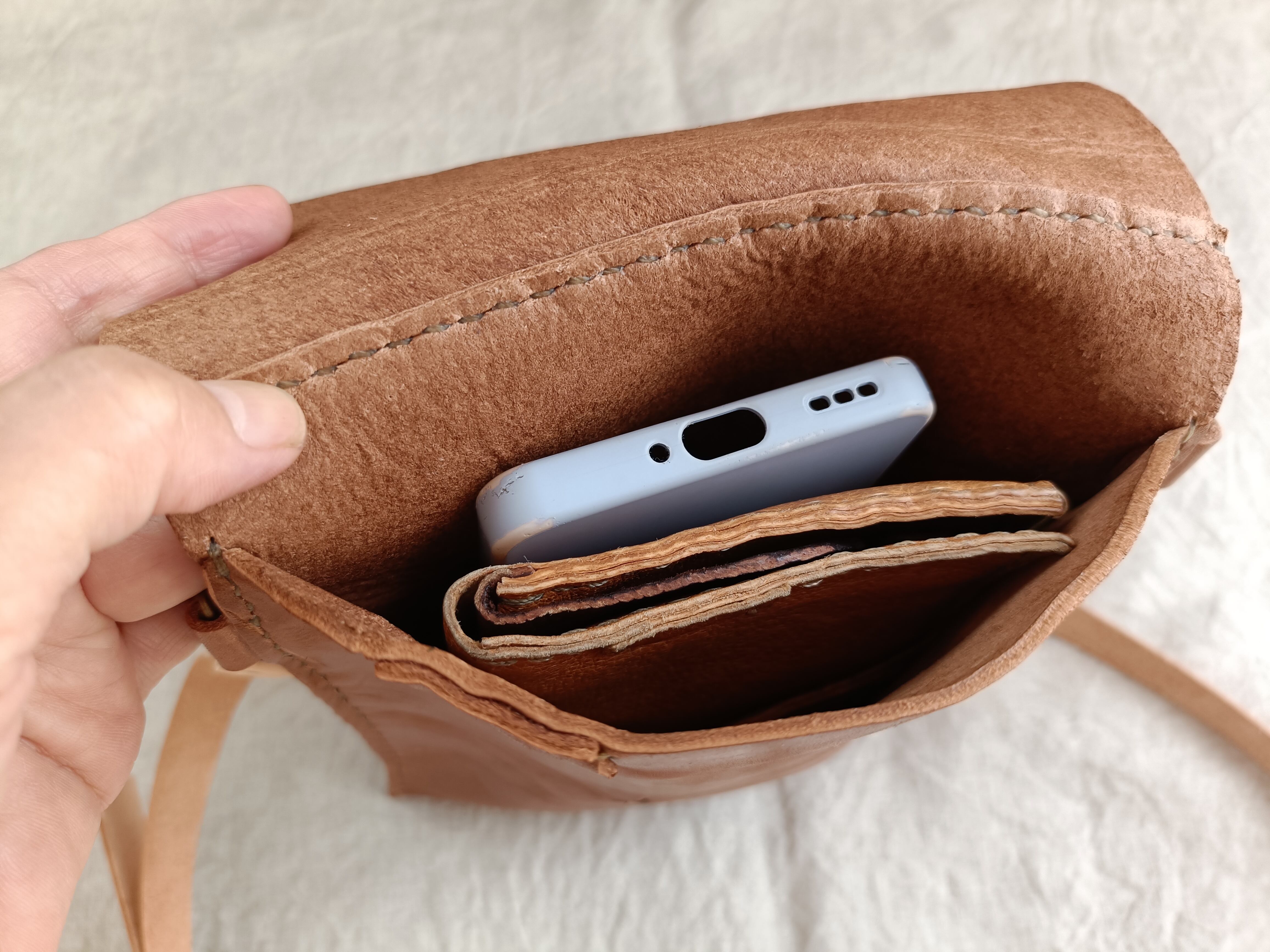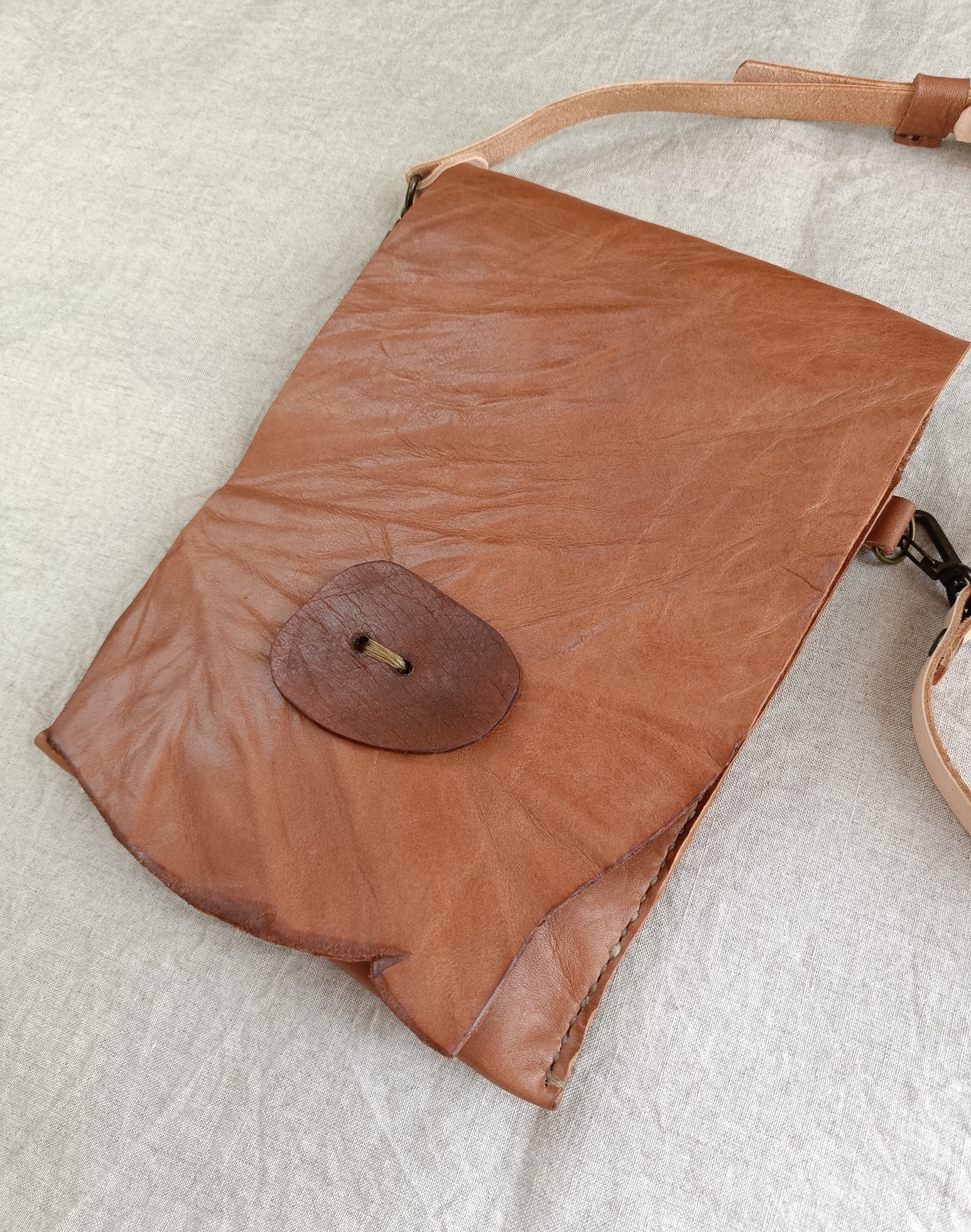 大きなボタン de ミニショルダー ポシェット 濃いベージュ オイルワックスレザー