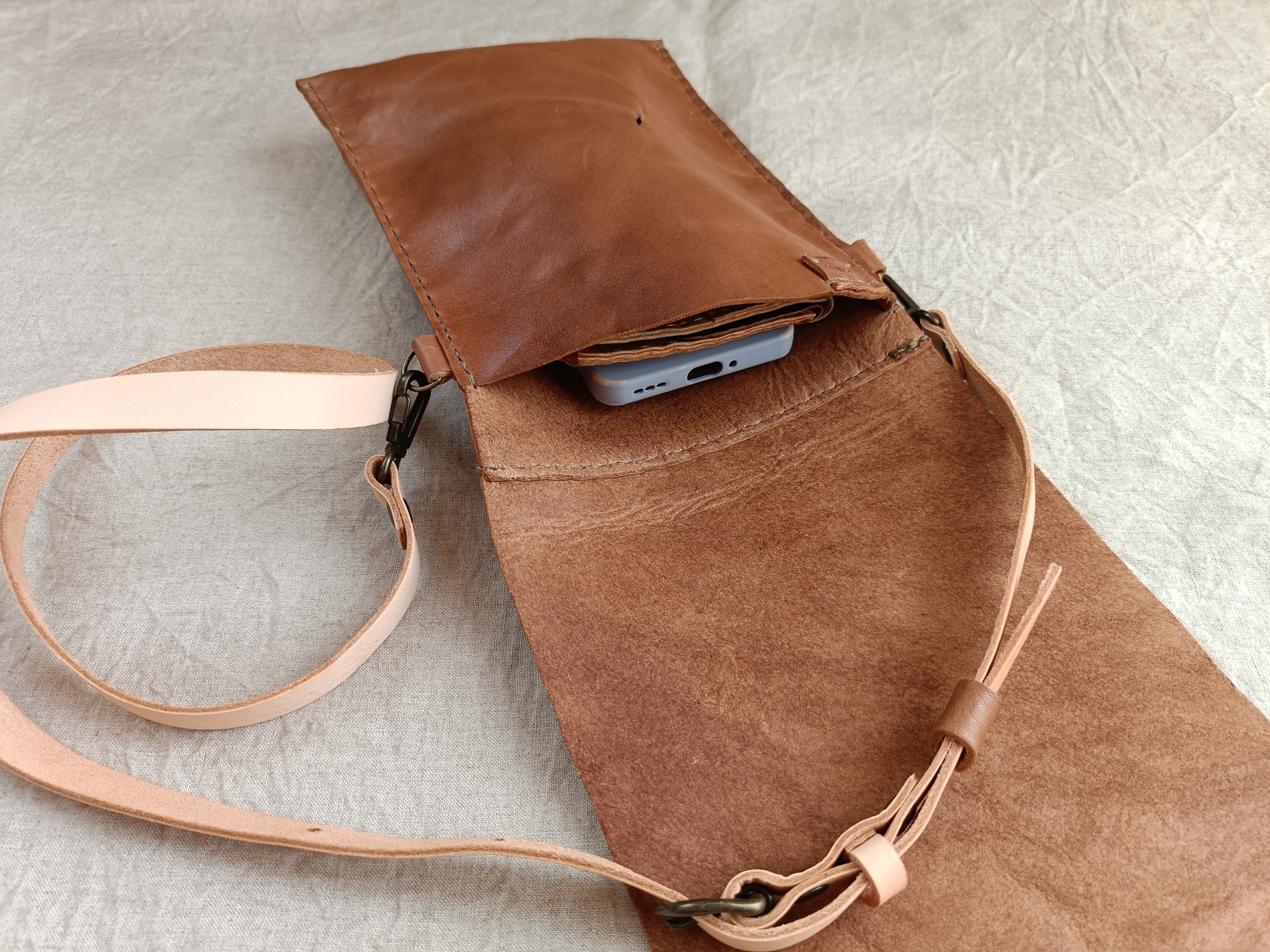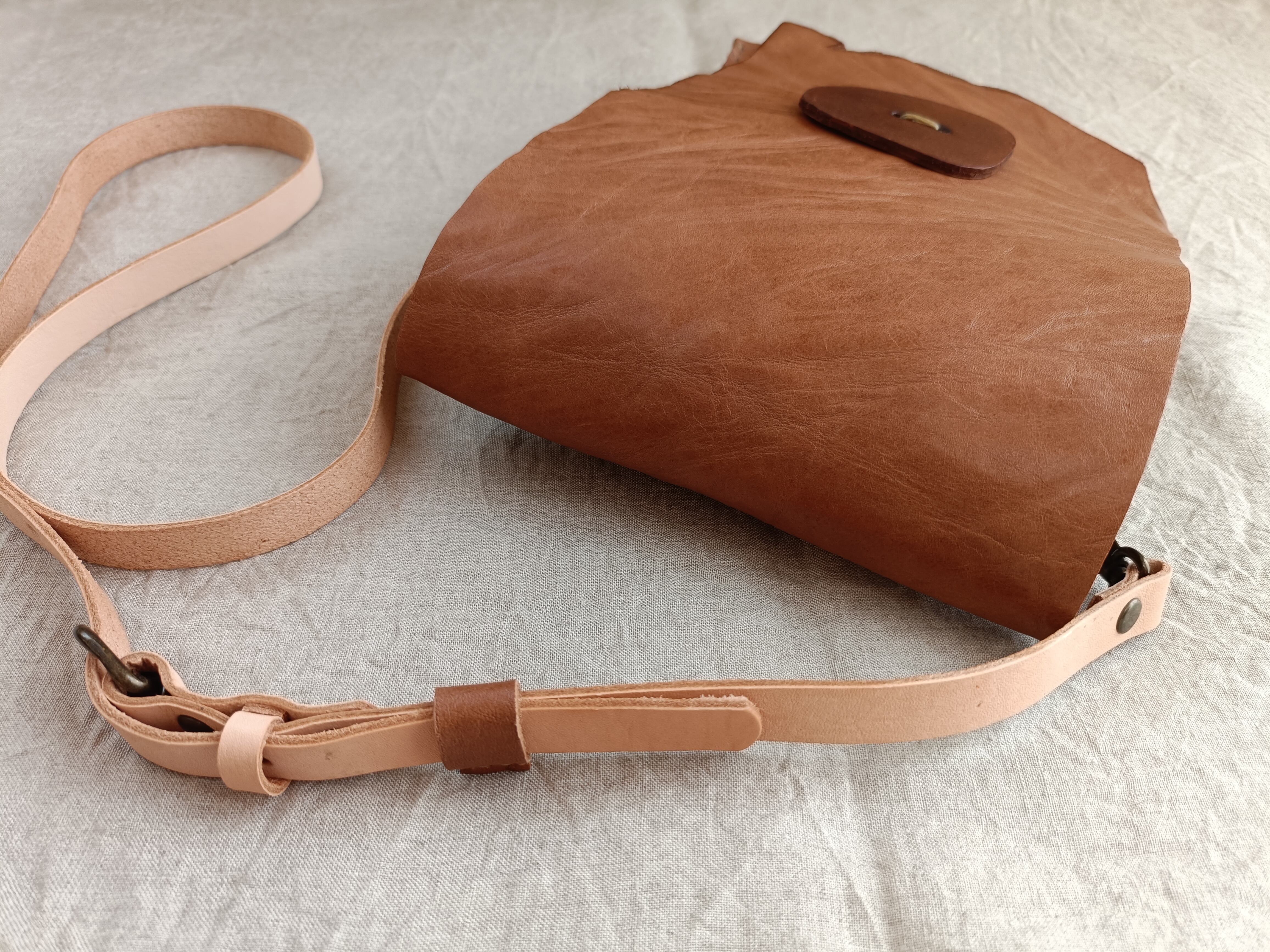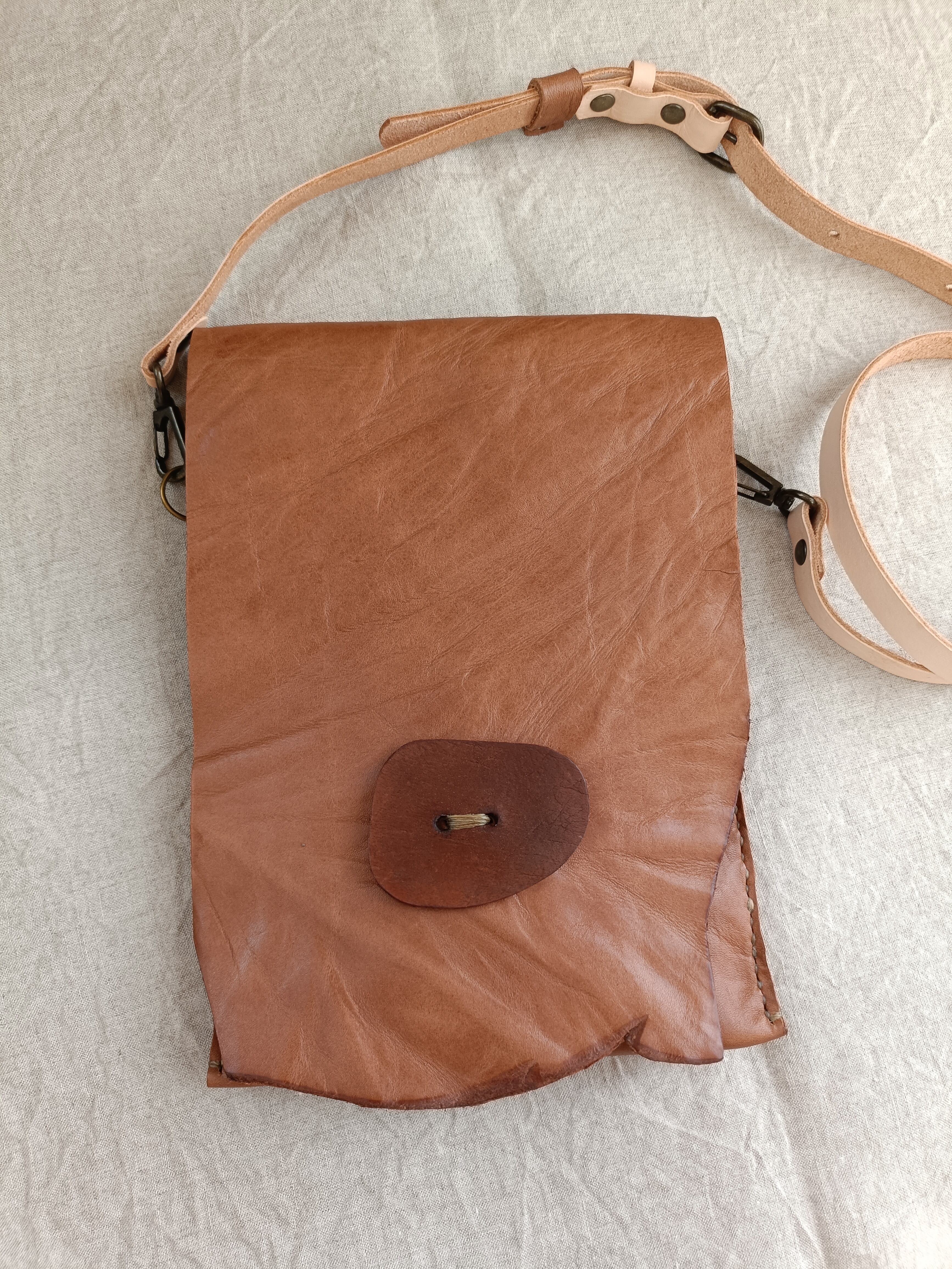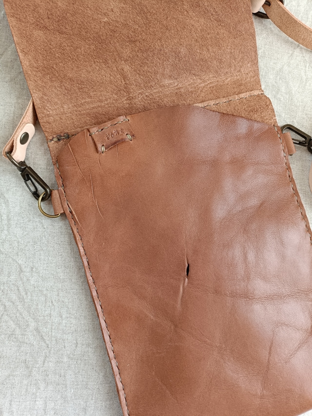 大きなボタン de ミニショルダー ポシェット 濃いベージュ オイルワックスレザー