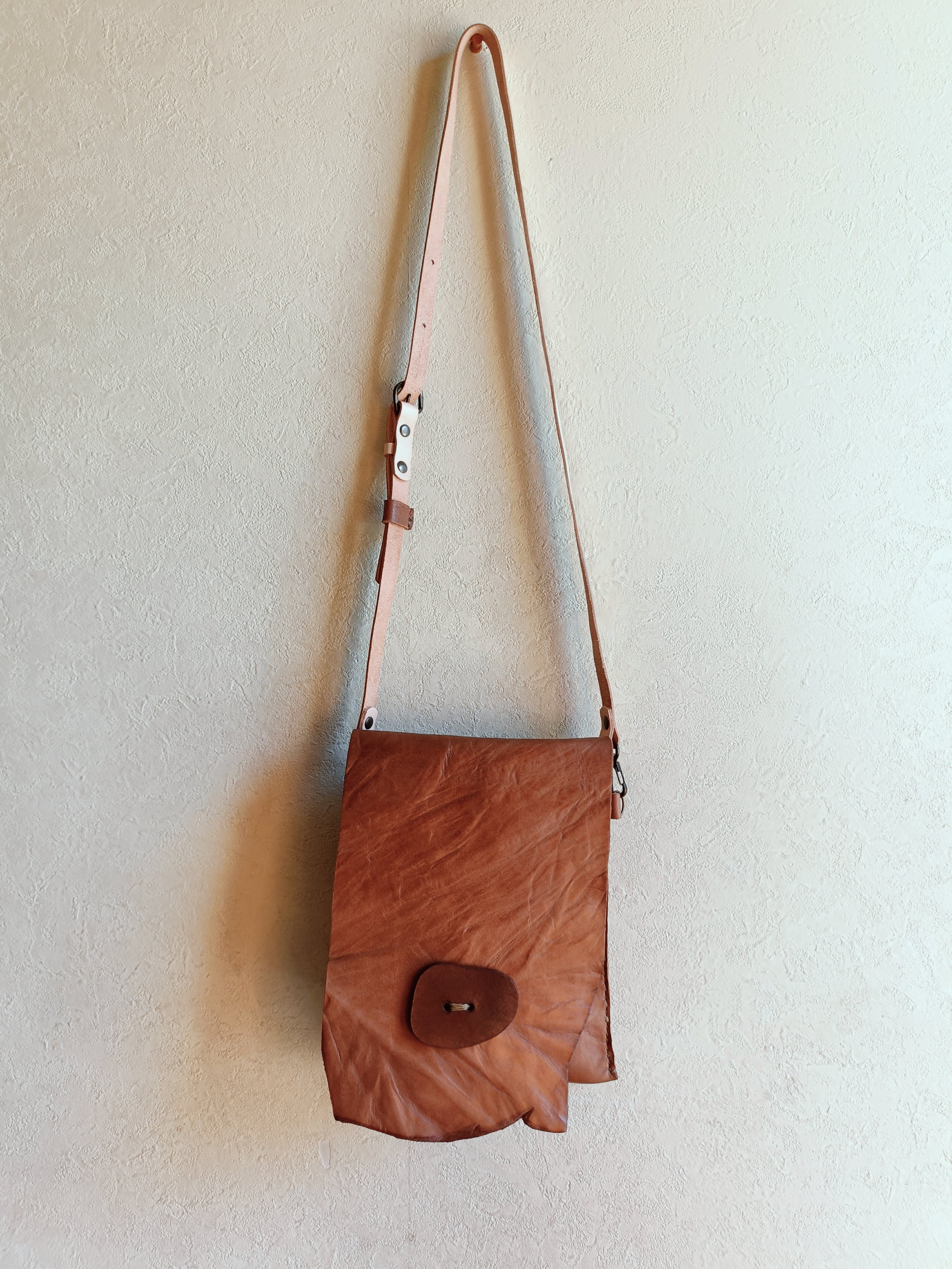 牛革。1枚1枚ほぼ手絞りによるランダムなヴィンテージ感のあるシワがあり、オイル効果により、伸縮性に富み、耐久性の高い素材です