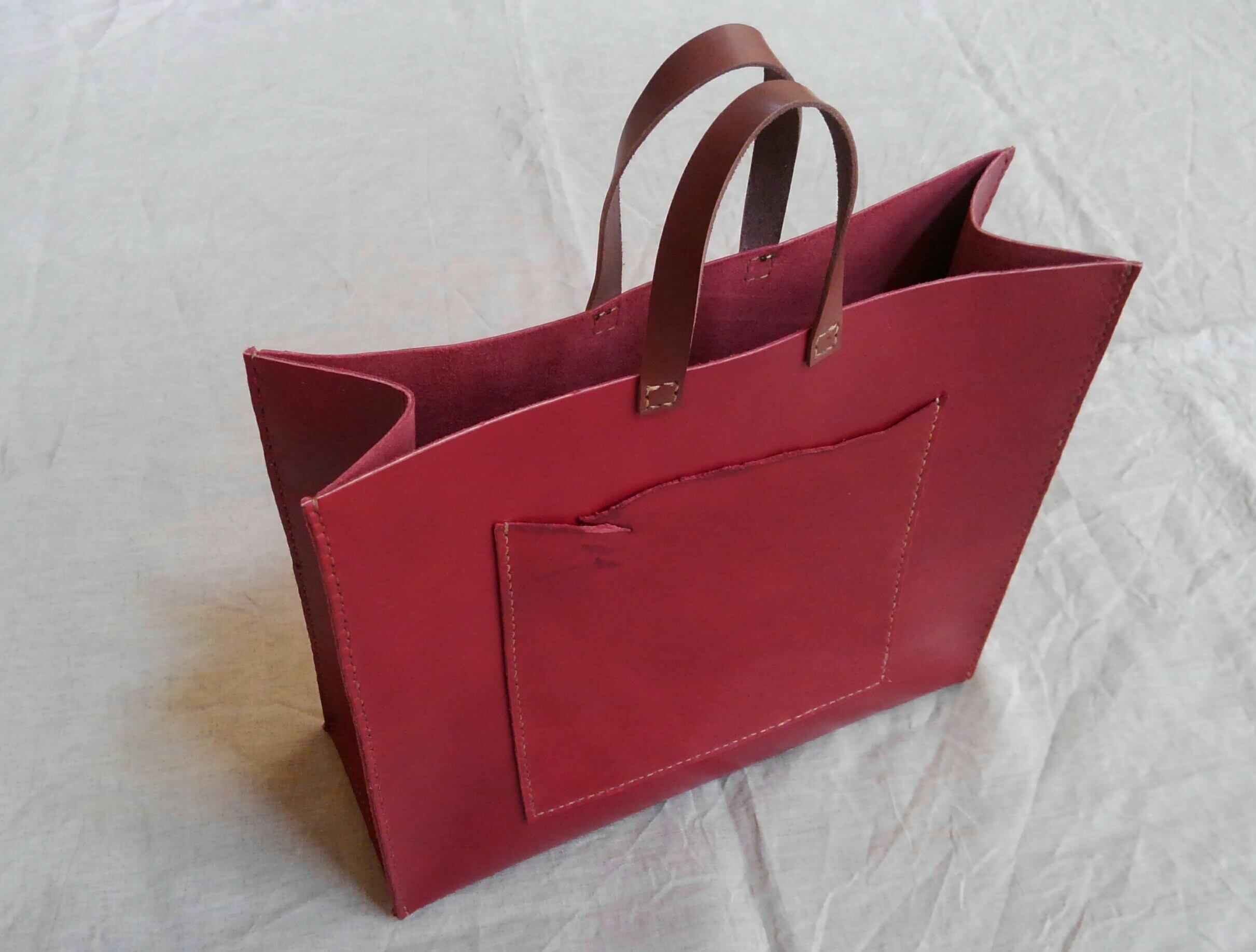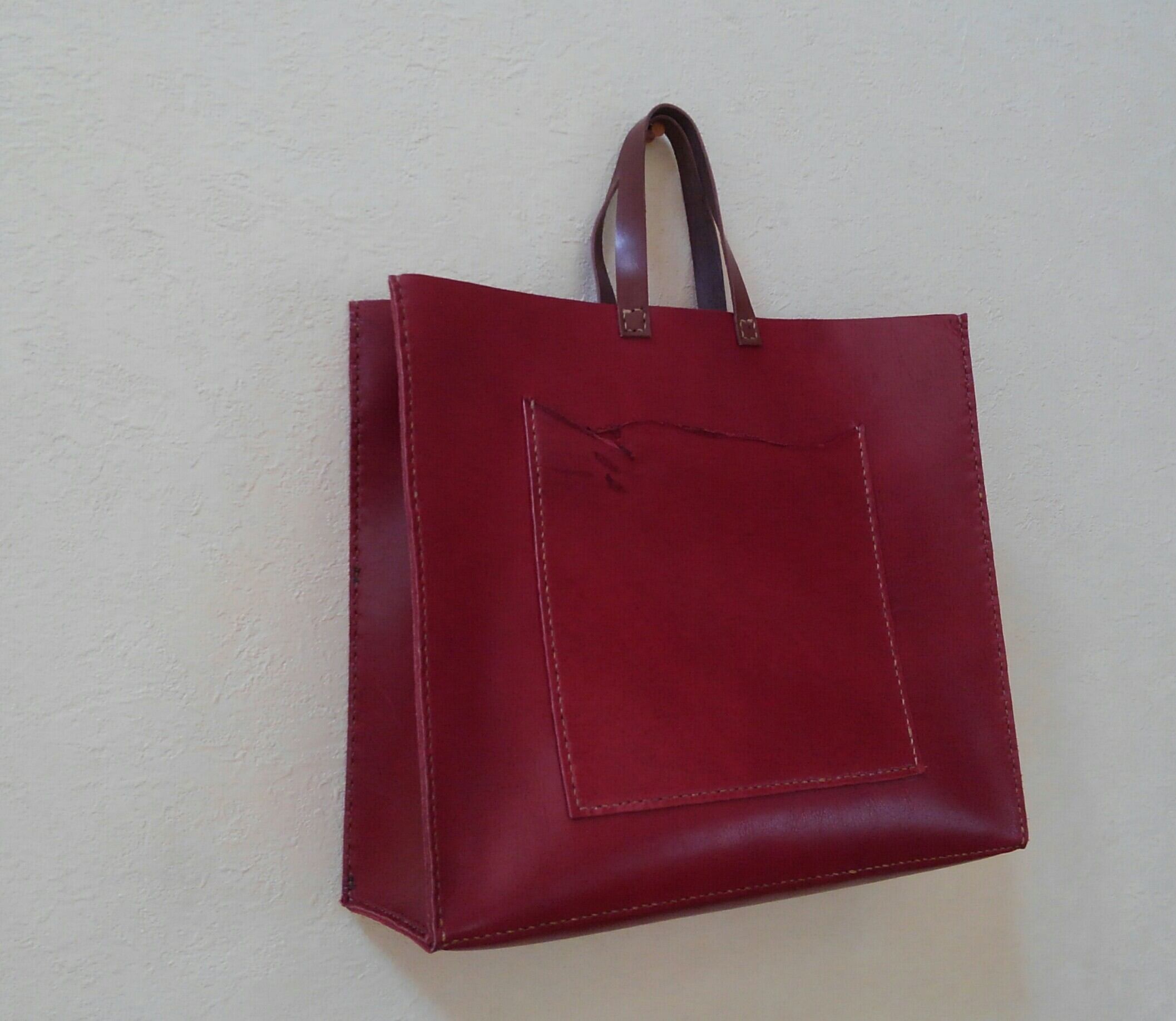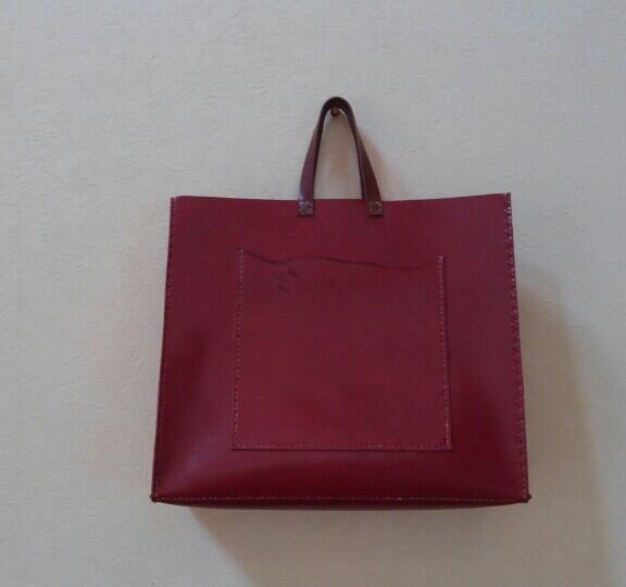 真四角なトートバッグ ワインレッド オイルバケッタレザー