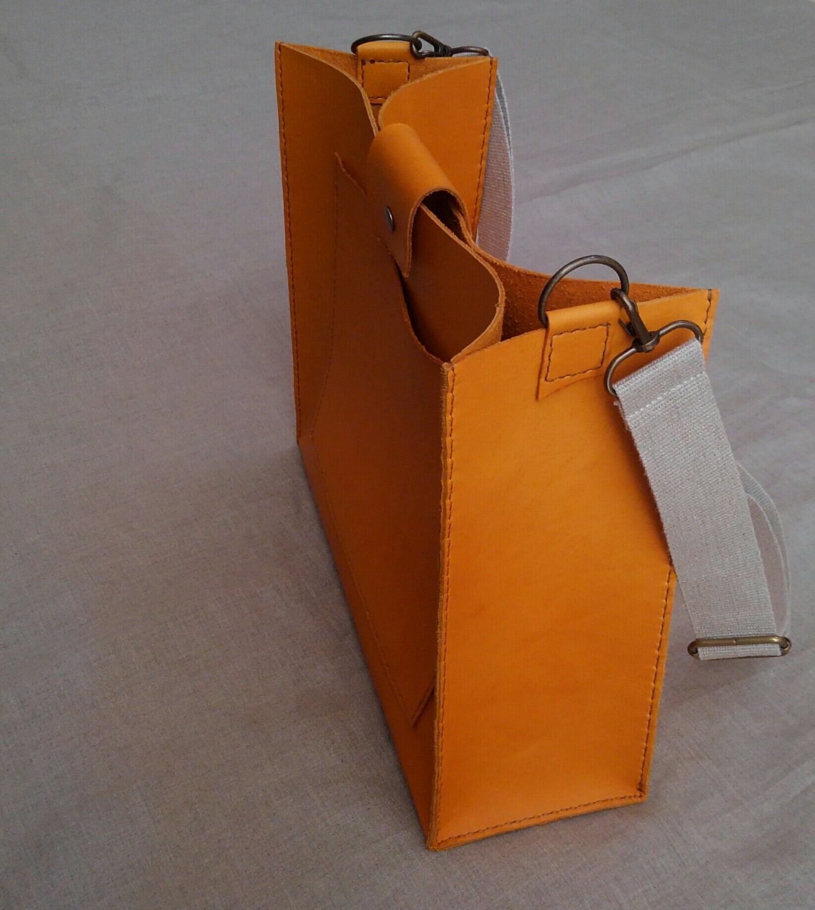 A4クリアファイルも縦に入る、四角いショルダーバッグです。