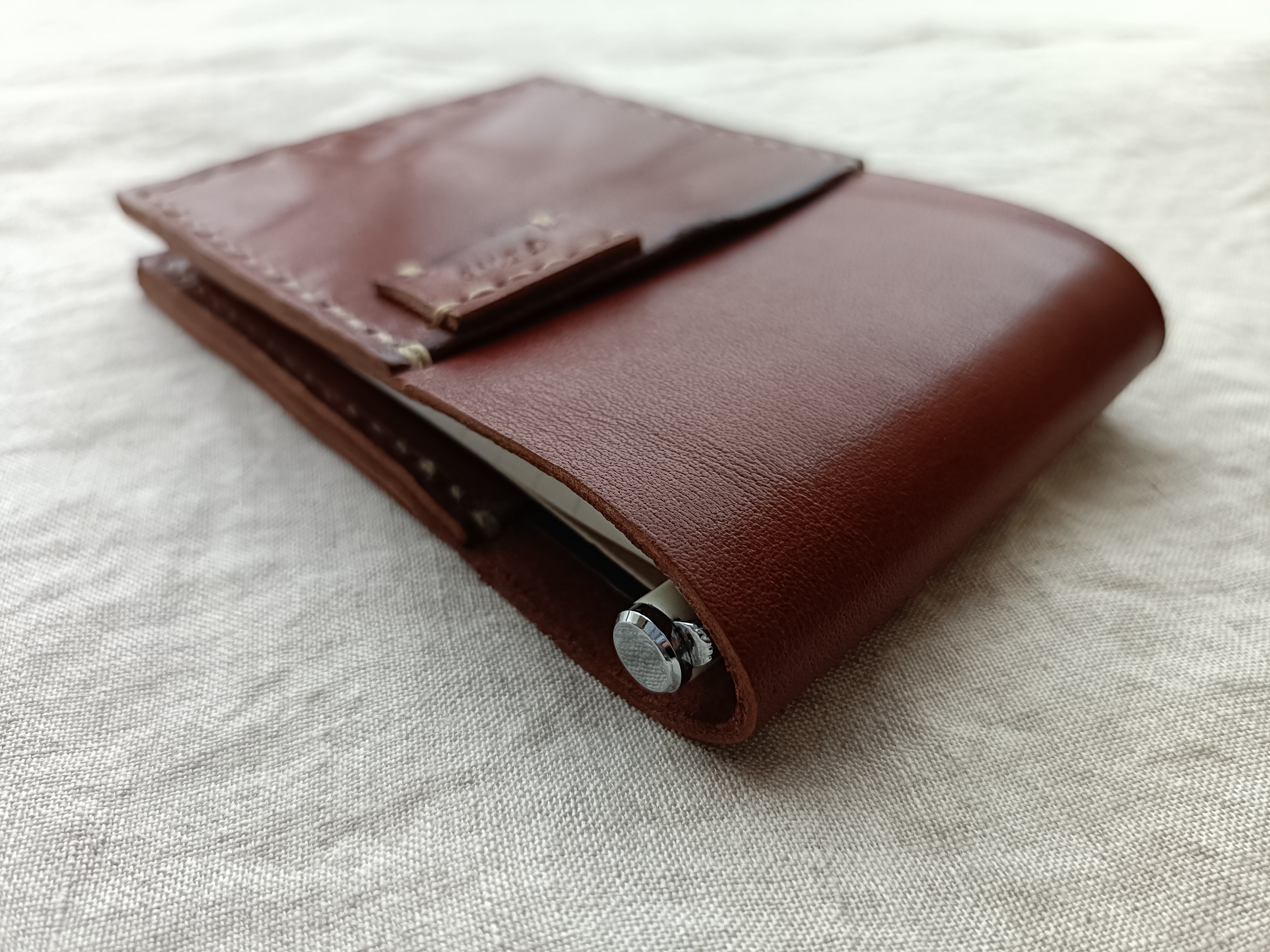 【オーダー品】メモ帳カバーケース 濃いブラウン オイルワックスレザー