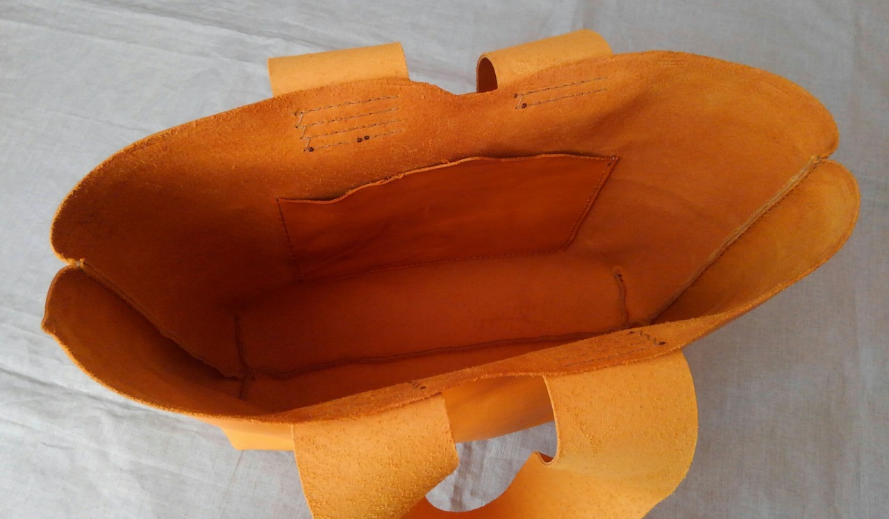持ち手は、最初は硬めですが、お使いいただくうちにどんどん馴染み、くしゃっと柔らかくなっていきます