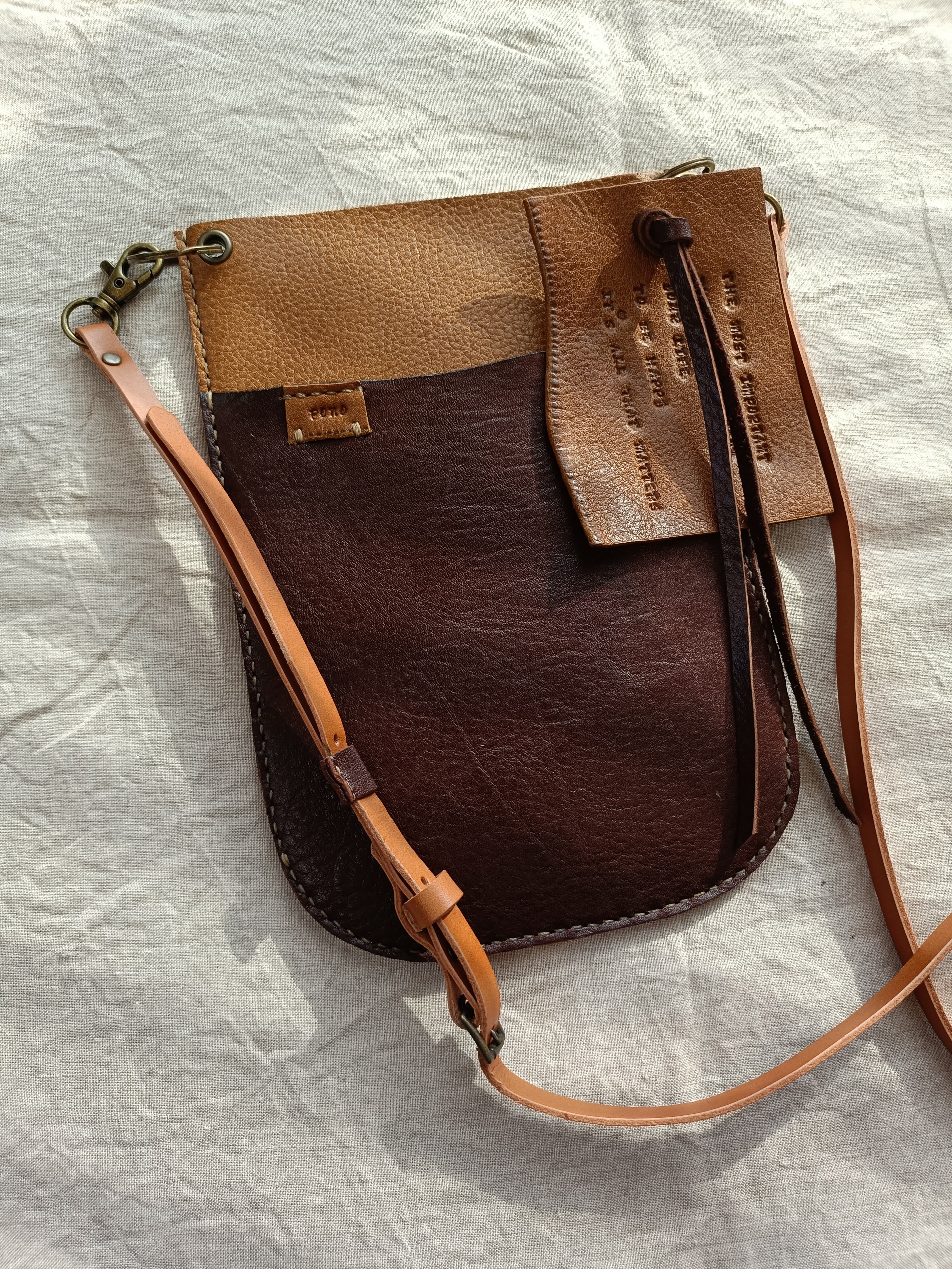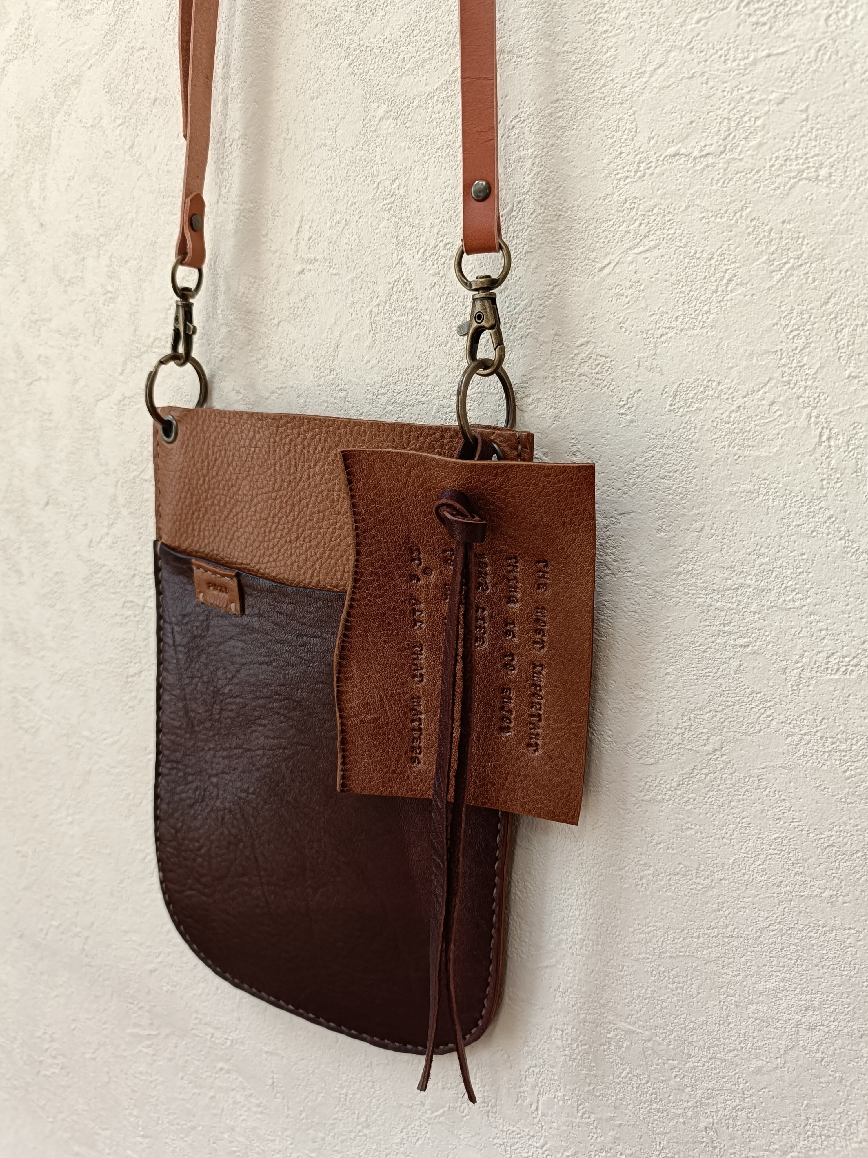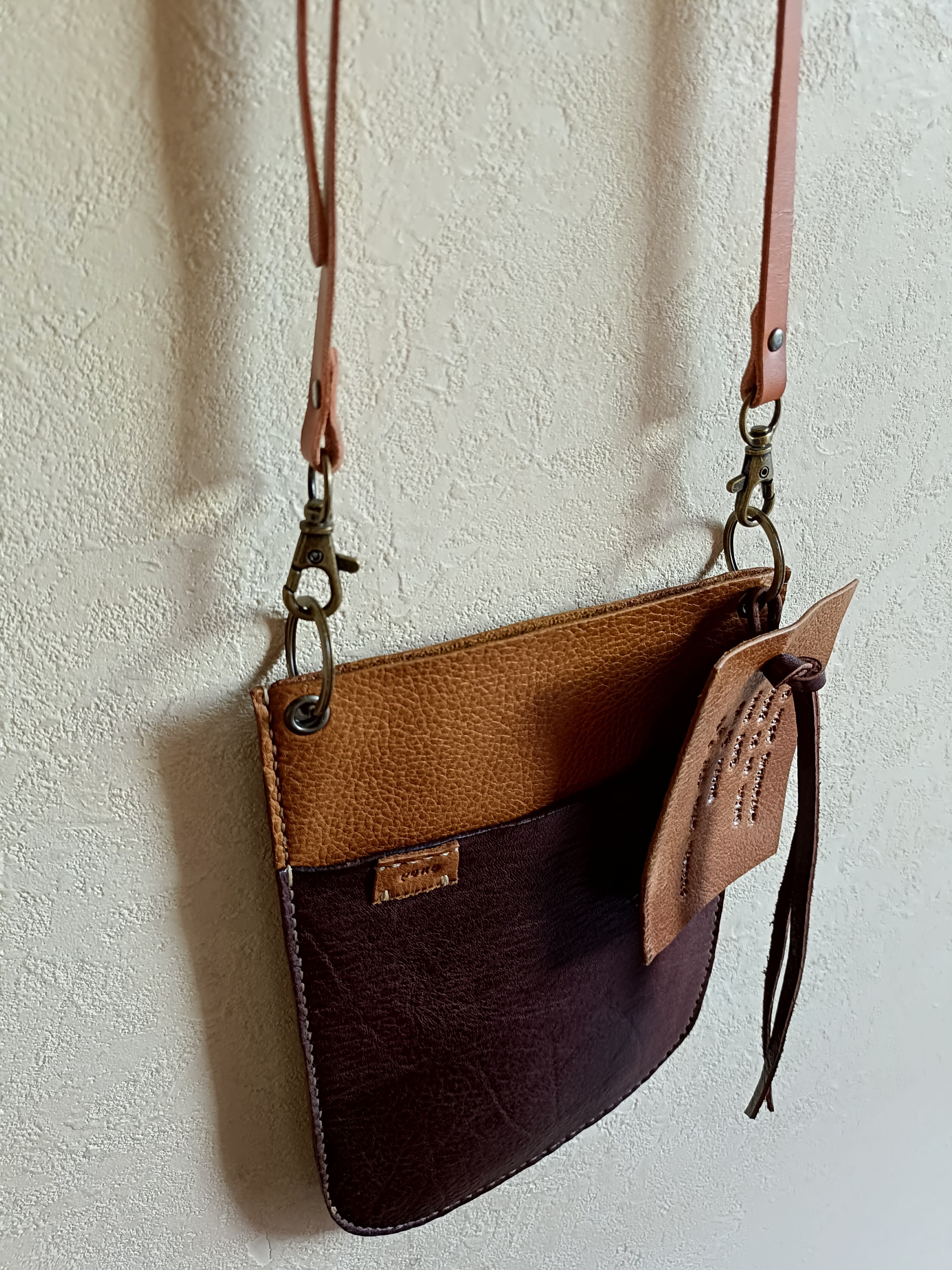 ポシェット マスタード✗ダークブラウン オイルシュリンクレザー