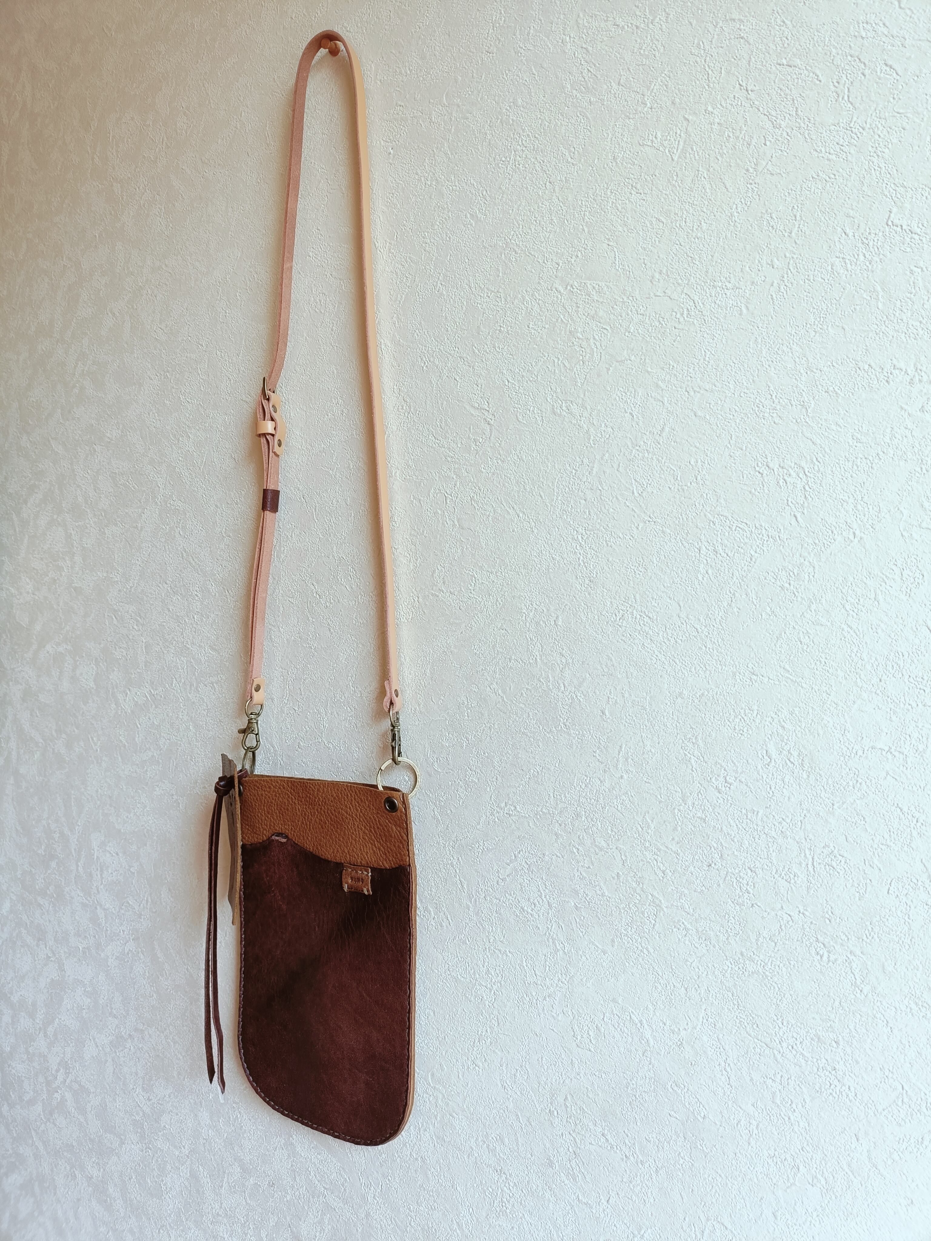 ポシェット マスタード✗ダークブラウン オイルシュリンクレザー