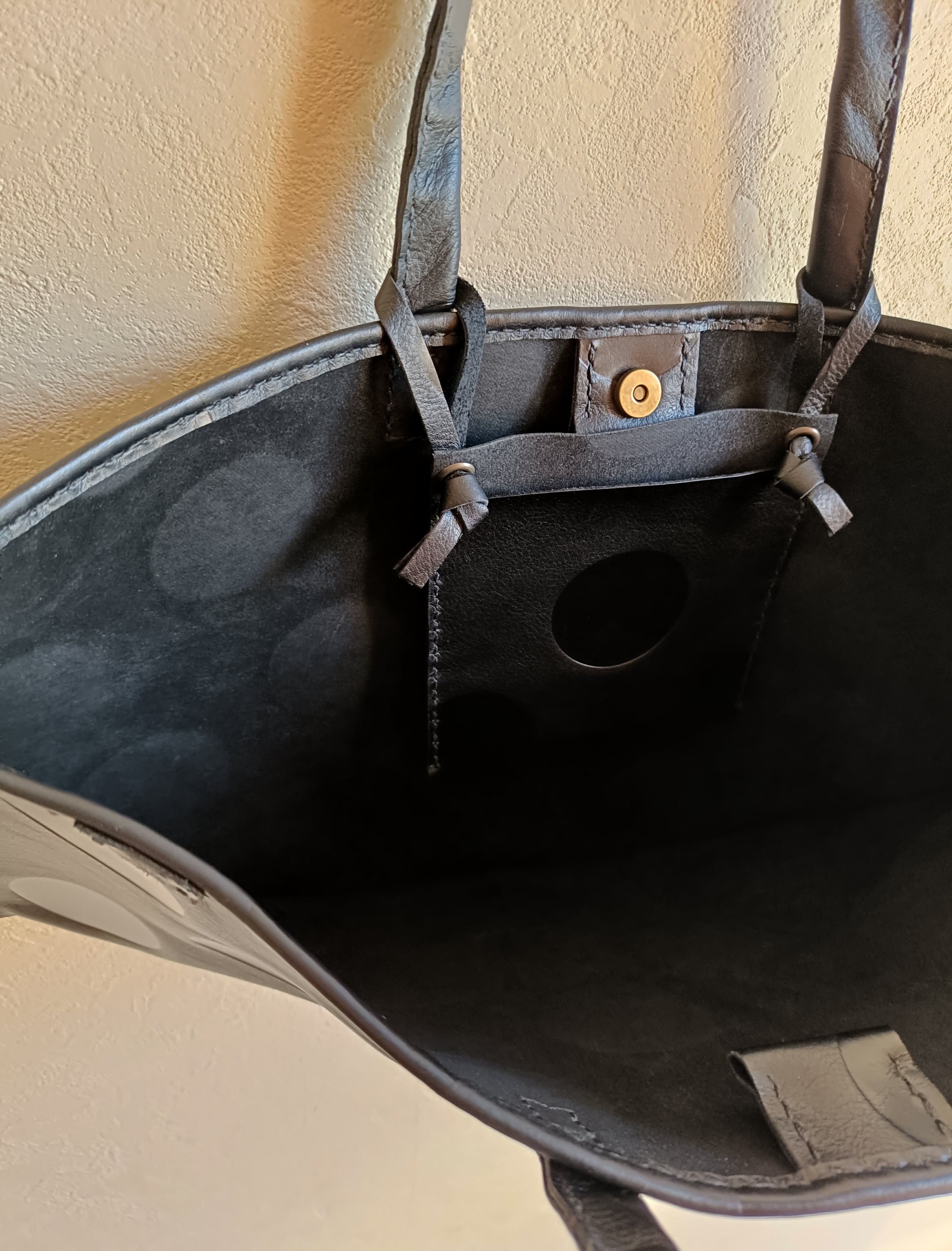 お荷物を入れると、量によってぷっくりまぁるくなり自然なマチができます