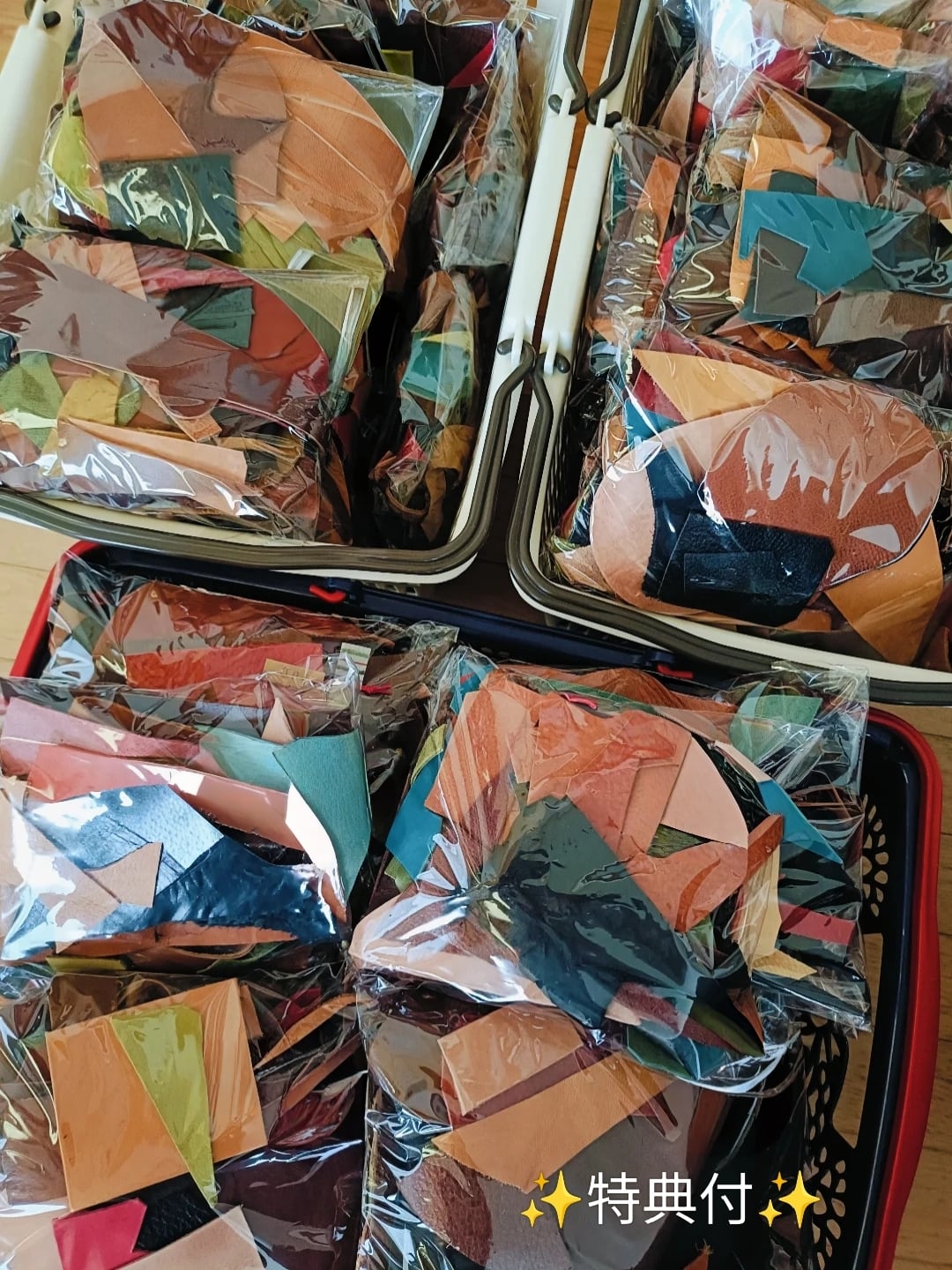 ​1点お買い上げにつき、さらに小さな革をカラフルに詰めた『ミニハギレセット』を1点プレゼントいたします