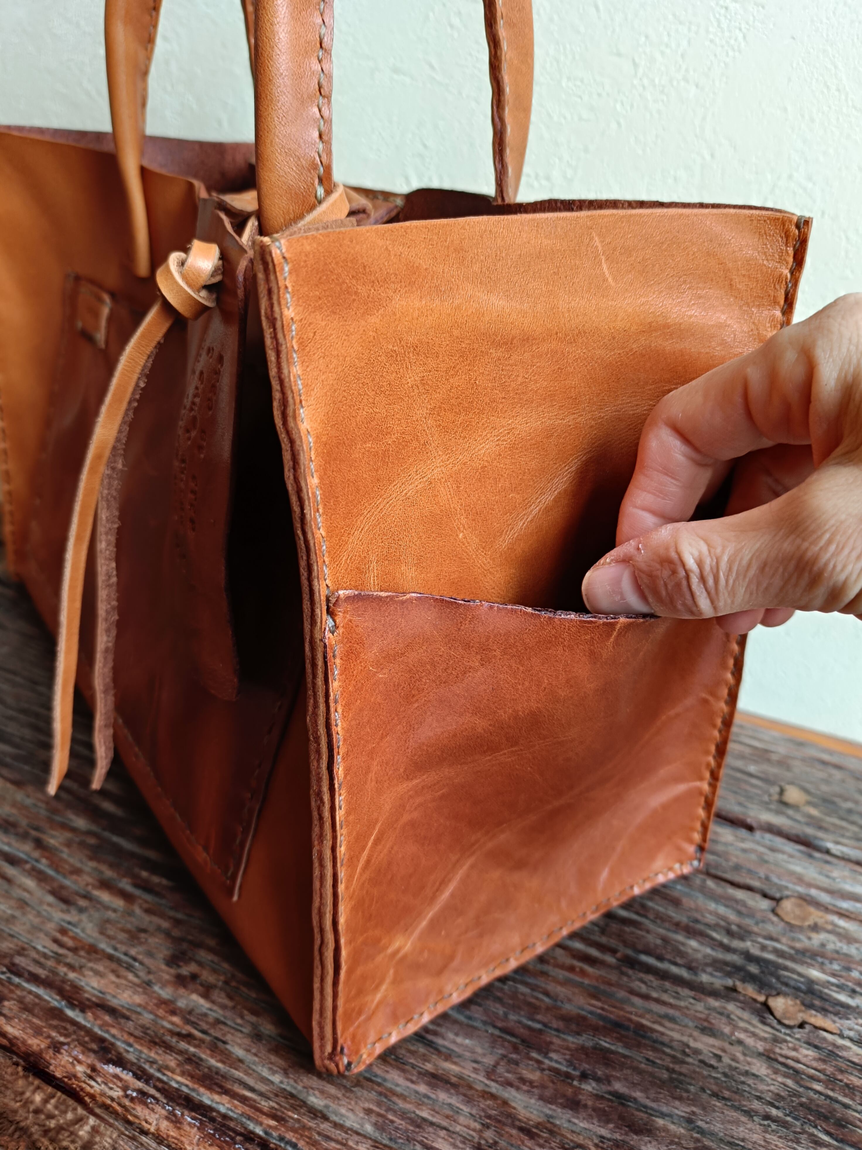 【オーダー品】square tote ライトブラウン オイルワックスレザー