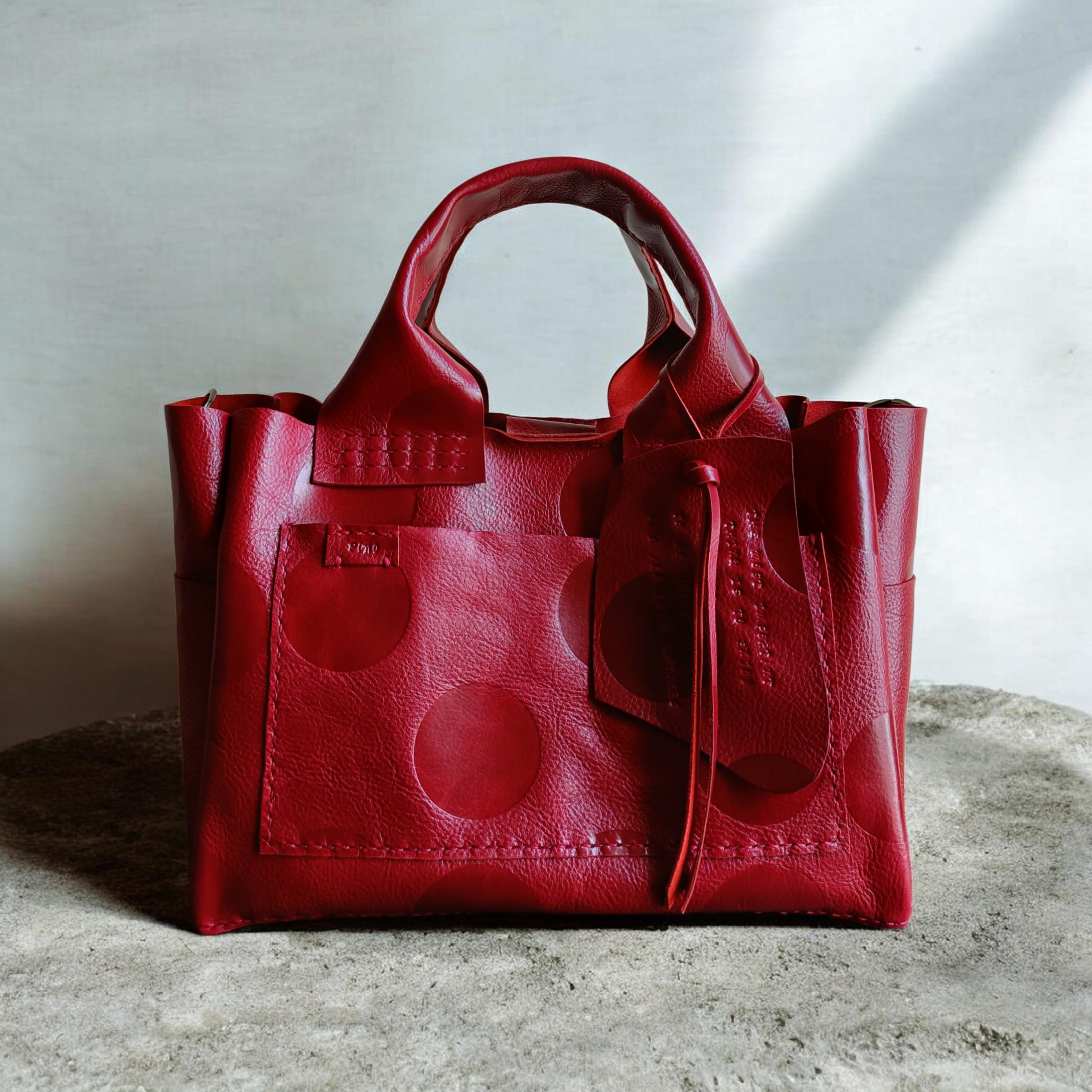 square tote 赤 牛キップレザー