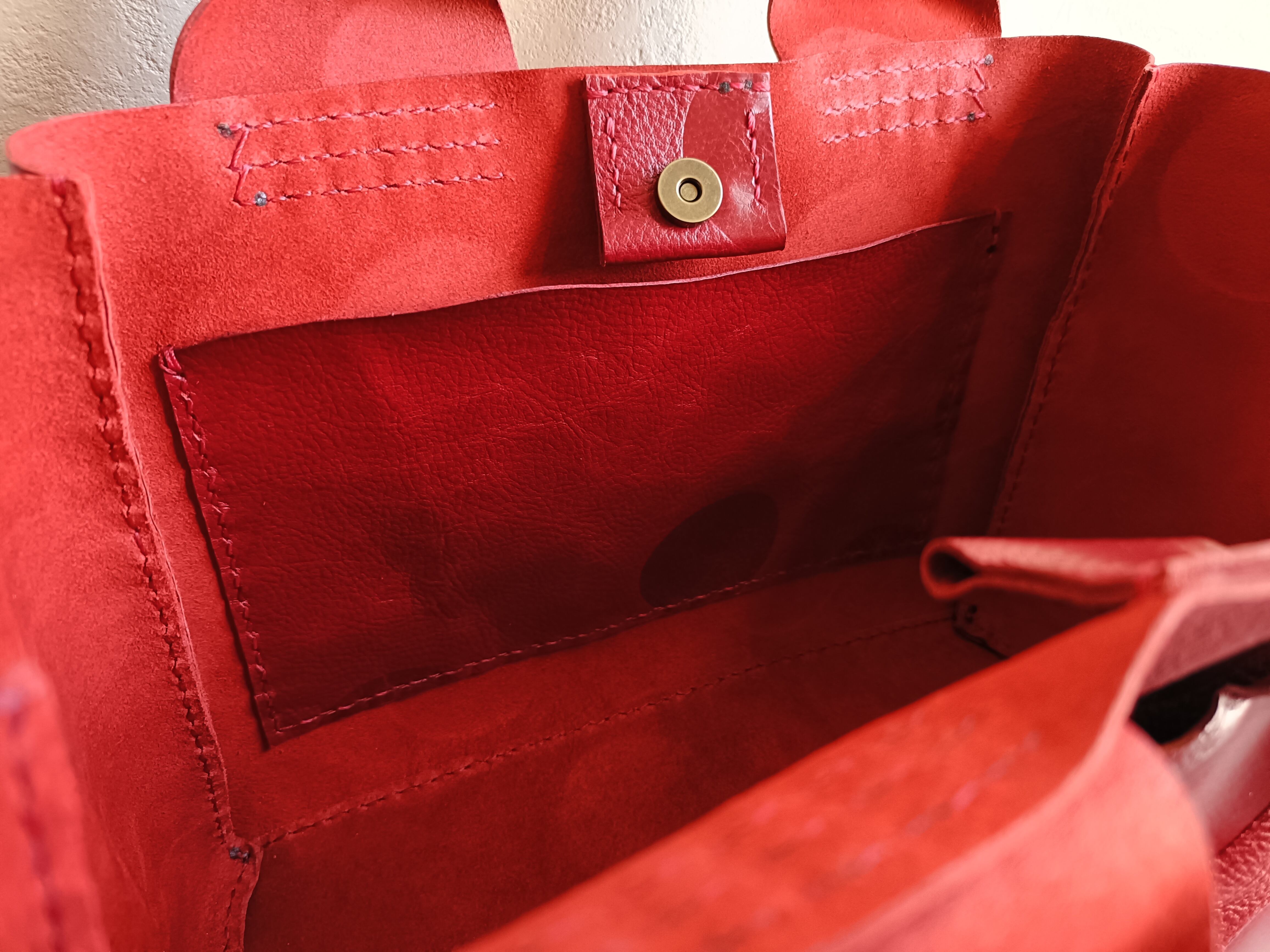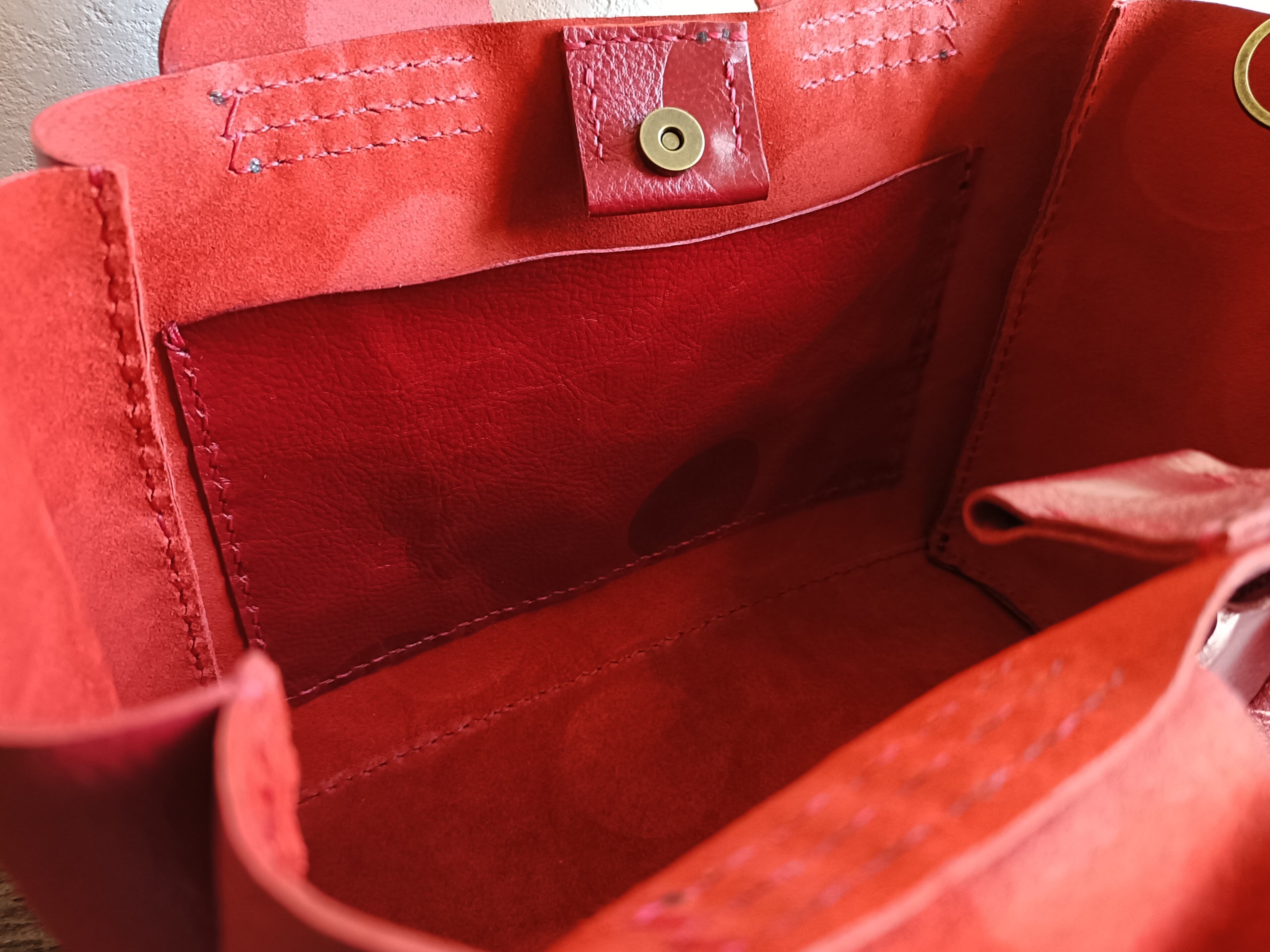 ◎開口口のマグネットボタンは、お荷物がいっぱいでも留めやすく外れにくい仕様です