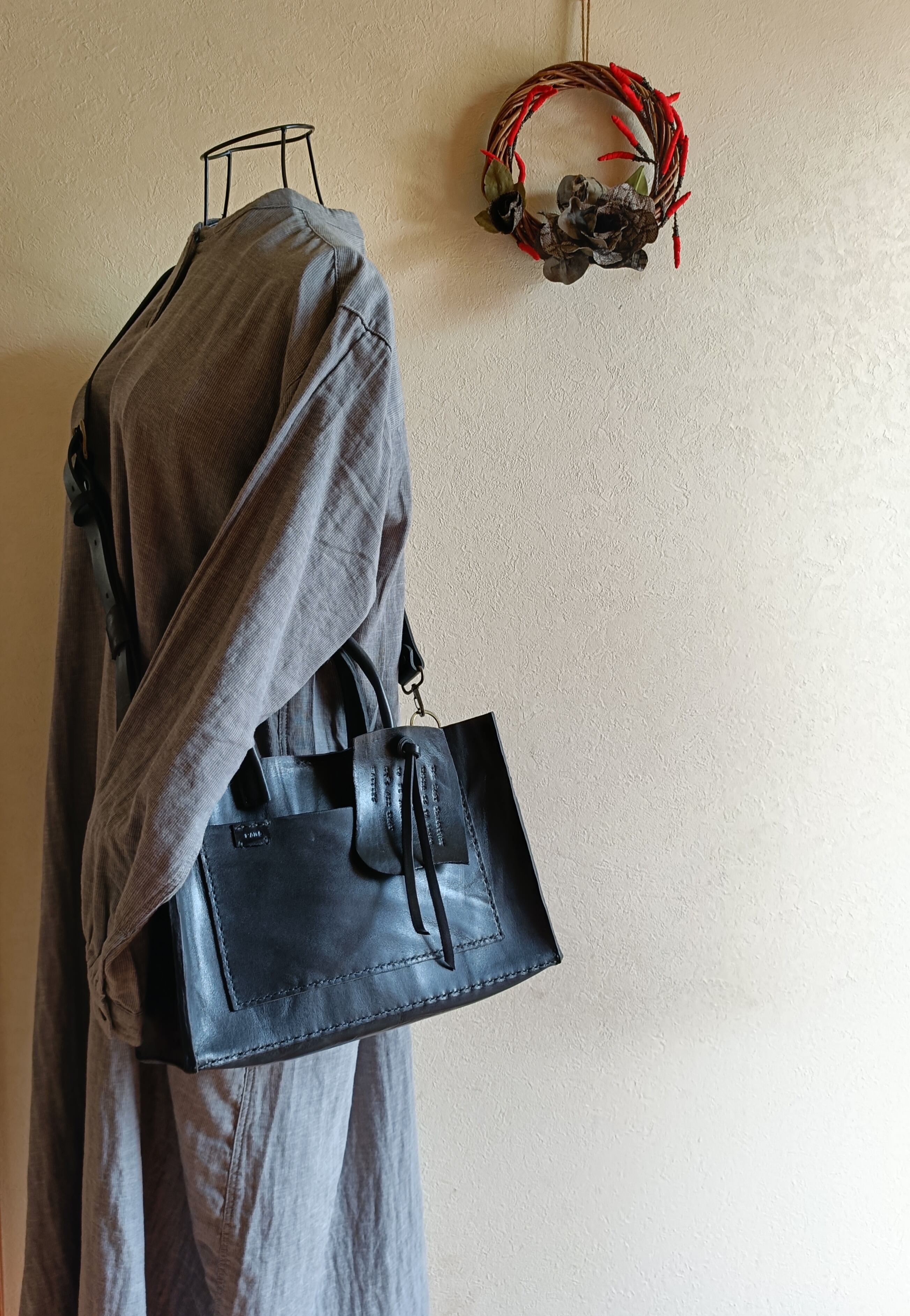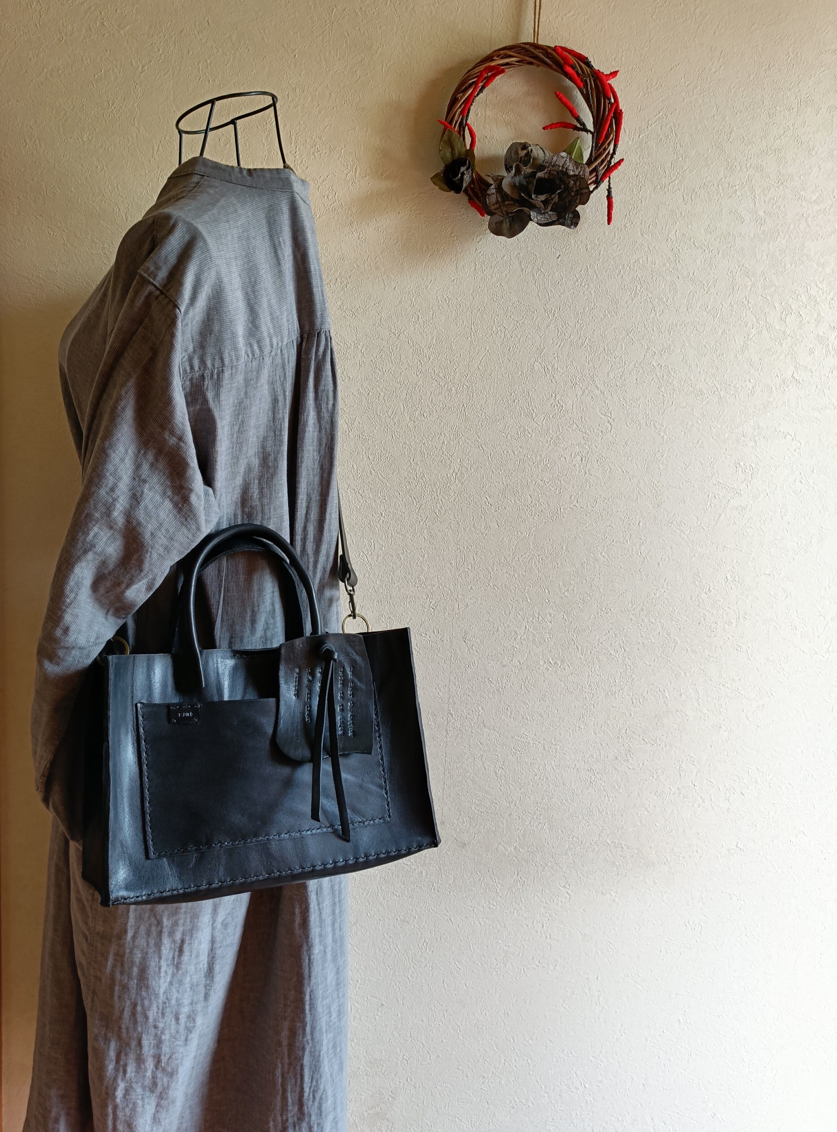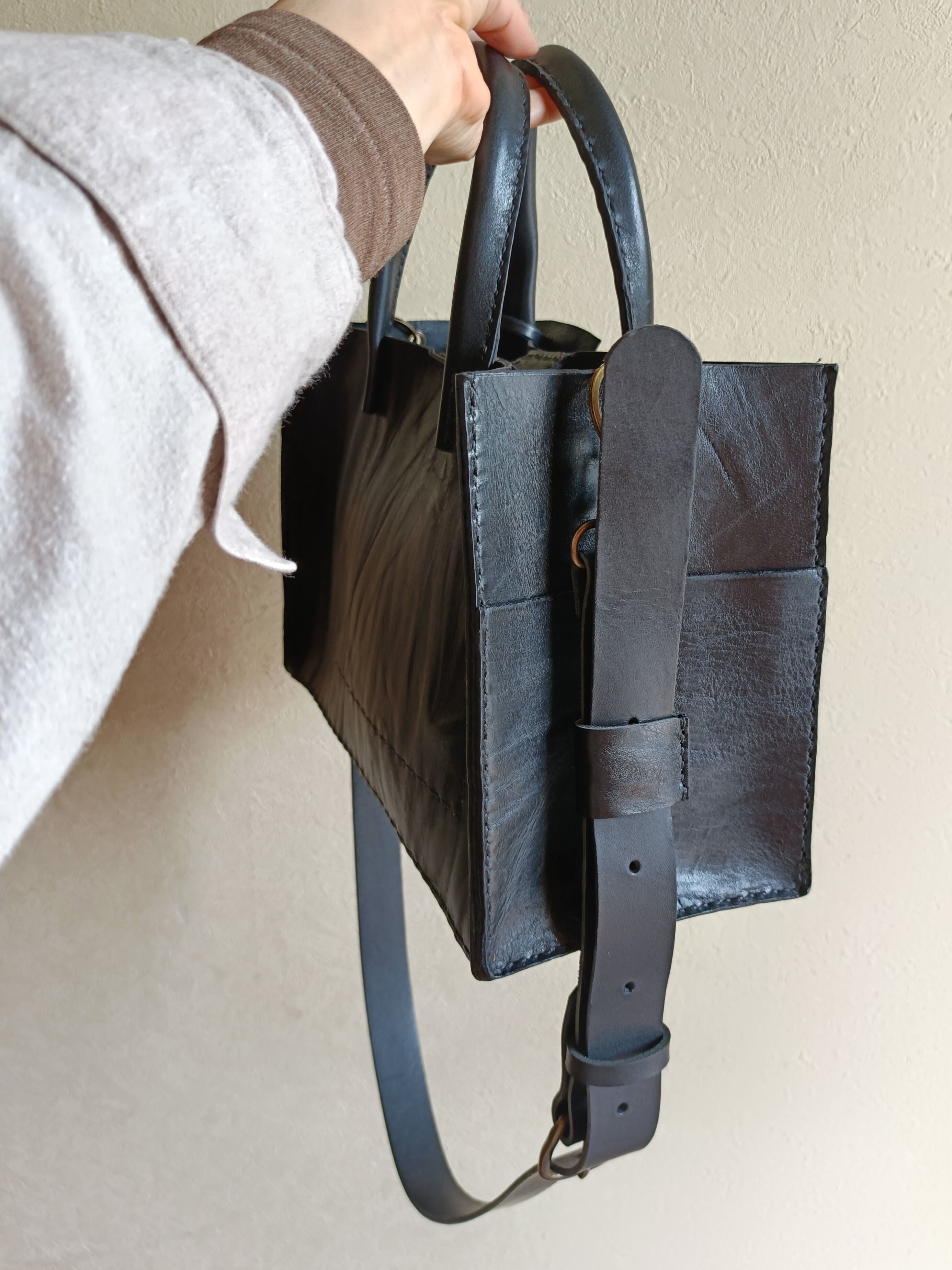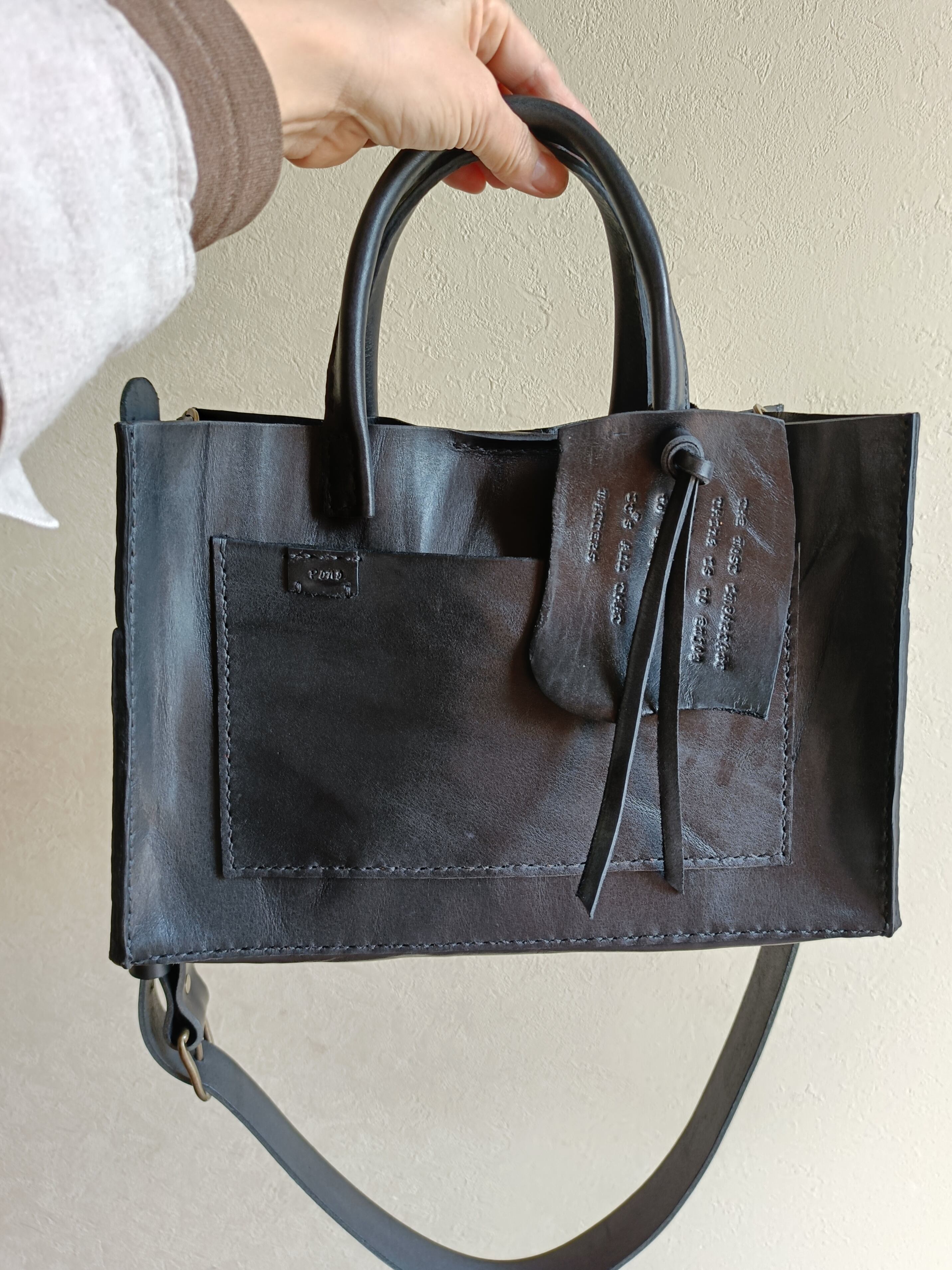 【М様オーダー品】square tote shoulder 黒 オイルワックスレザー