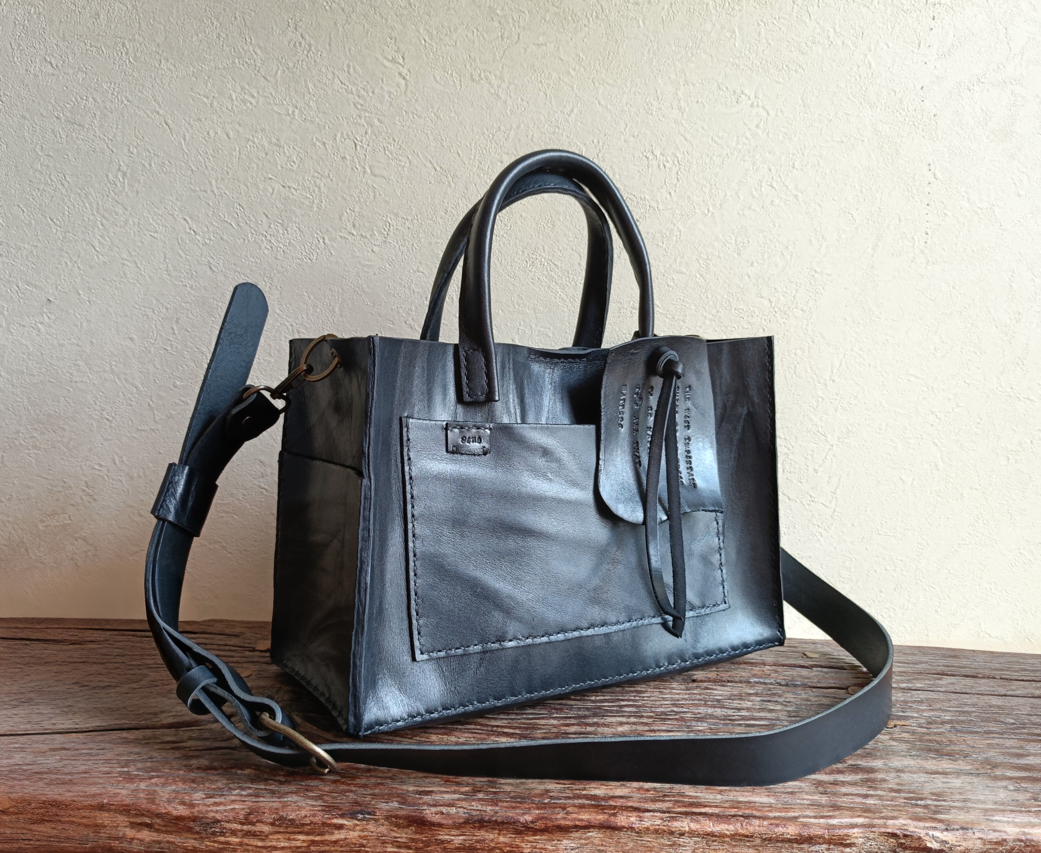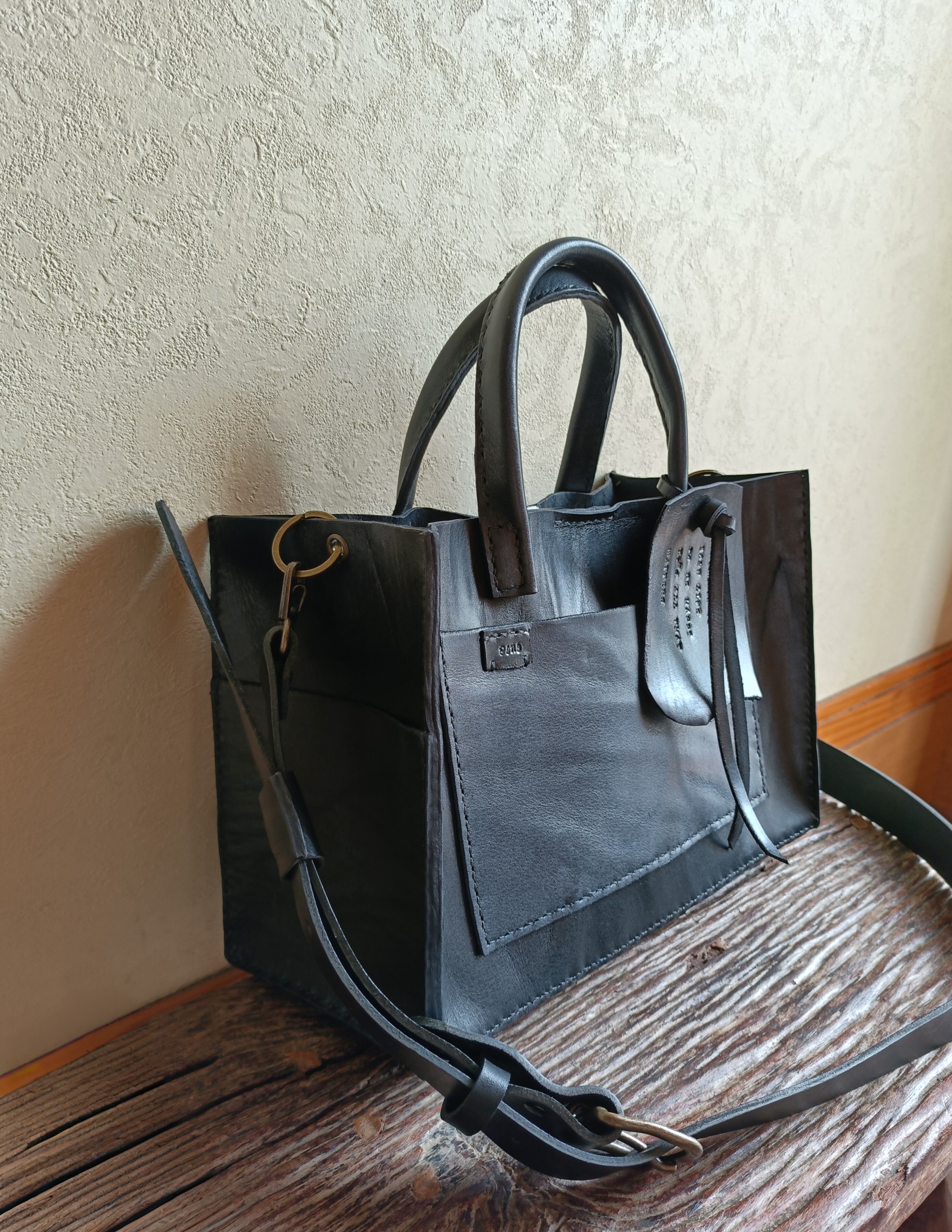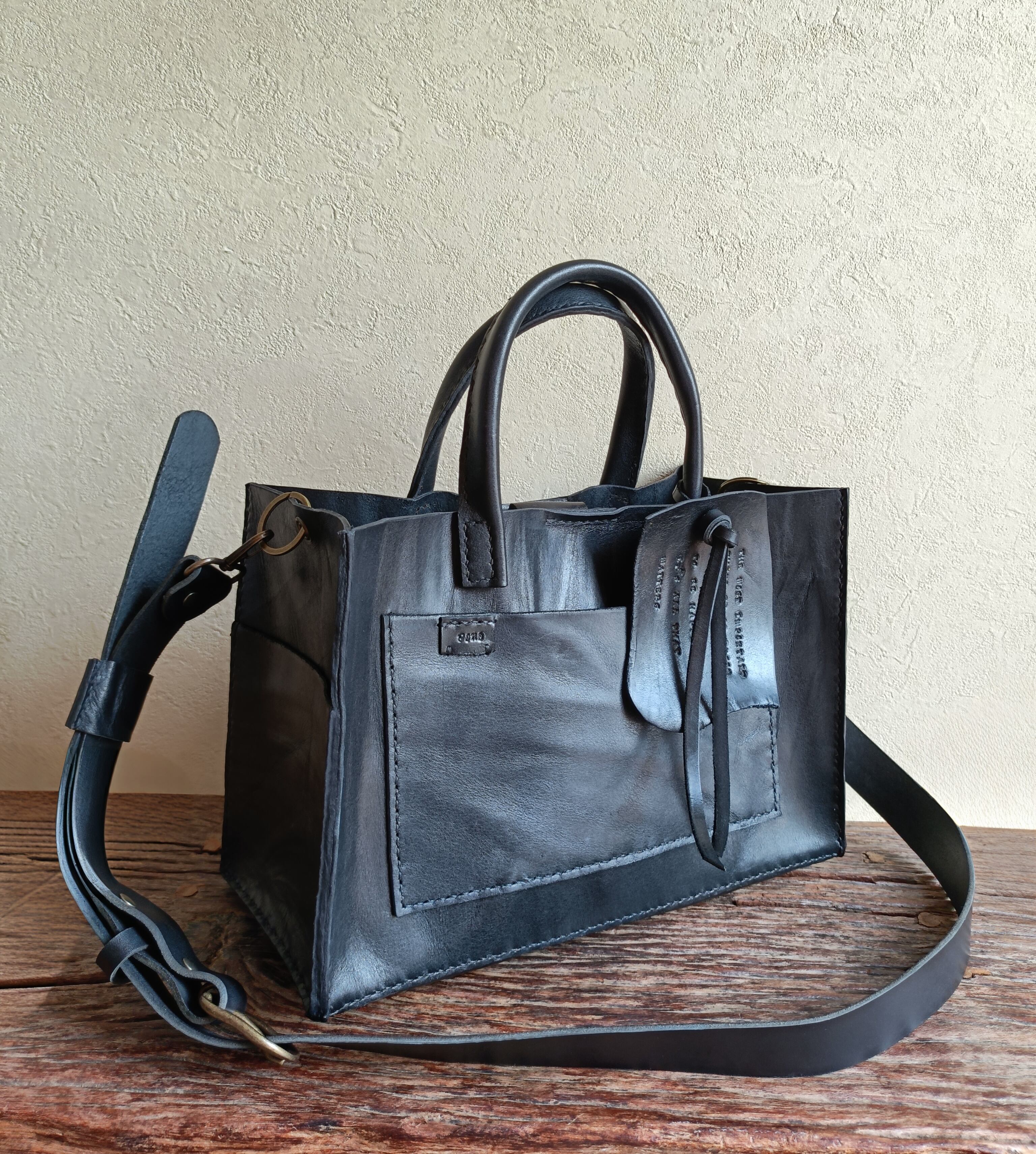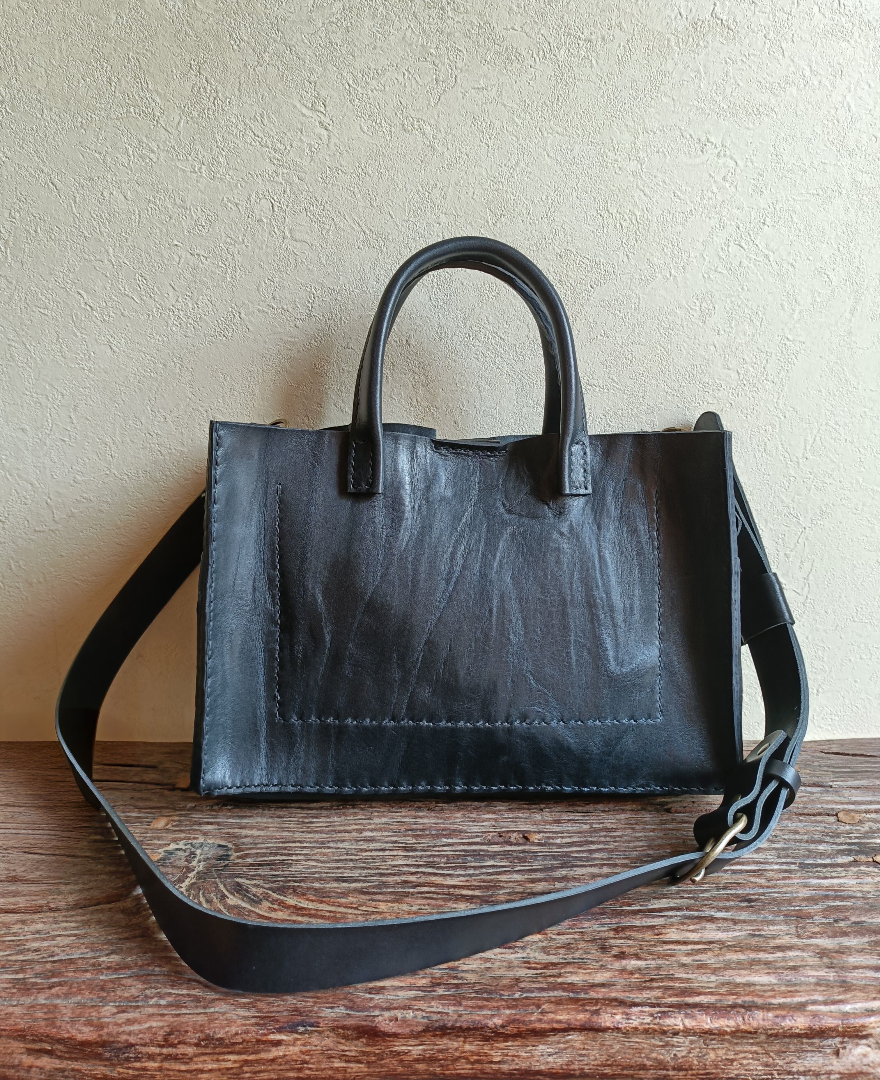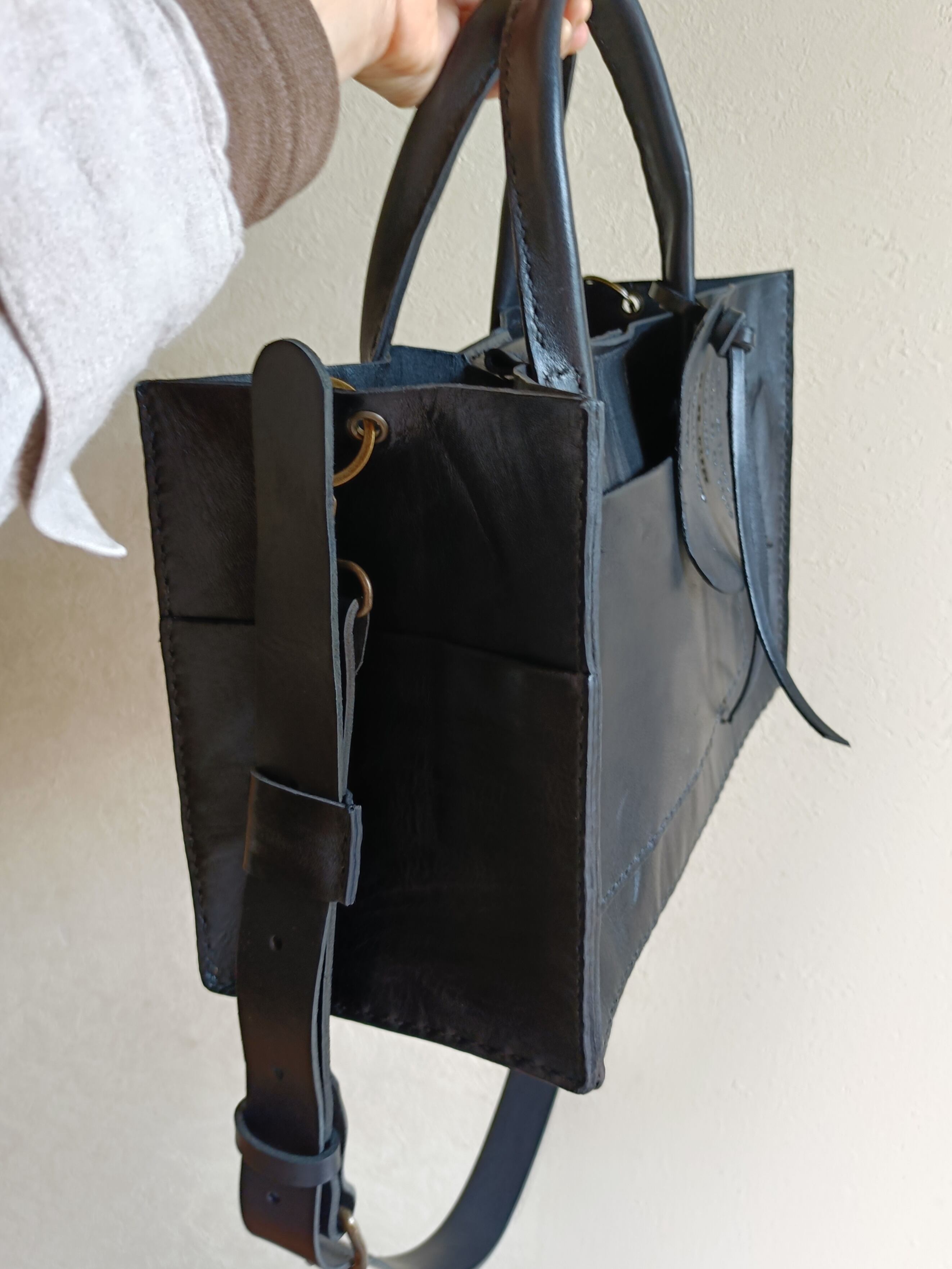 【М様オーダー品】square tote shoulder 黒 オイルワックスレザー