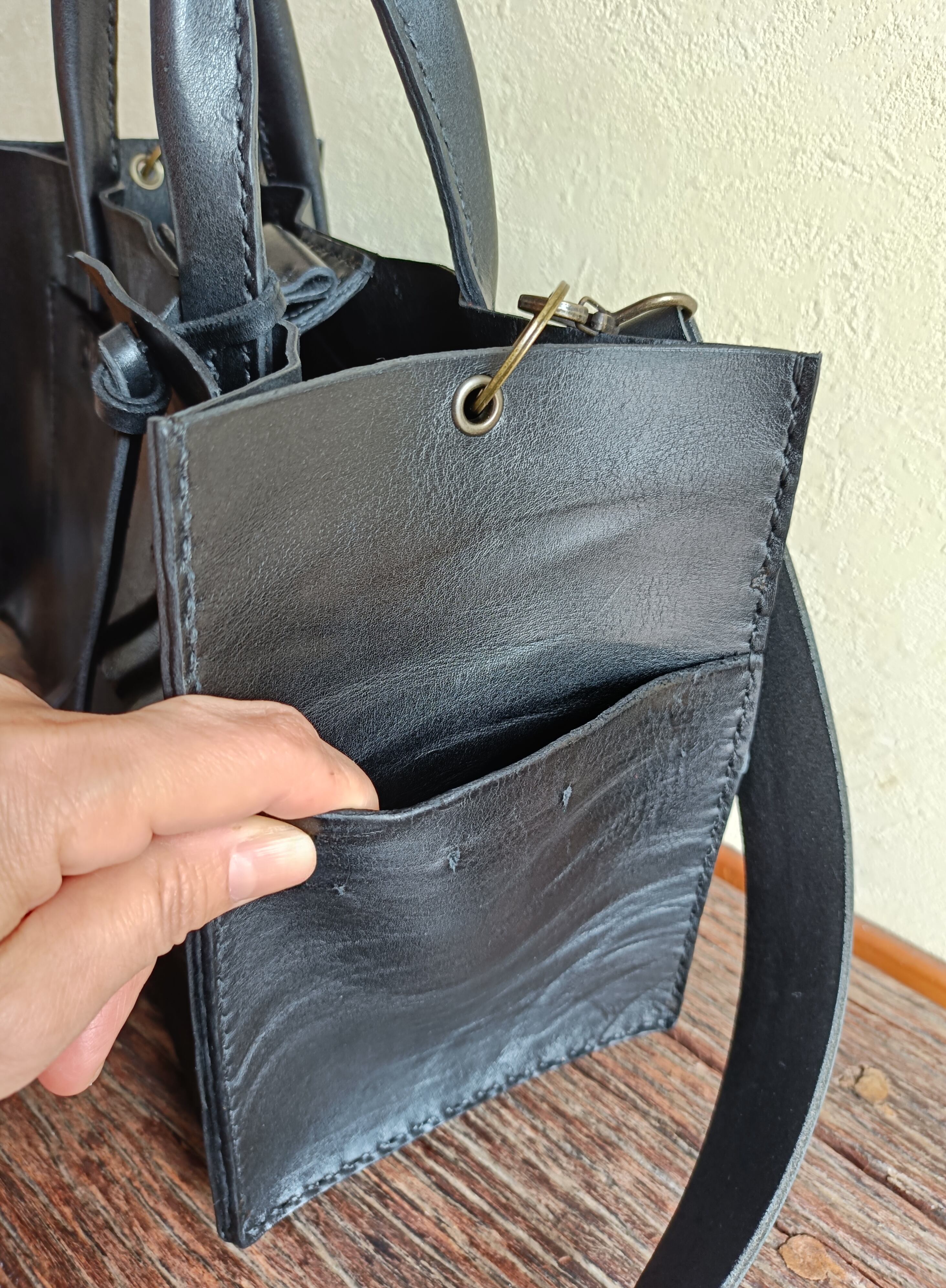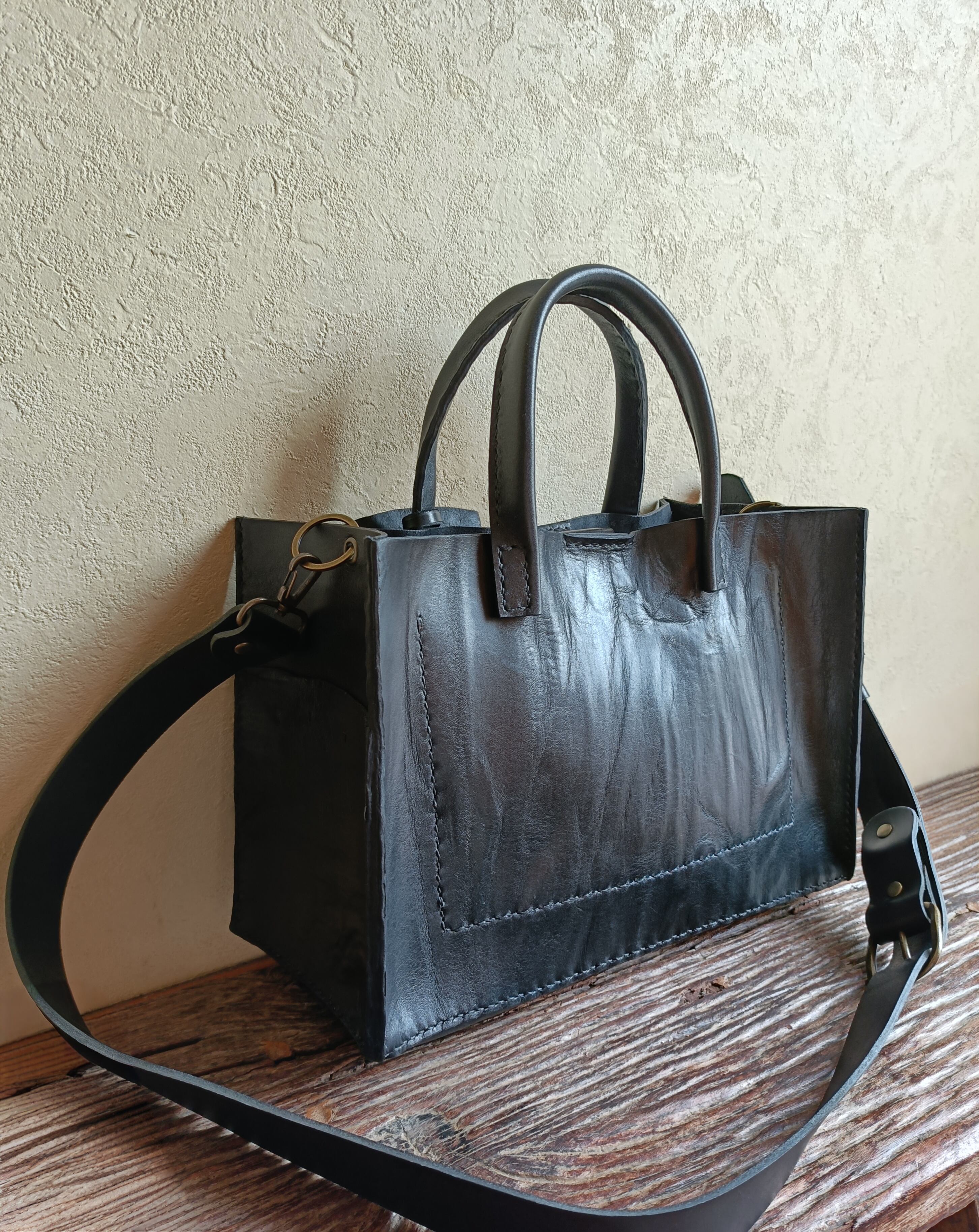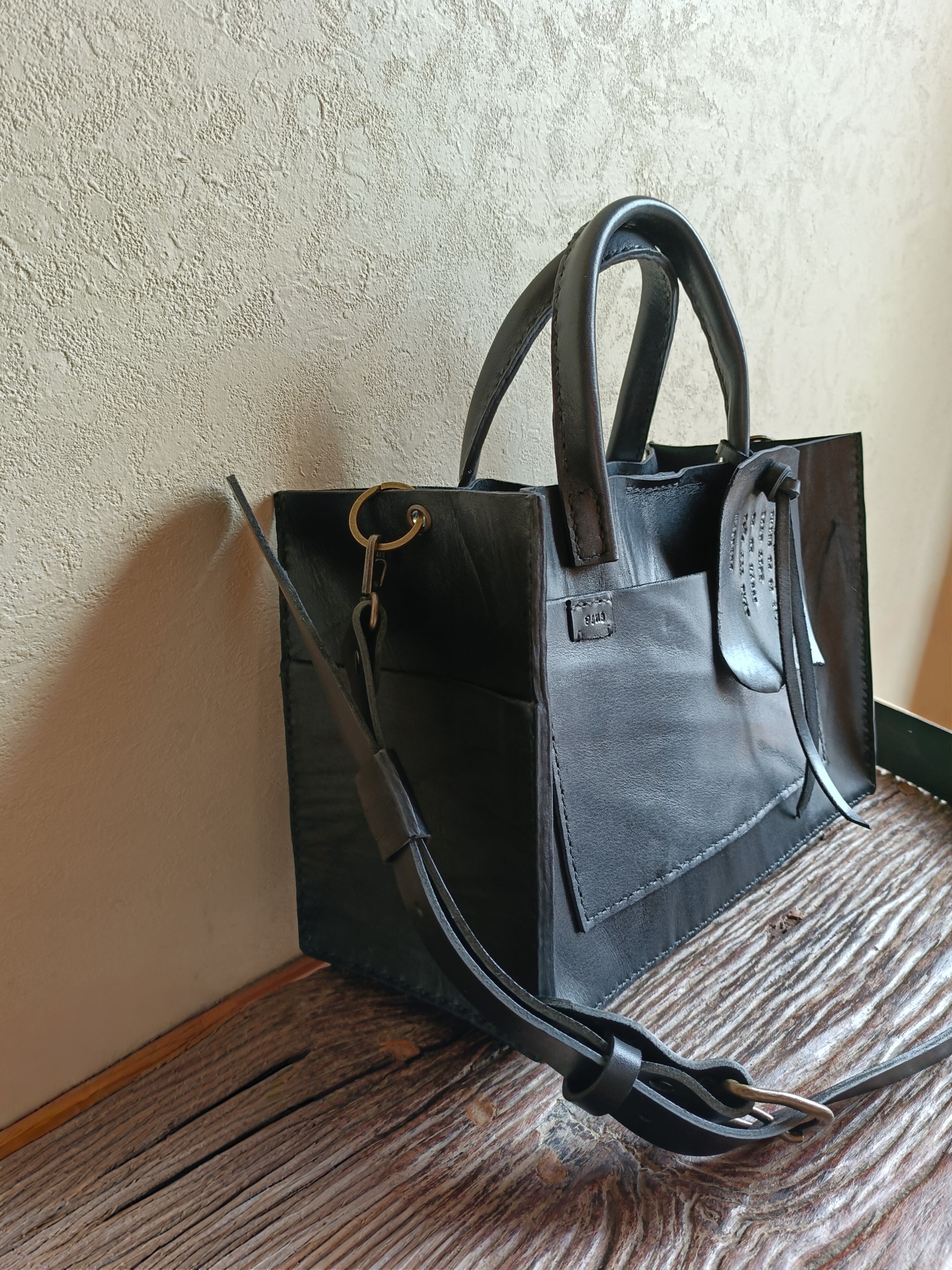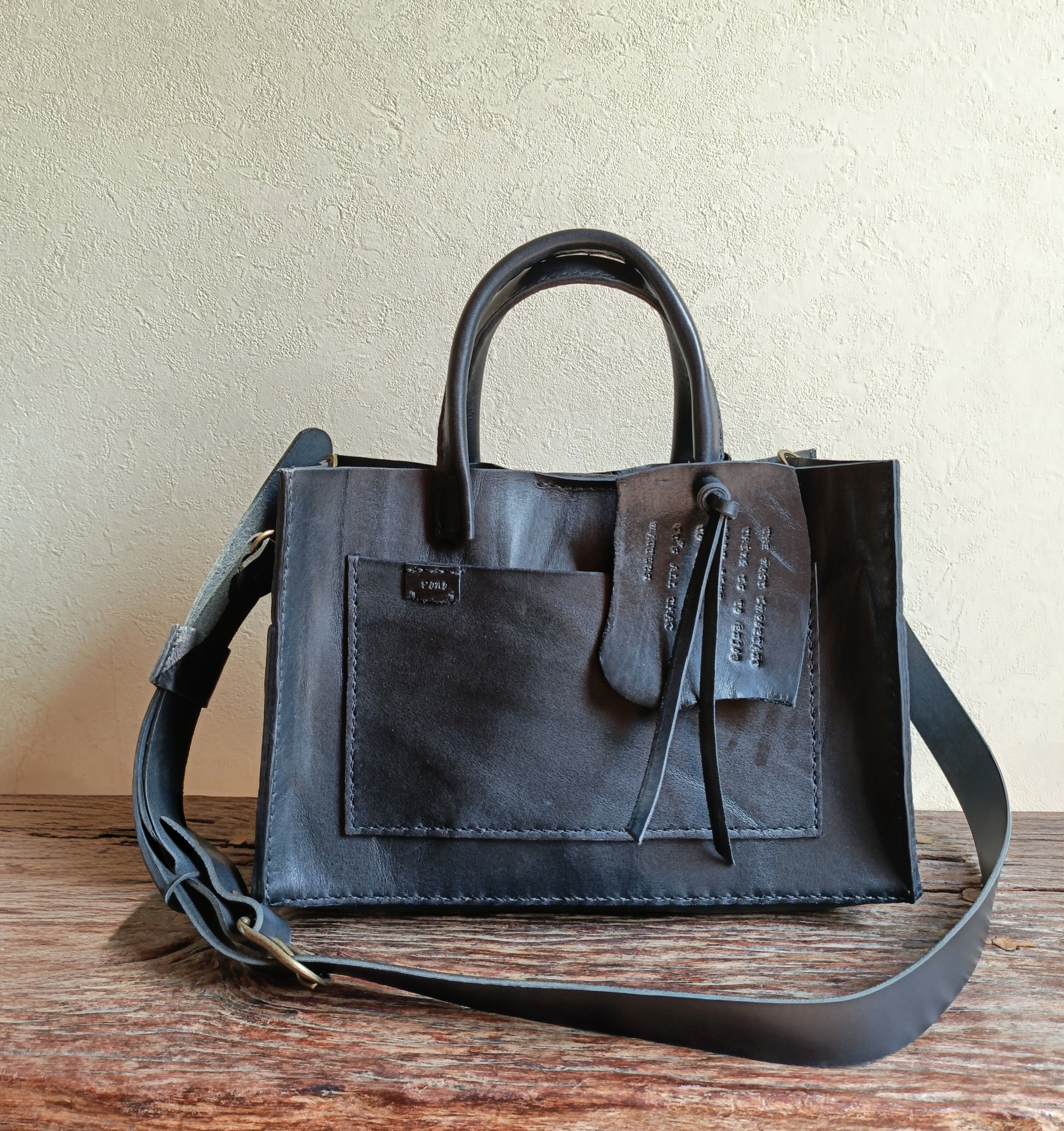 【М様オーダー品】square tote shoulder 黒 オイルワックスレザー