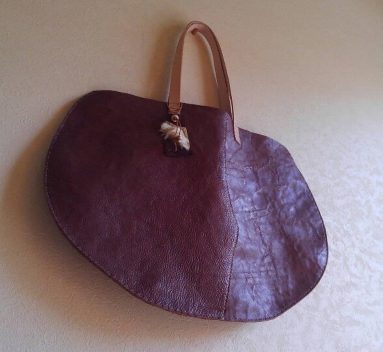 持ち手は、無着色・無塗装の牛ヌメ革で、使用とともにアメ色に変化していく上質な革を使っています。
