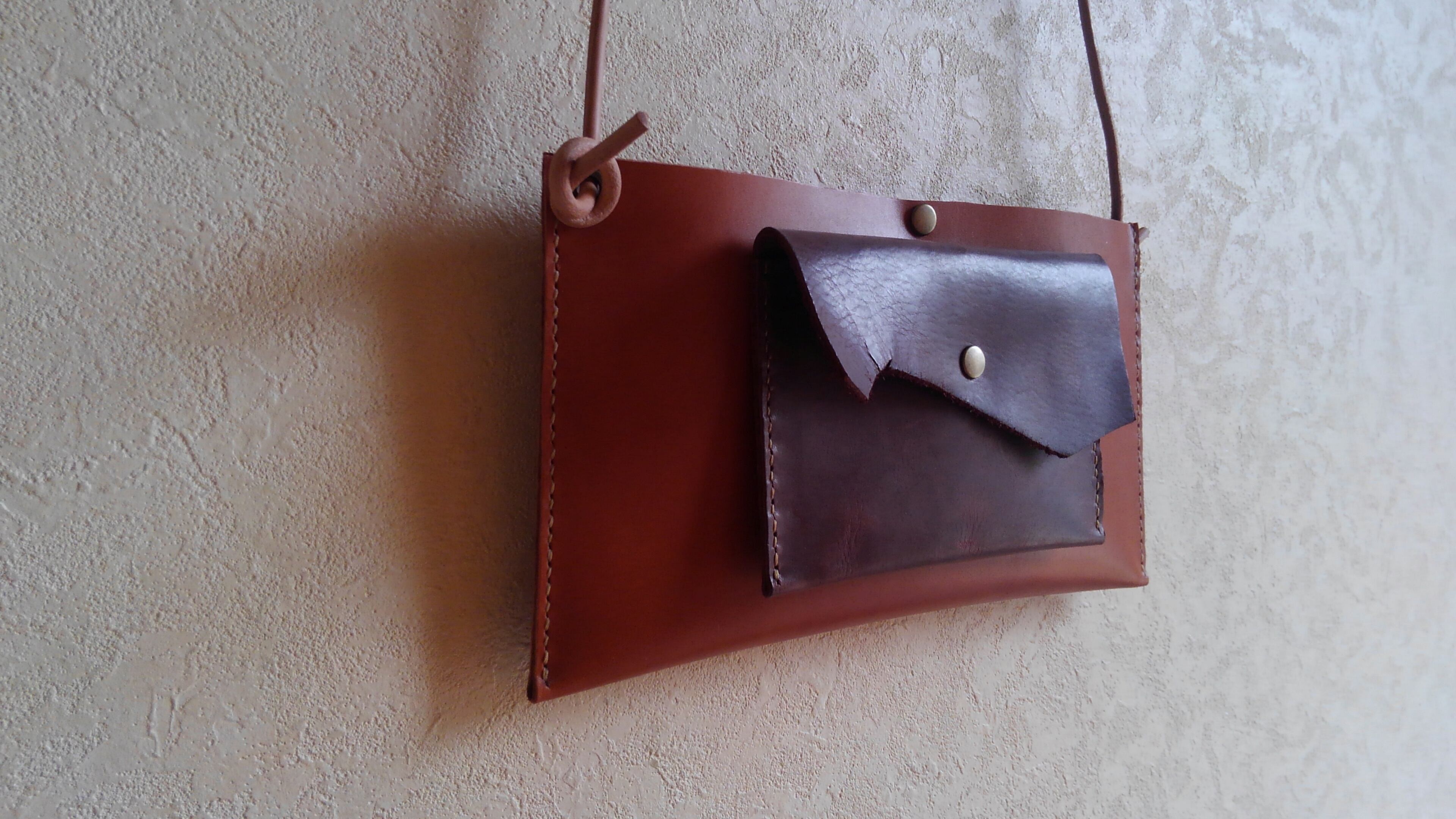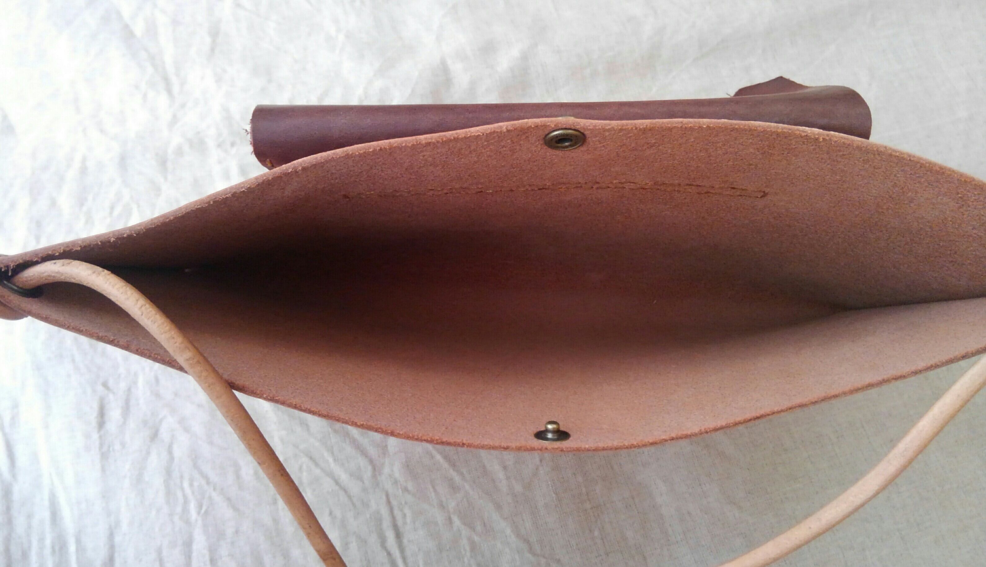 外ポケットは、タンニン鞣しされたオイルレザーで、しっとりとした手触りです。