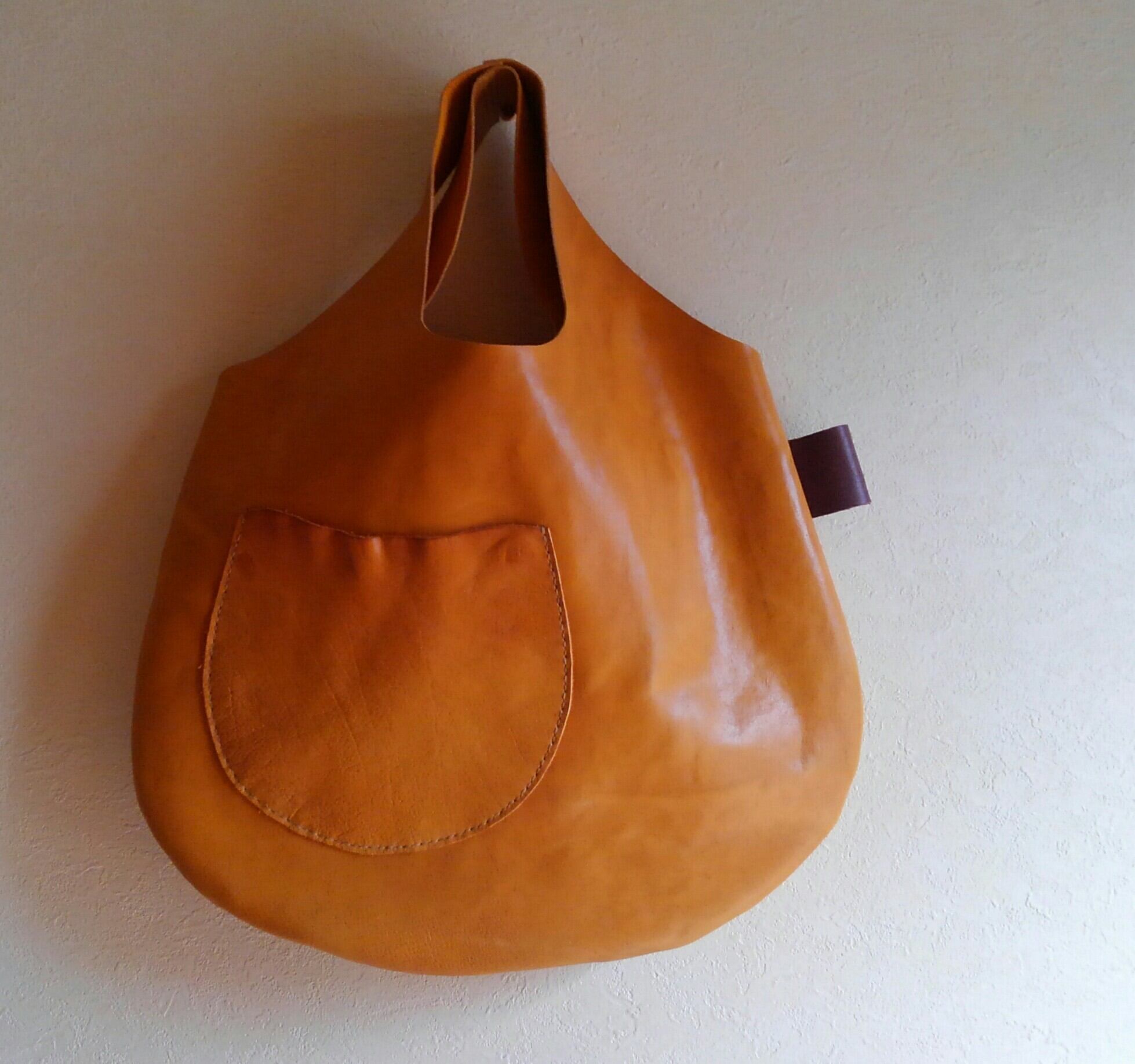 柔らかい革なので、お荷物を入れると量によってぷっくりまぁるくなり、見かけによらず大容量です。