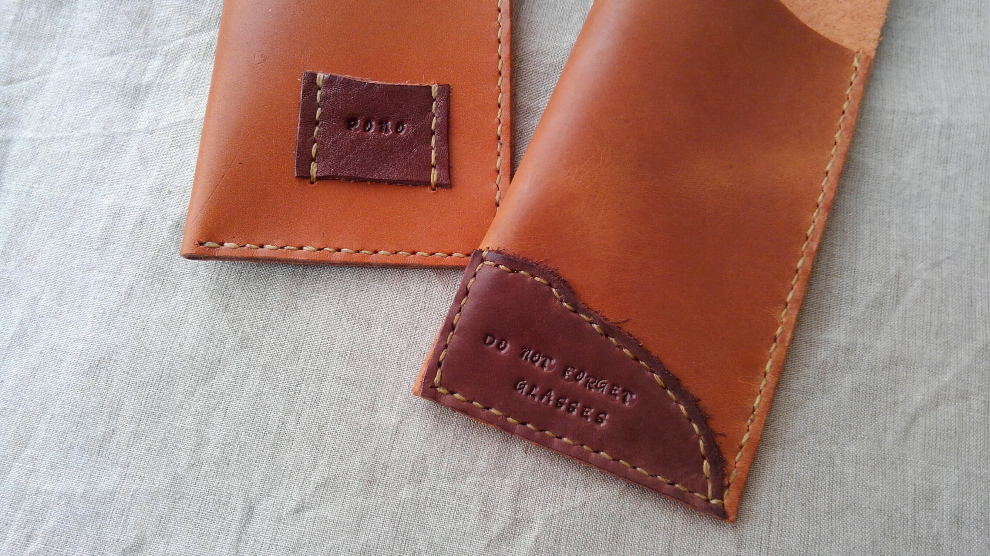 国産ヌメ ブラウン メガネホルダー『pono』