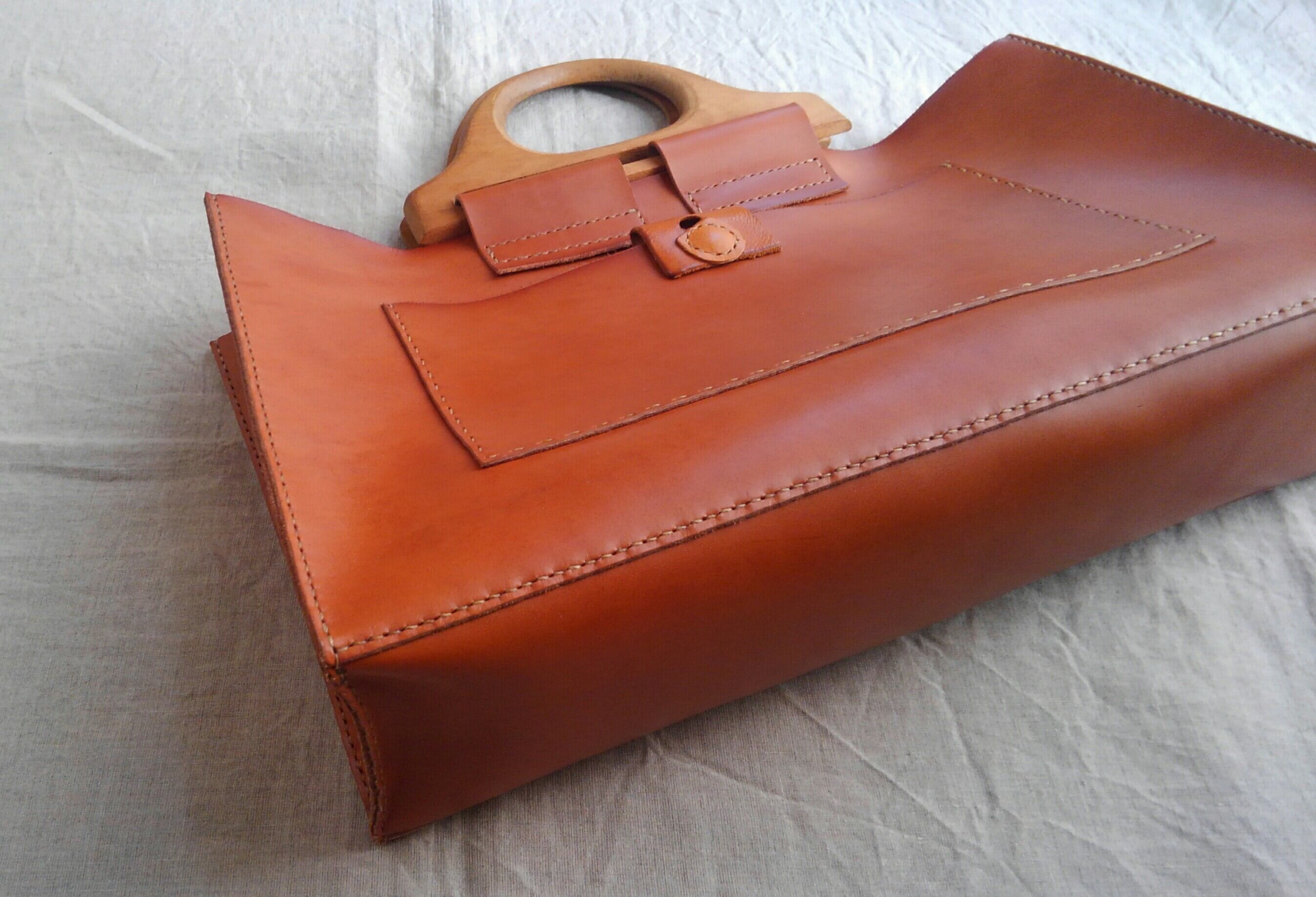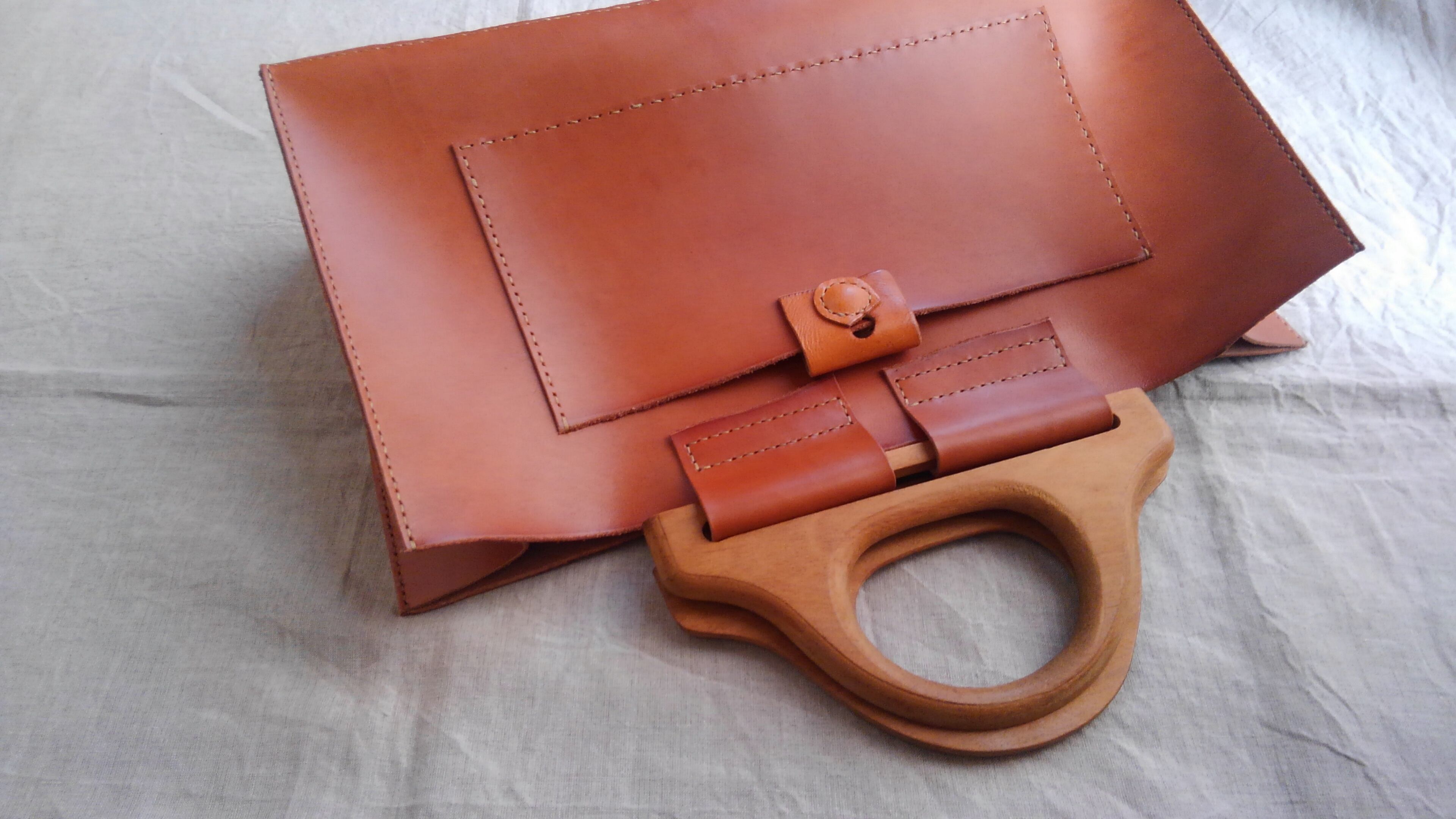 国産ヌメ ブラウン 四角いトート 木の持ち手