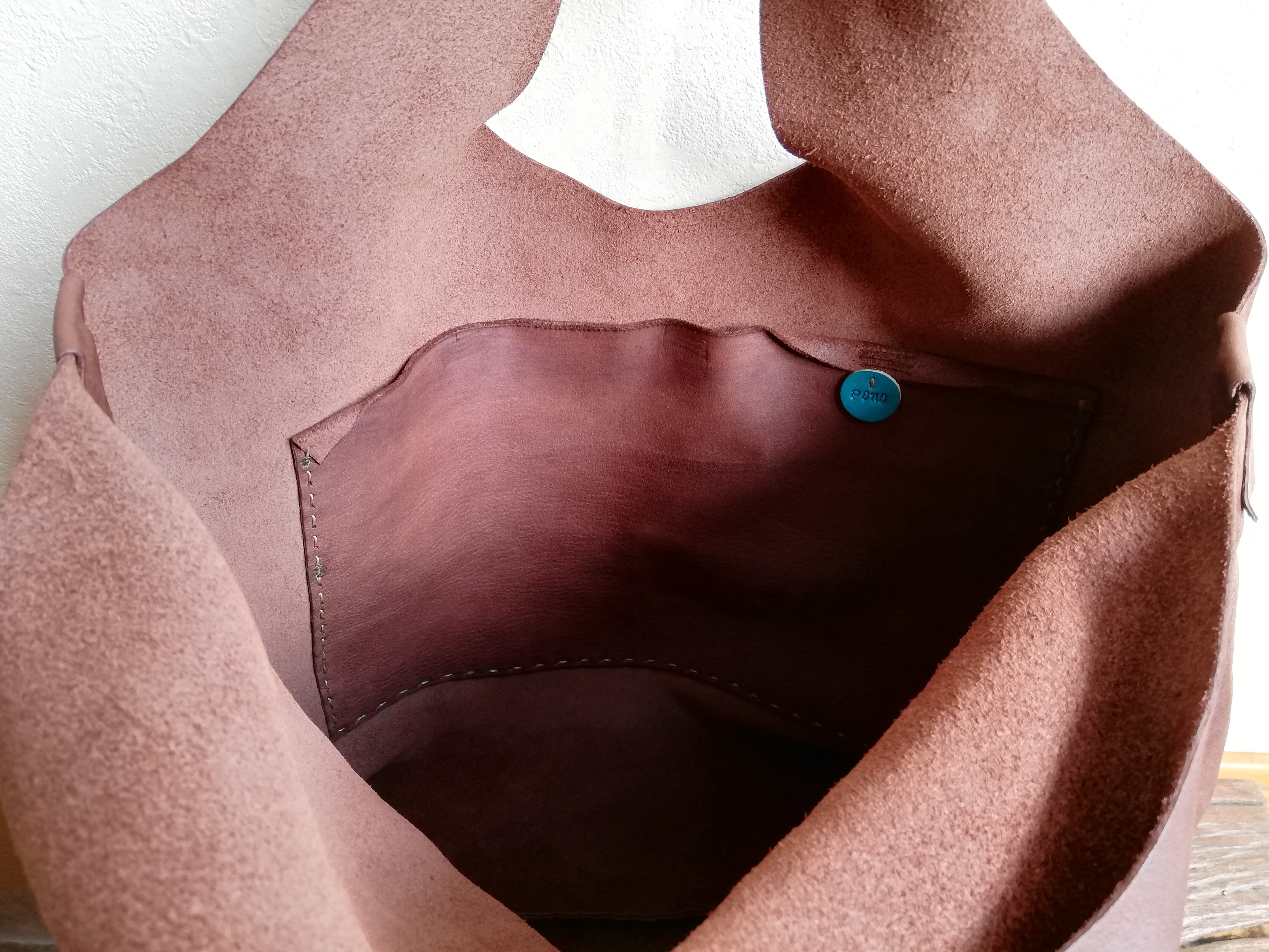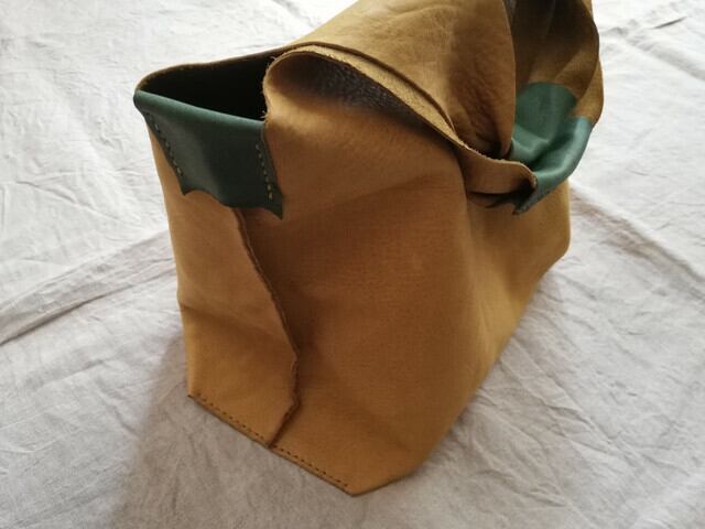 くったり柔らかく、植物性タンニンで鞣されたオイルシュリンクレザーで、とても軽いのが特徴です。