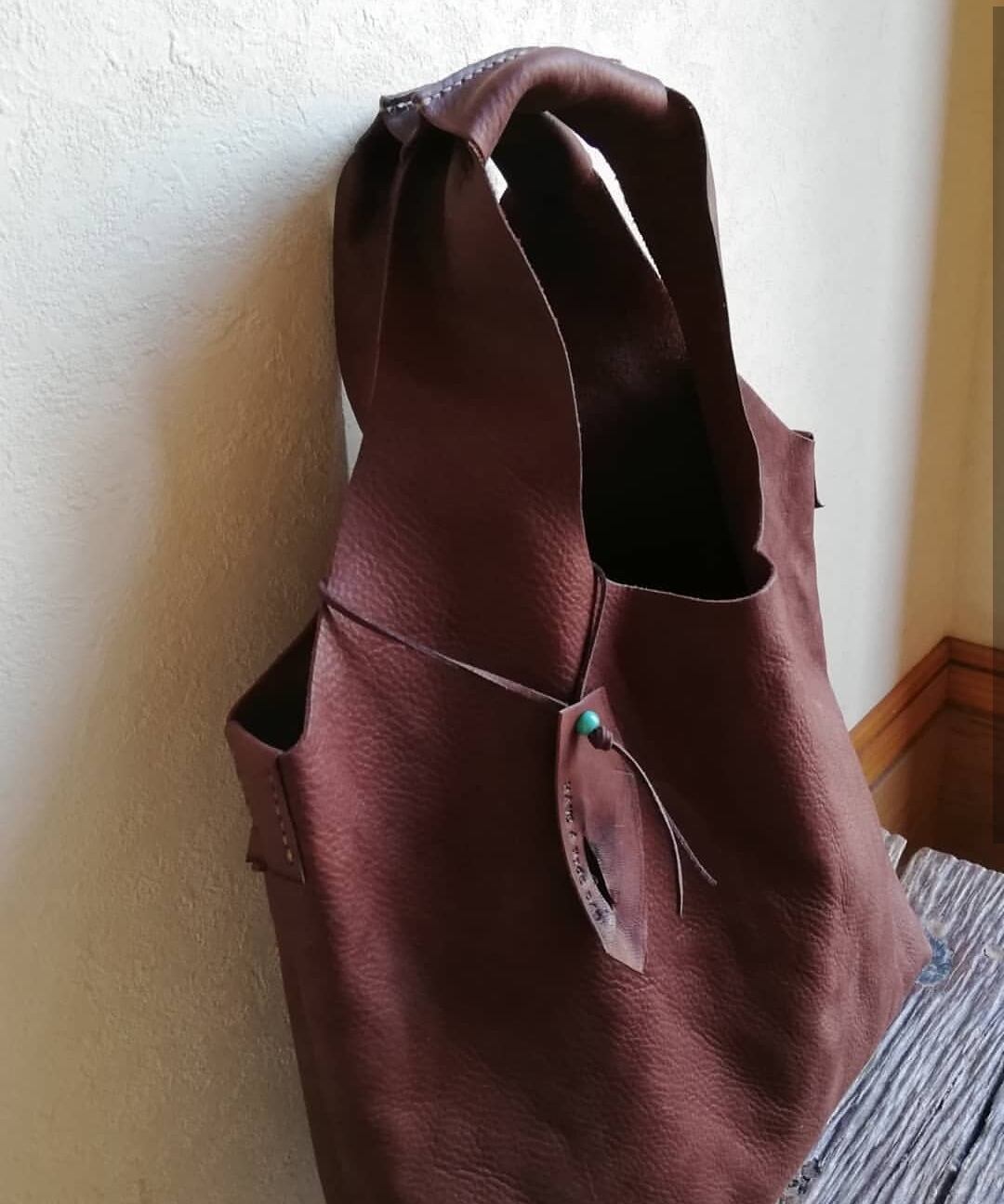 【受注制作】シンプルトート 持ち手一体型 オイルシュリンクレザー(持ち手カバー付き)