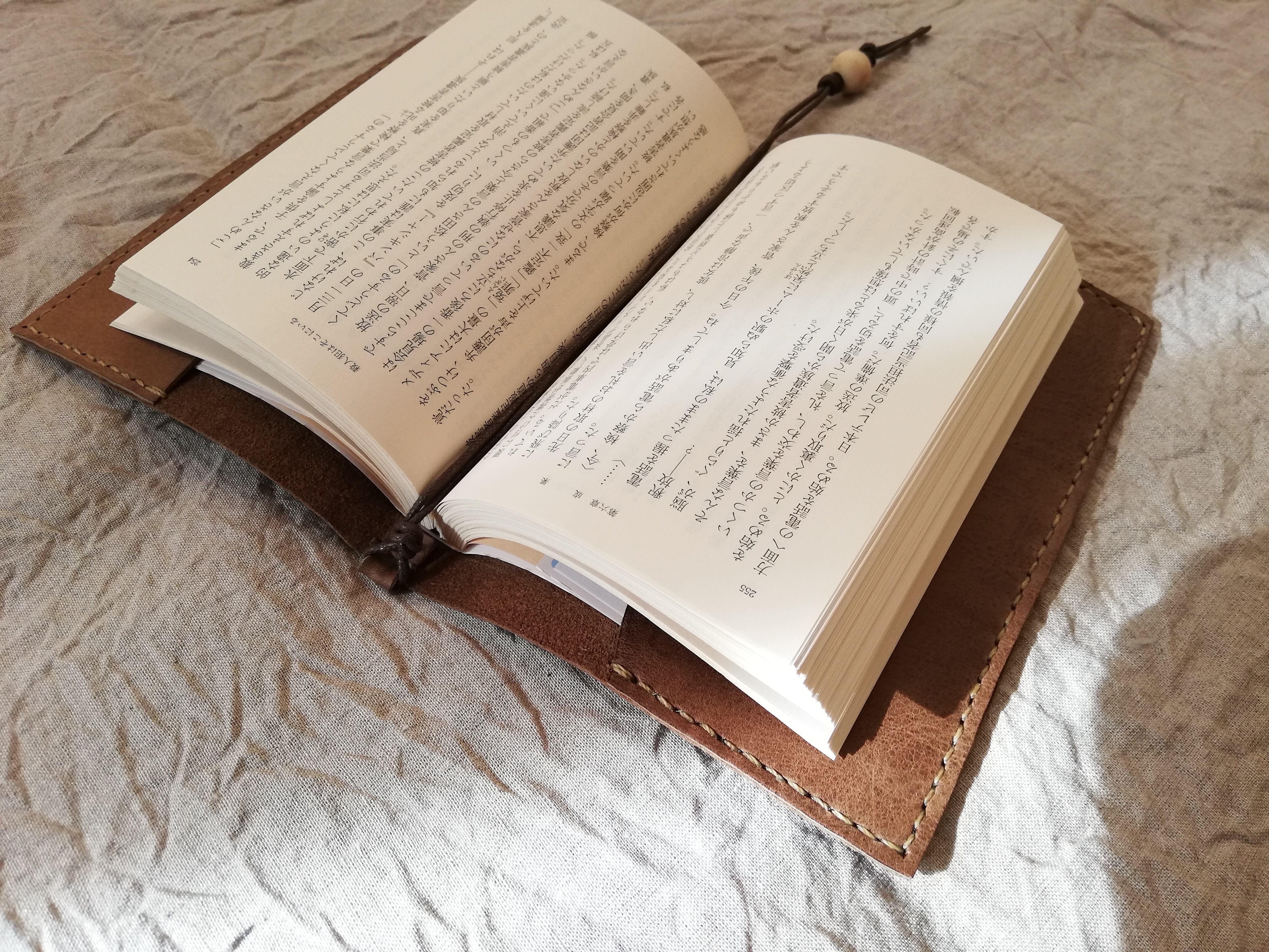 ブックカバー 文庫本カバー オイルシュリンクレザー 牛ヌメ革 モカグレー