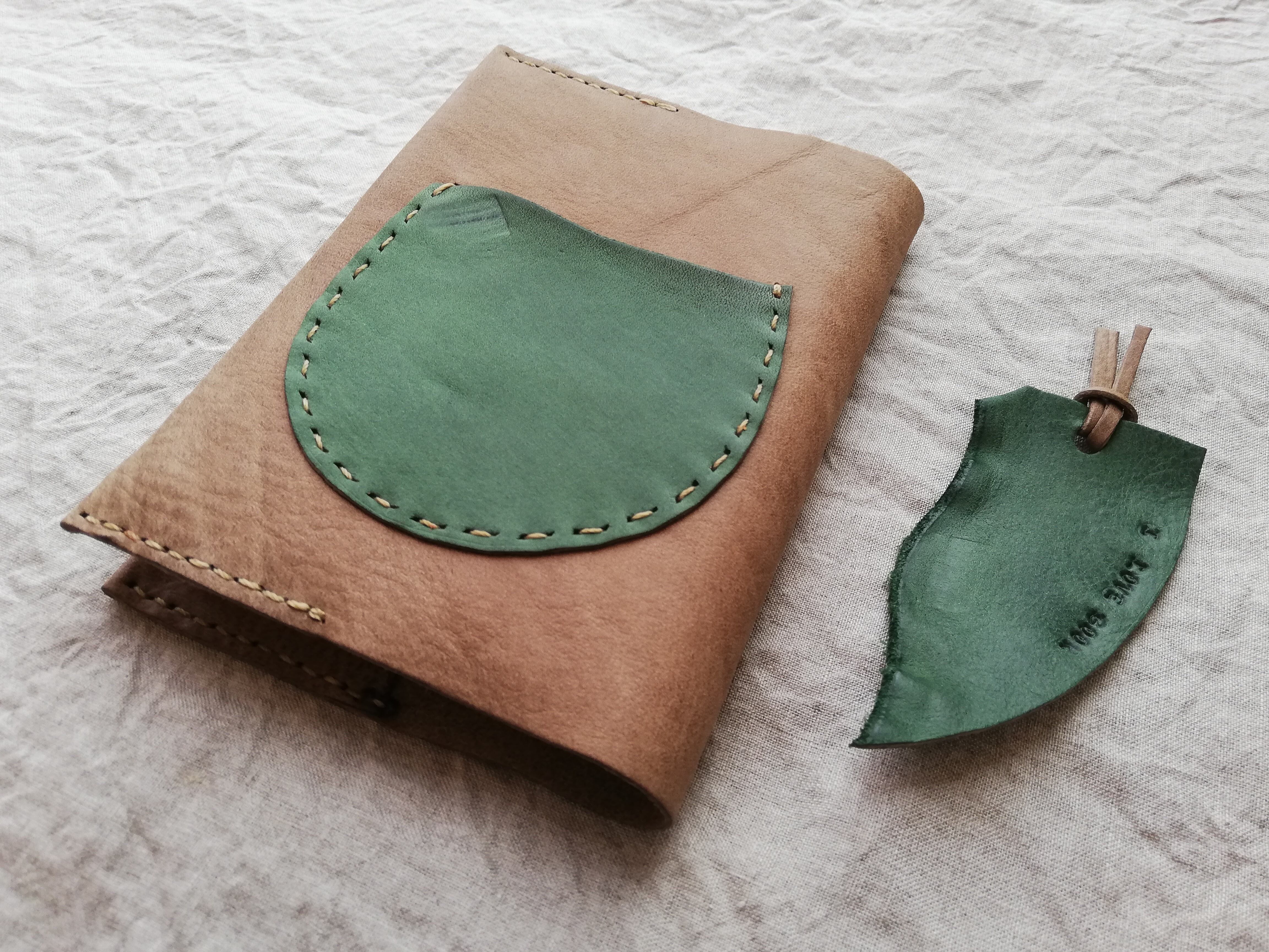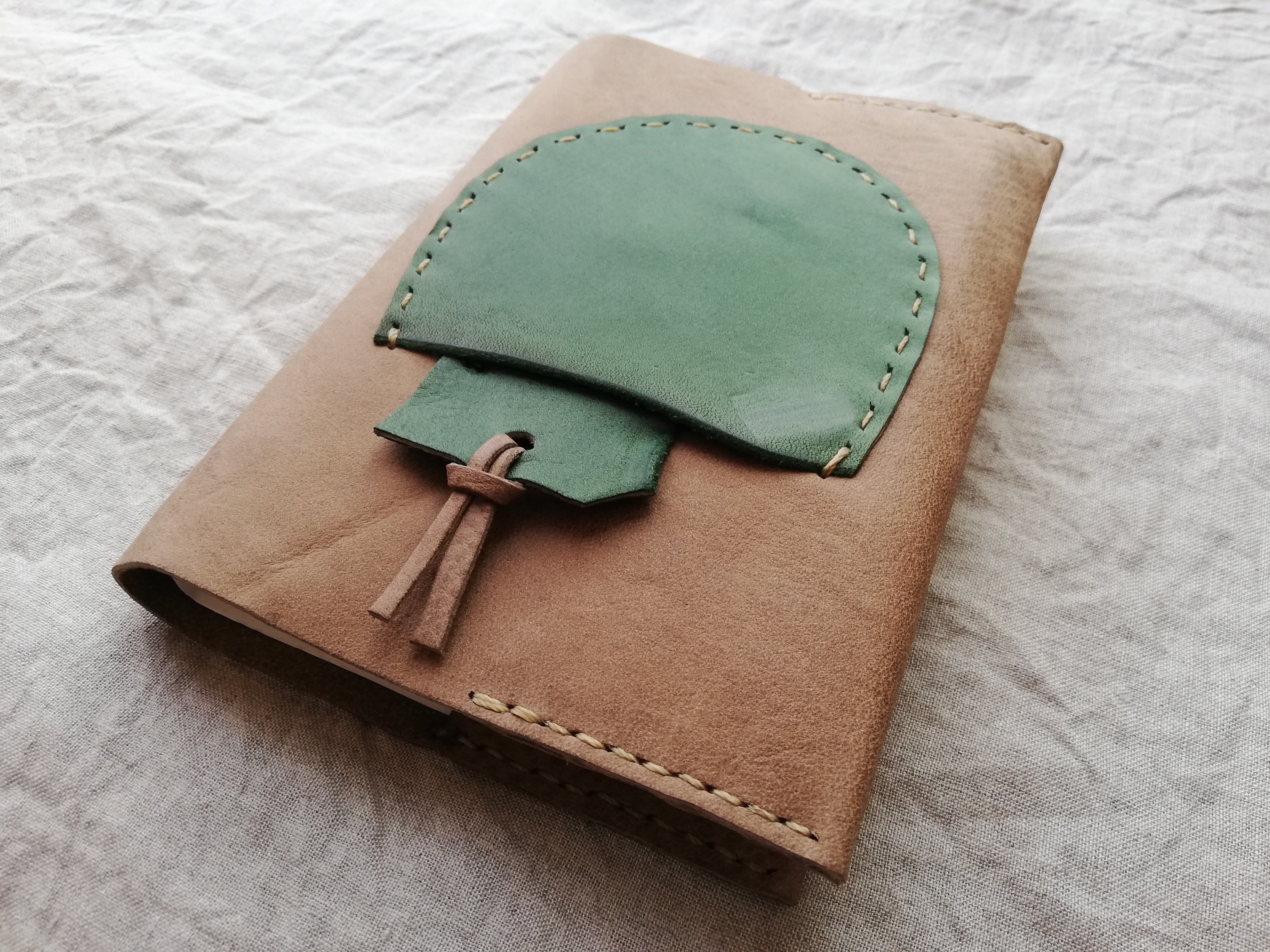 ブックカバー 文庫本カバー オイルシュリンクレザー モカグレー✗グリーン