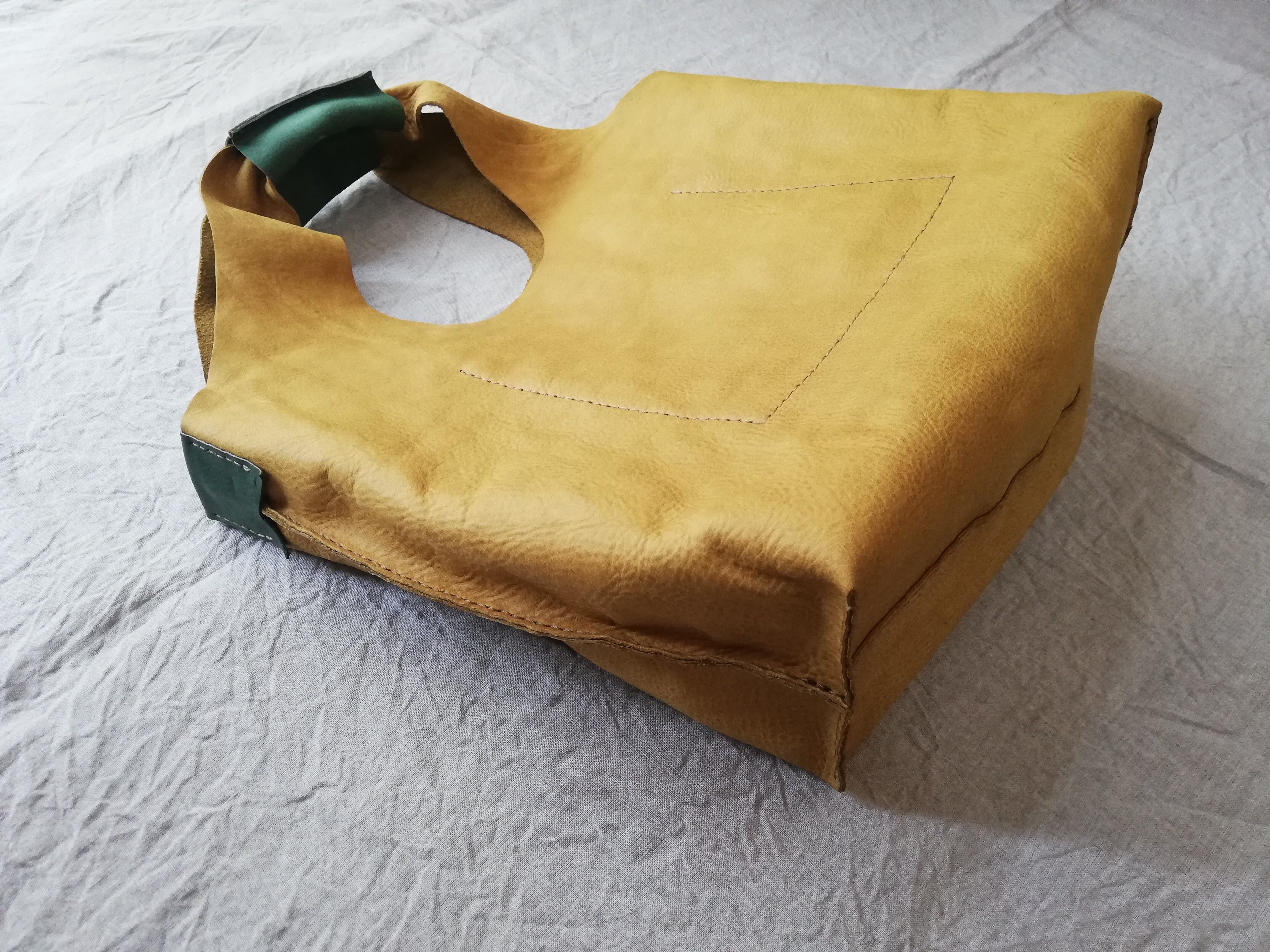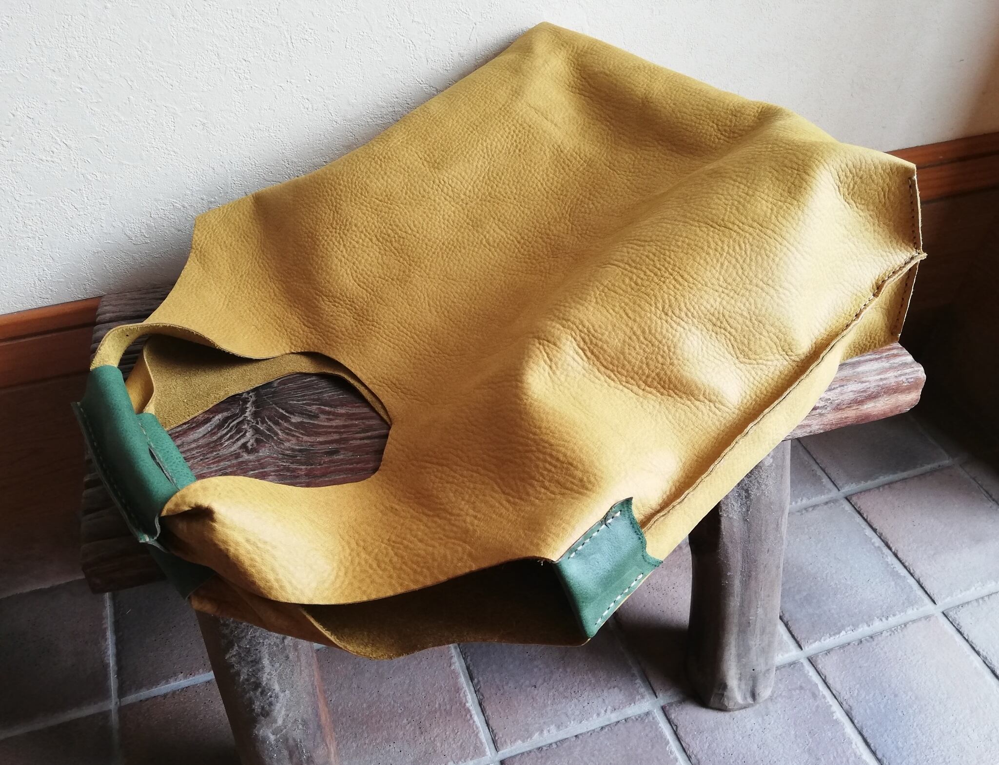 くったり柔らかく、植物性タンニンで鞣されたオイルシュリンクレザーで、とても軽いのが特徴です。
