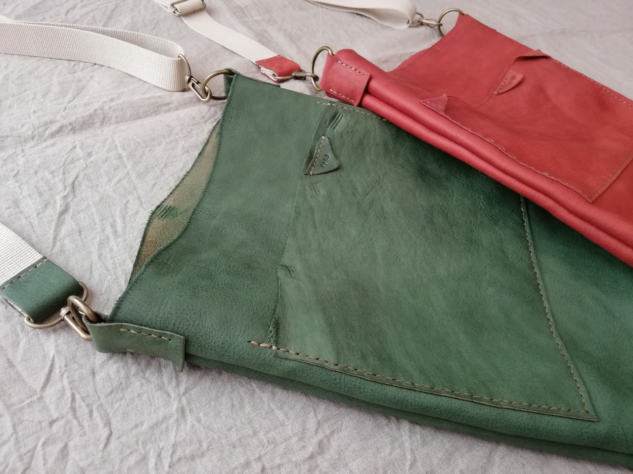 くったり柔らかく、植物性タンニンで鞣されたオイルシュリンクレザーで、とても軽いのが特徴です。