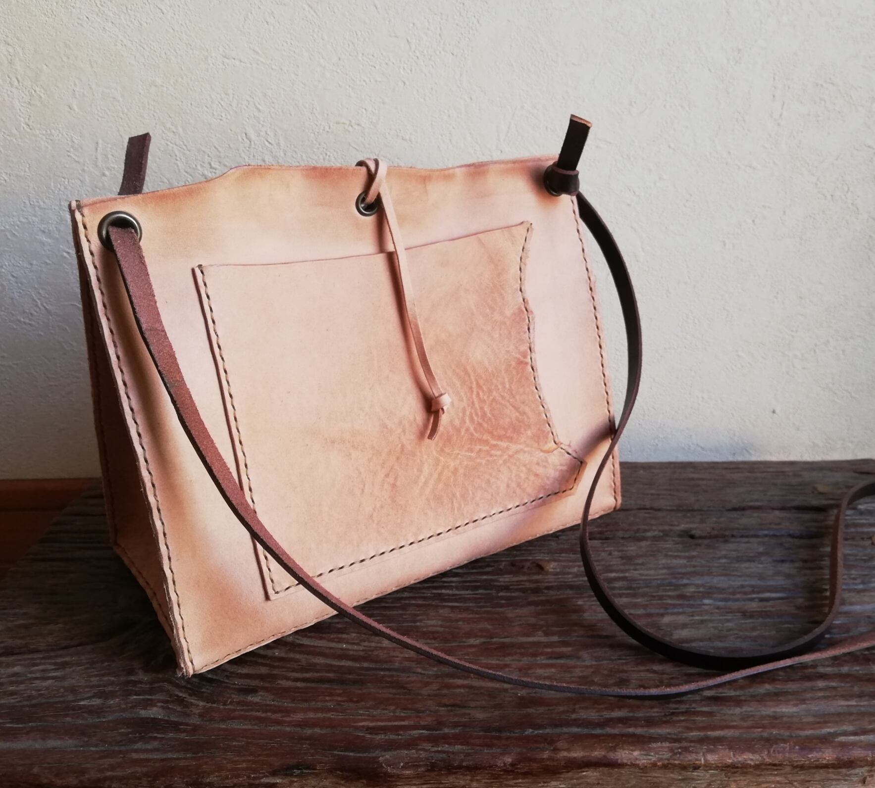 革は、植物性タンニン鞣しの牛ヌメ革。