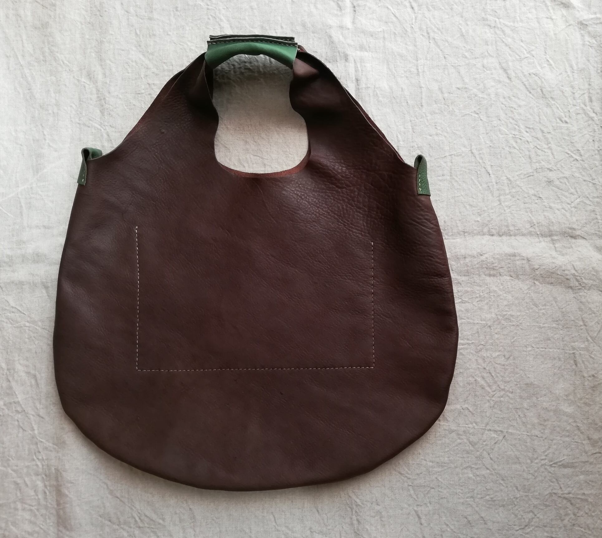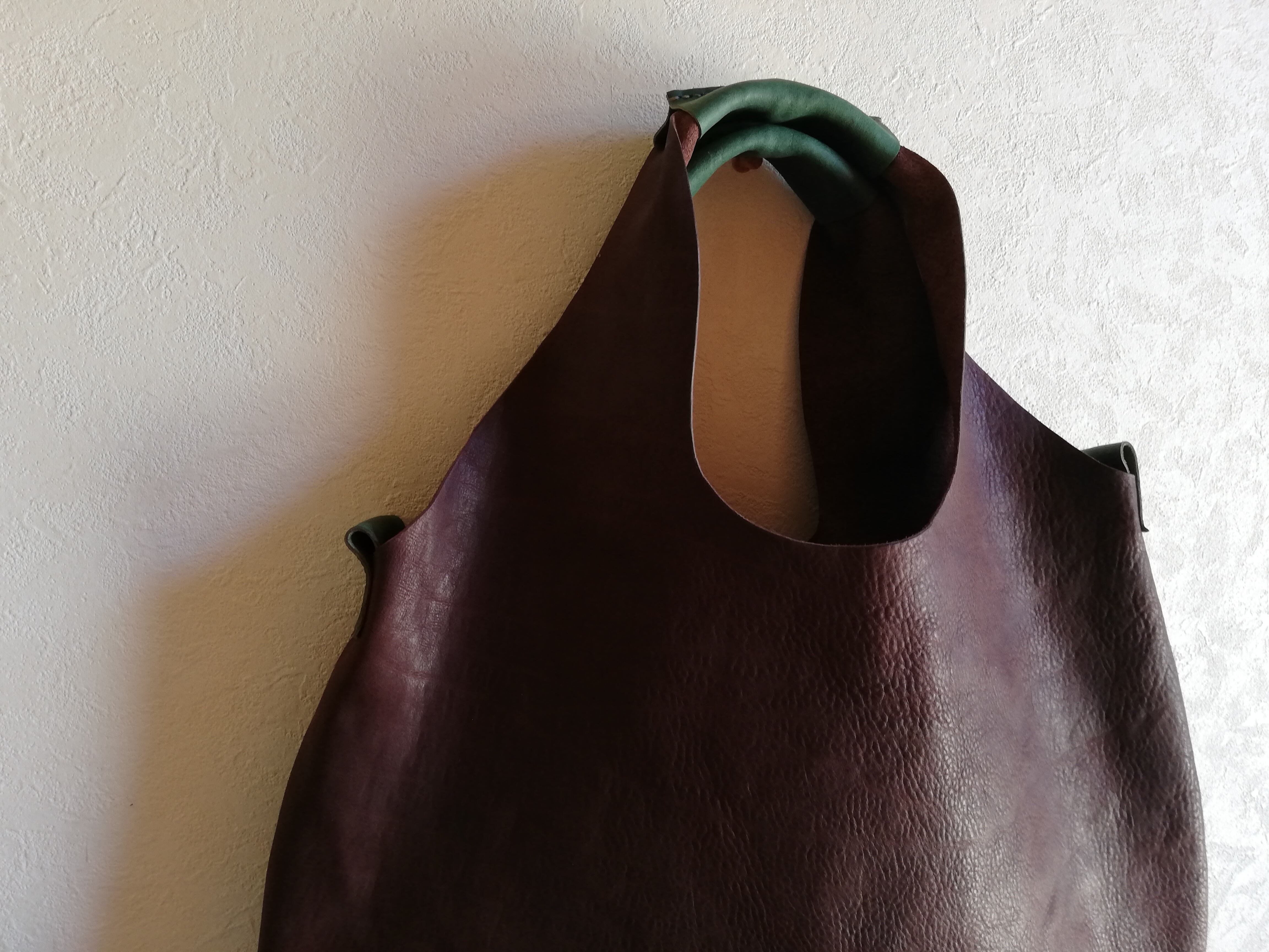 Round tote ダークブラウン✗グリーン オイルシュリンクレザー