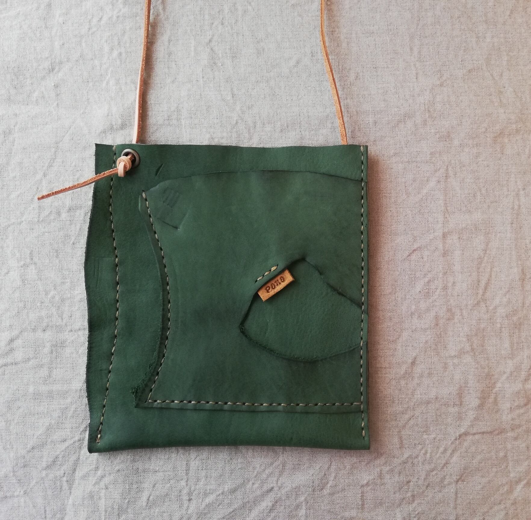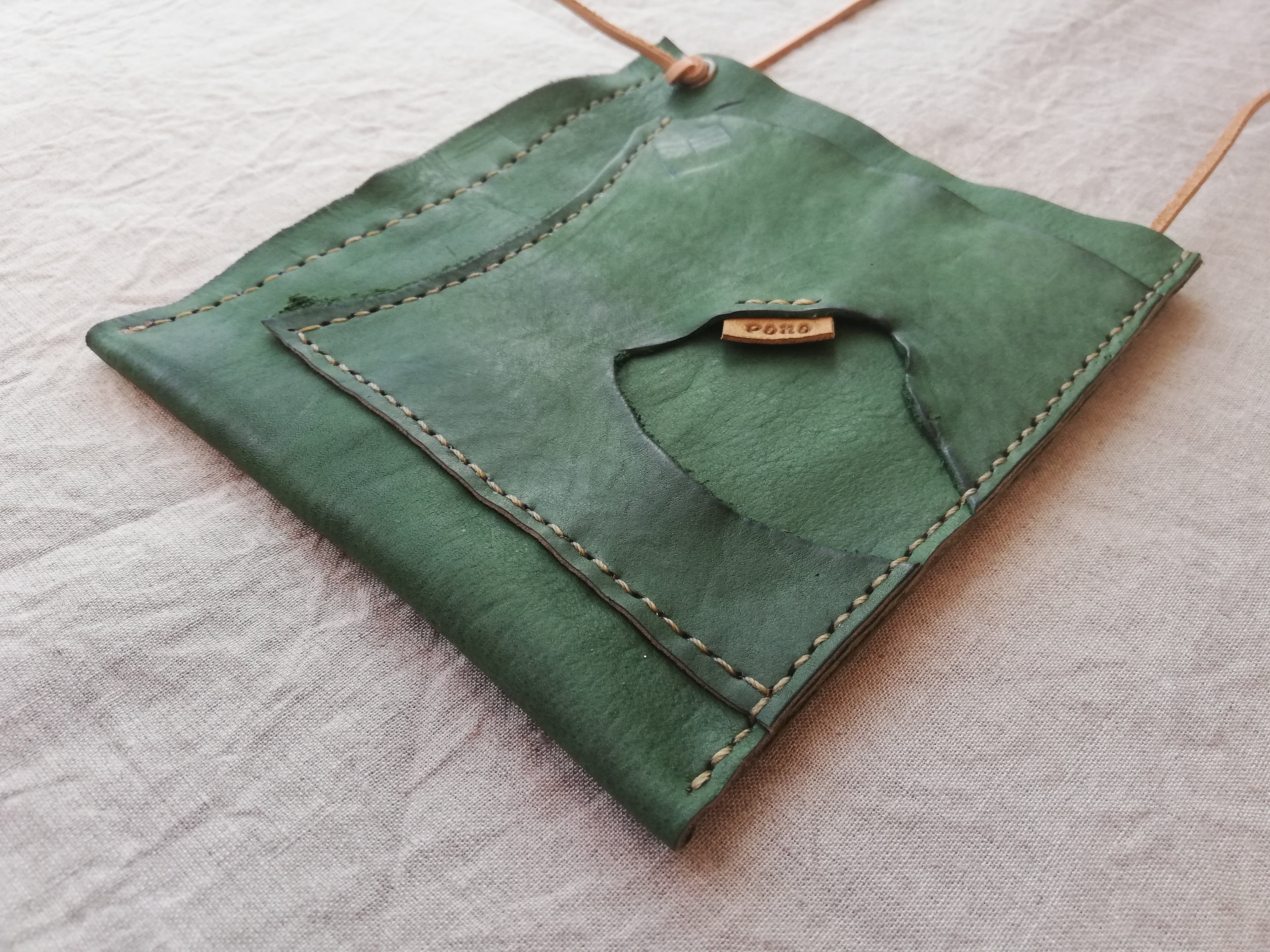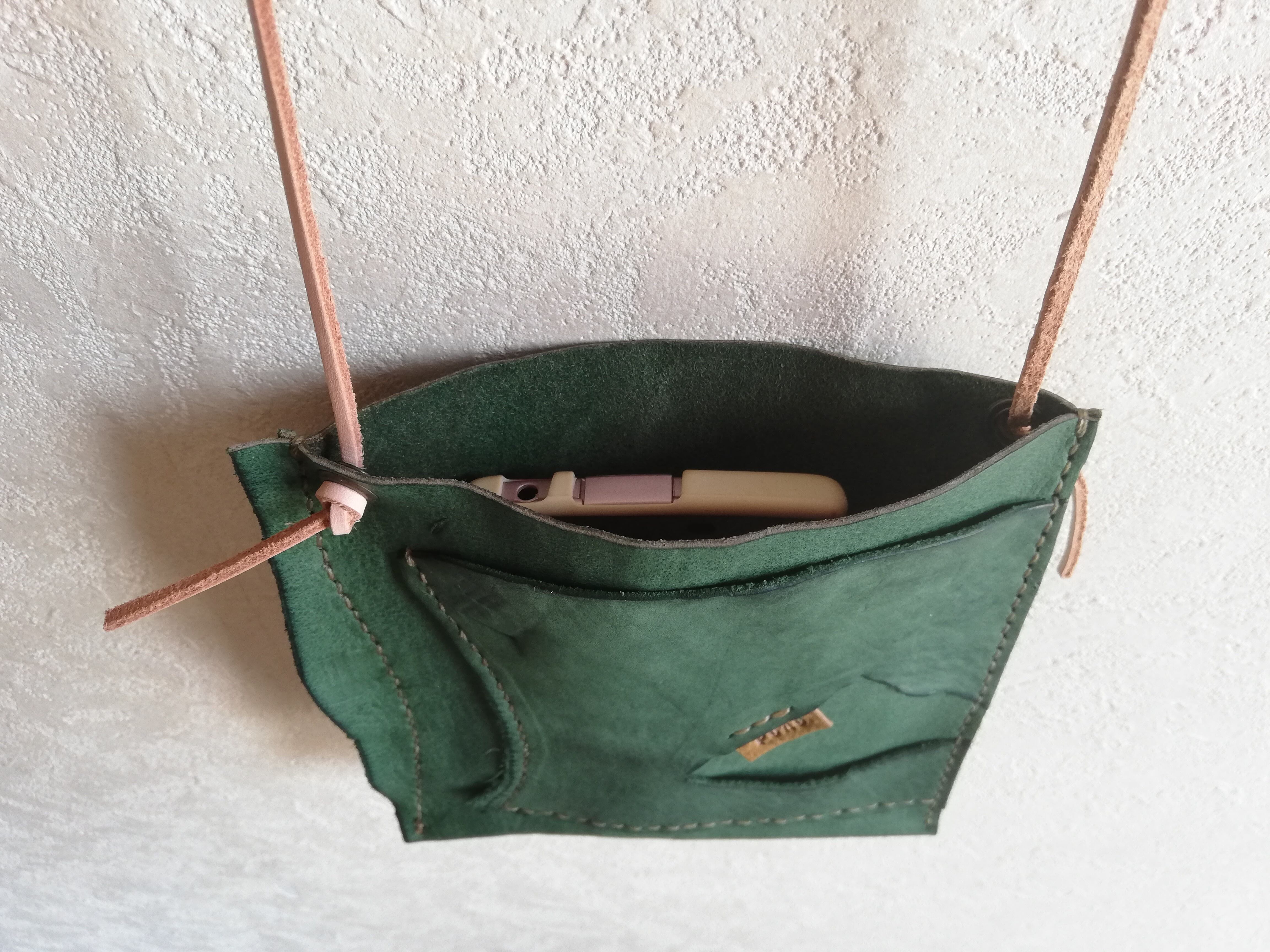 スマホショルダー スマホポシェット オイルシュリンク グリーン 一点物