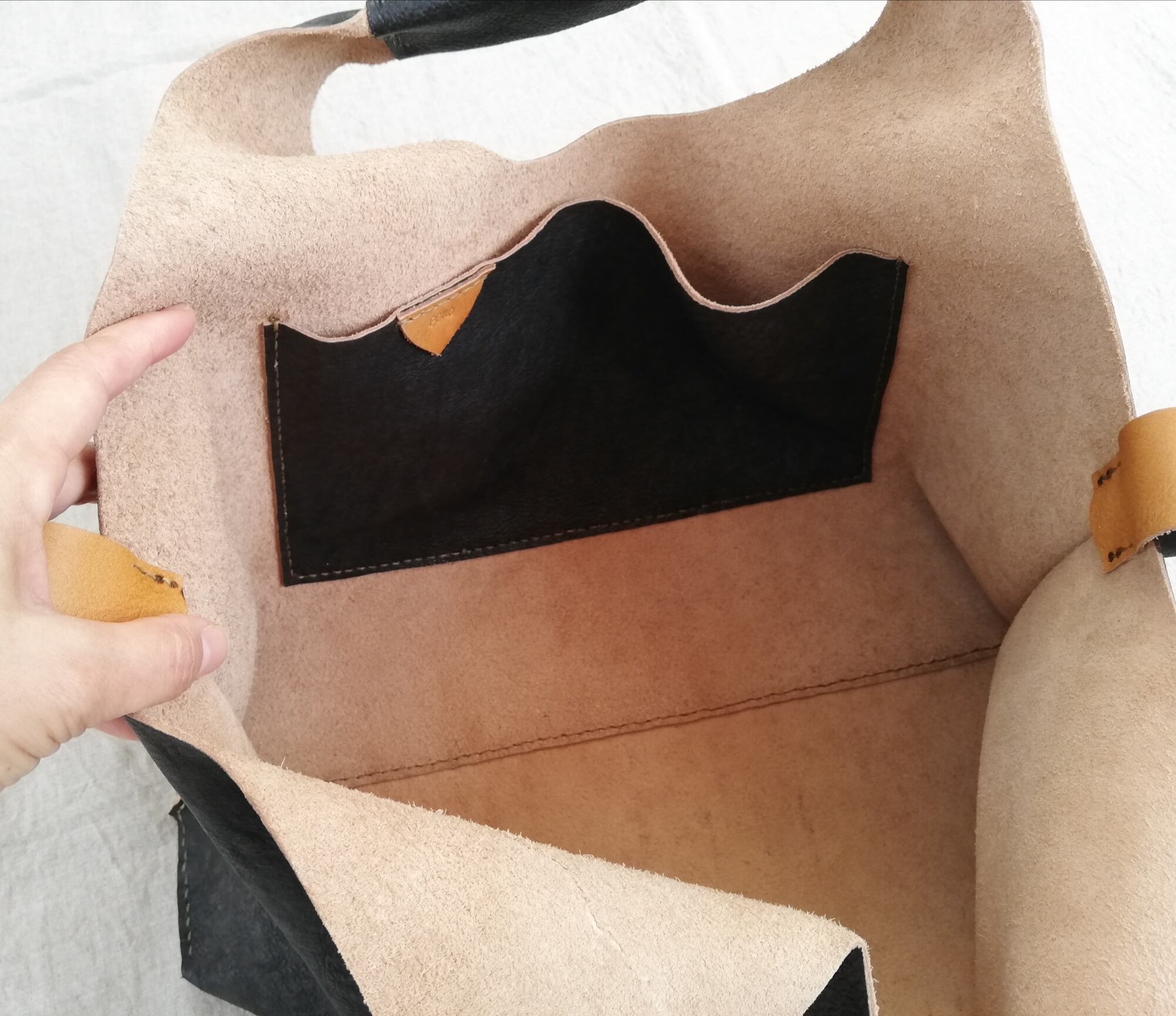 ダコタ調のしぼがあり、ややソフトで少し肉厚感のある牛ヌメ革です。
