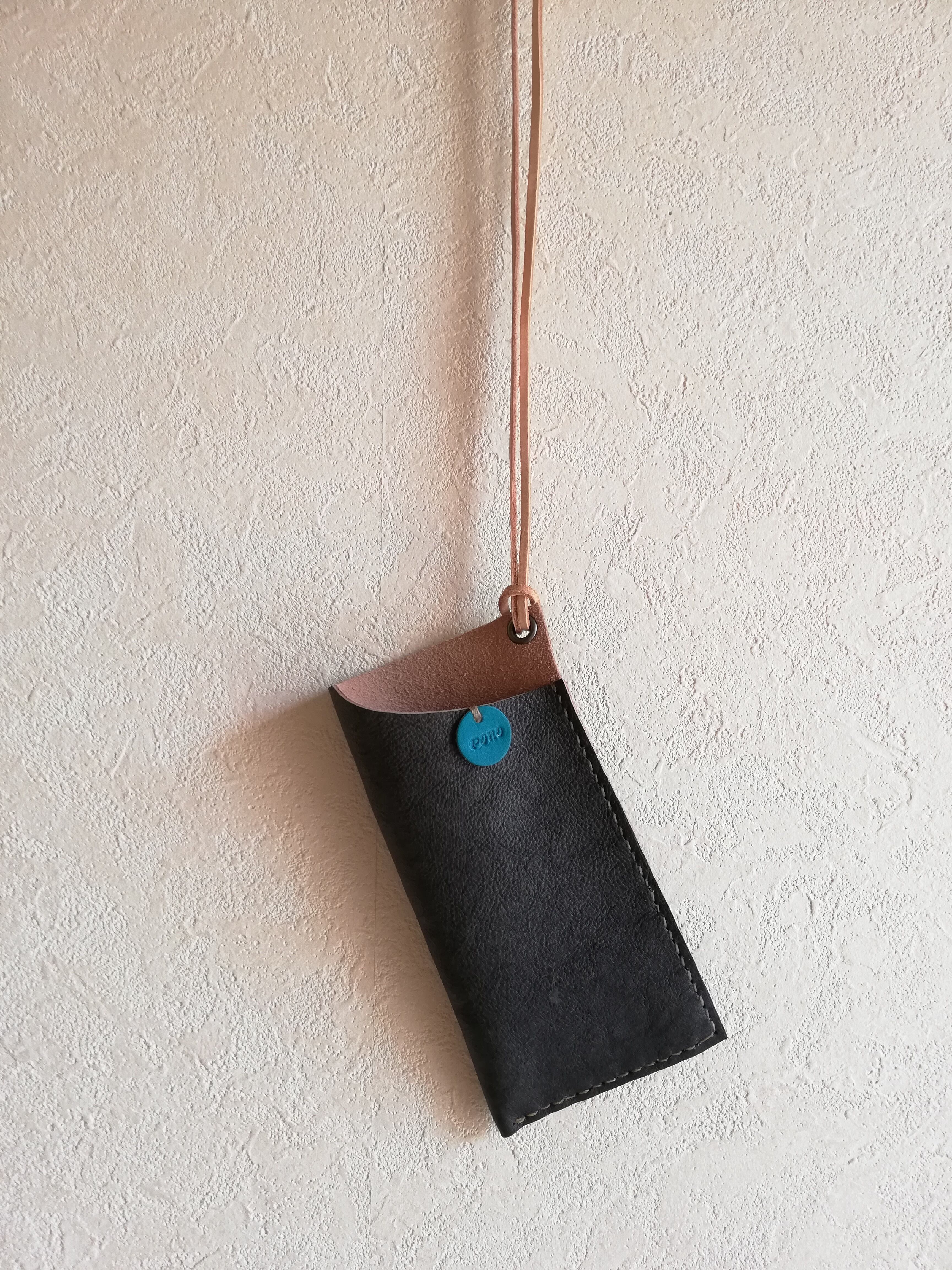 メガネホルダー ネックレス ヌメ革 チャコールグレー✗ブルー
