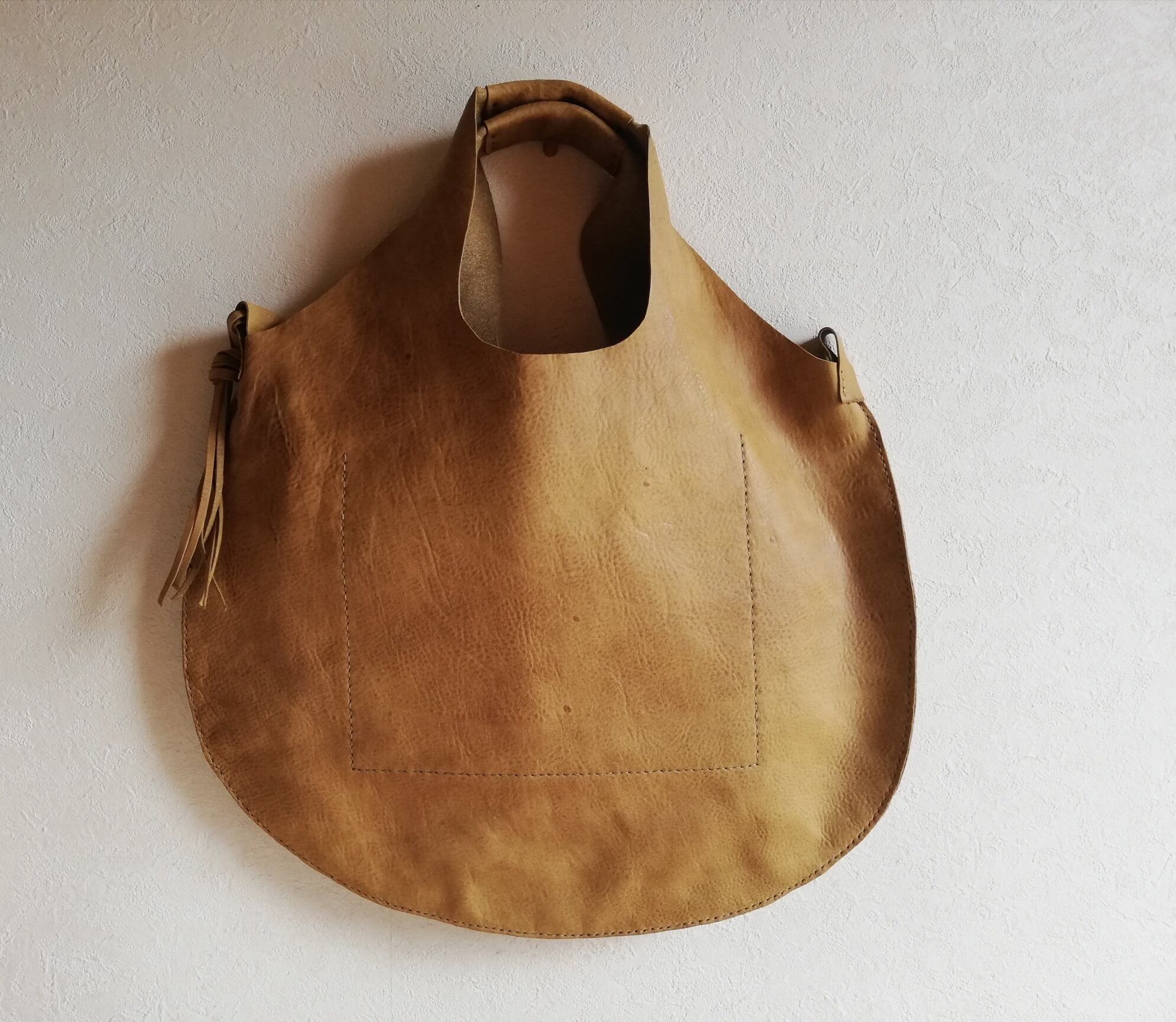 くったり柔らかく、植物性タンニンで鞣されたオイルシュリンクレザーで、とても軽いのが特徴です